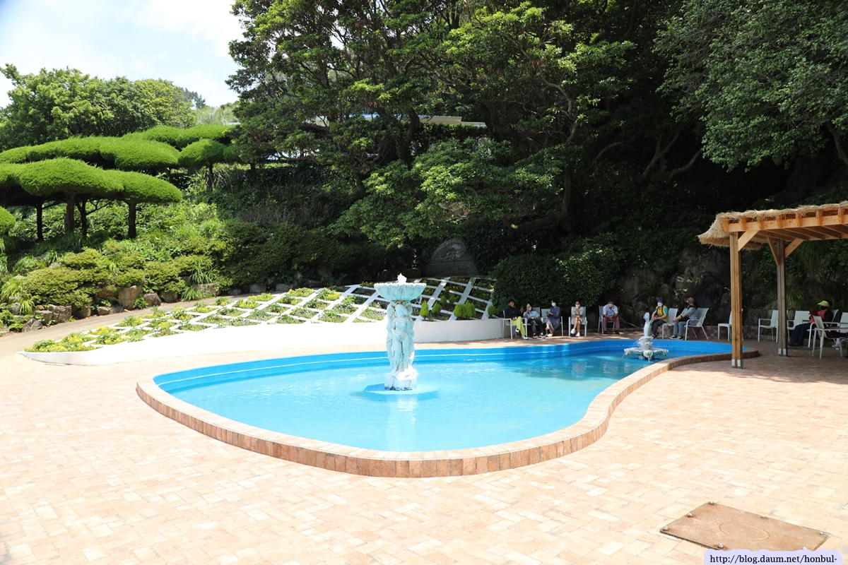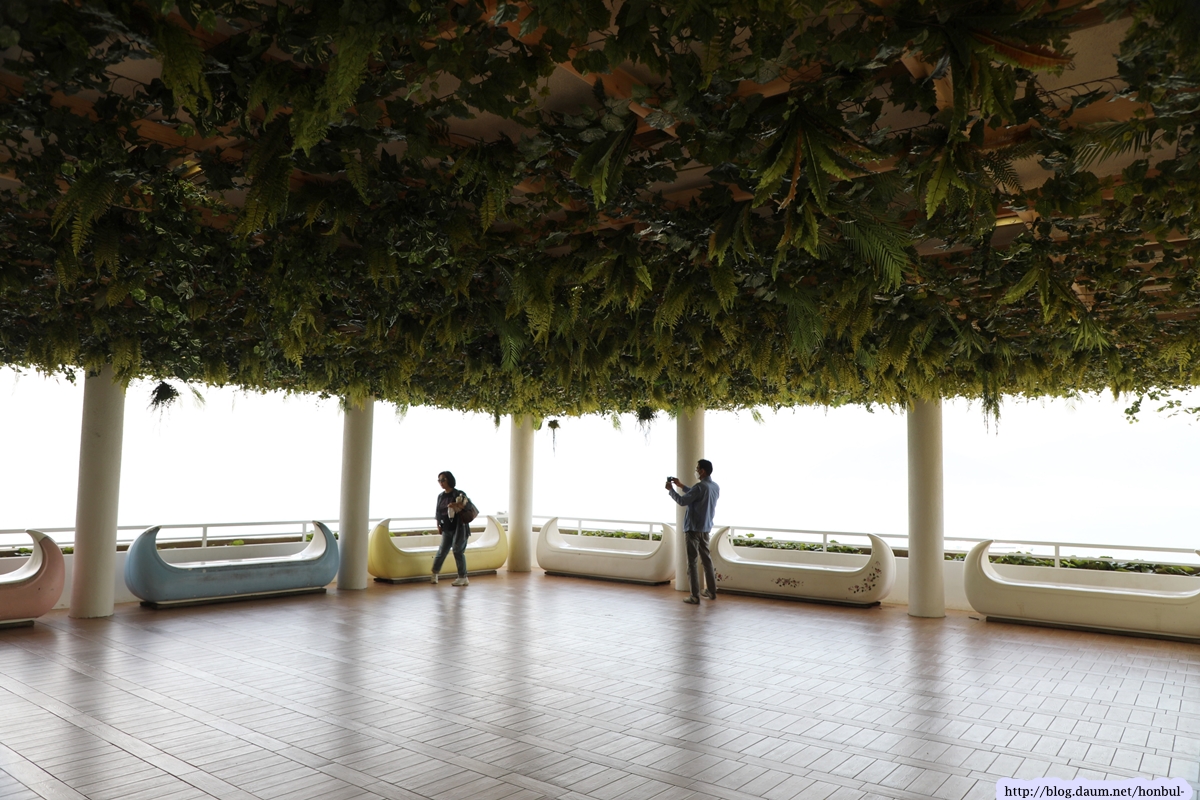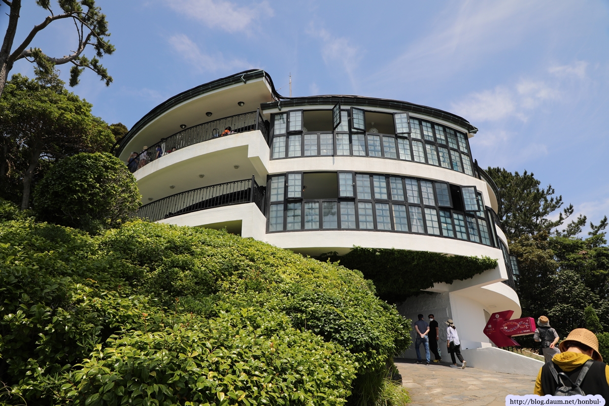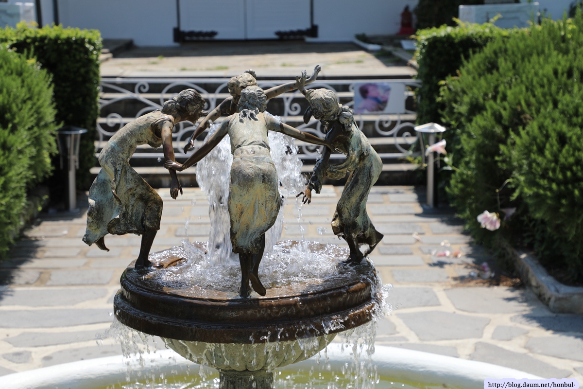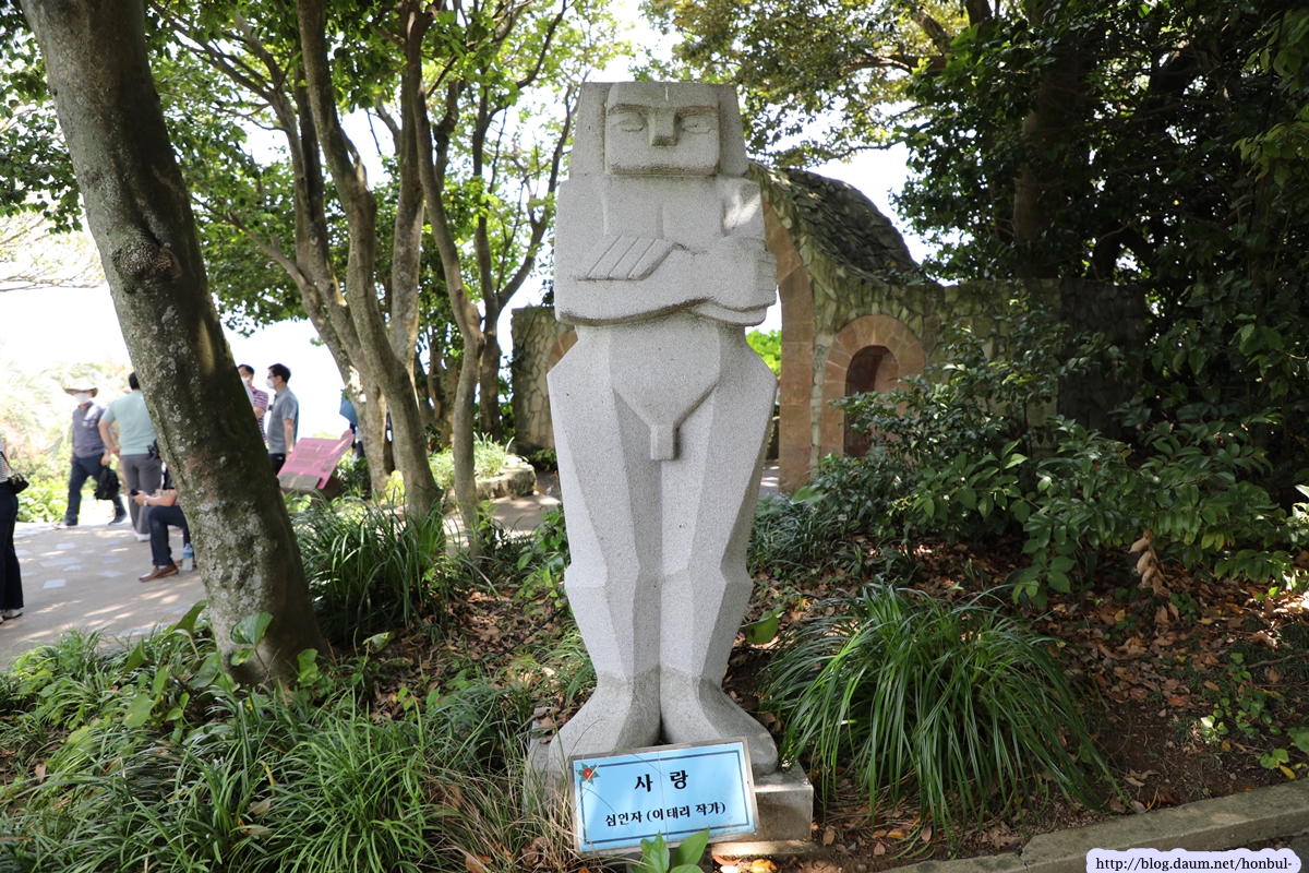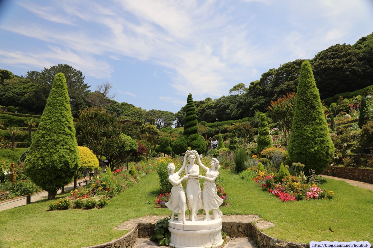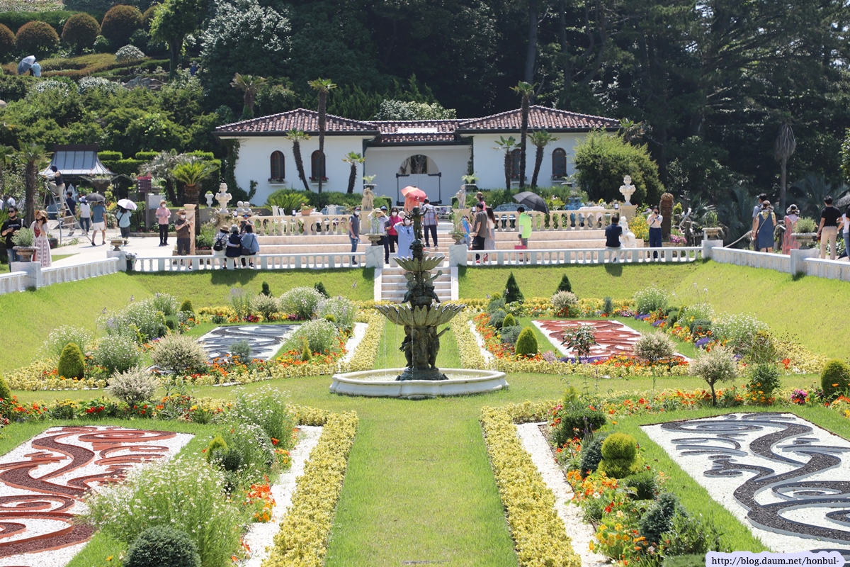 지중해를 연상케 하는 건축물들과 곳곳에 놓인 비너스 상들. 그리고 동백나무 프레임 등이 잘 어우러져 있다.