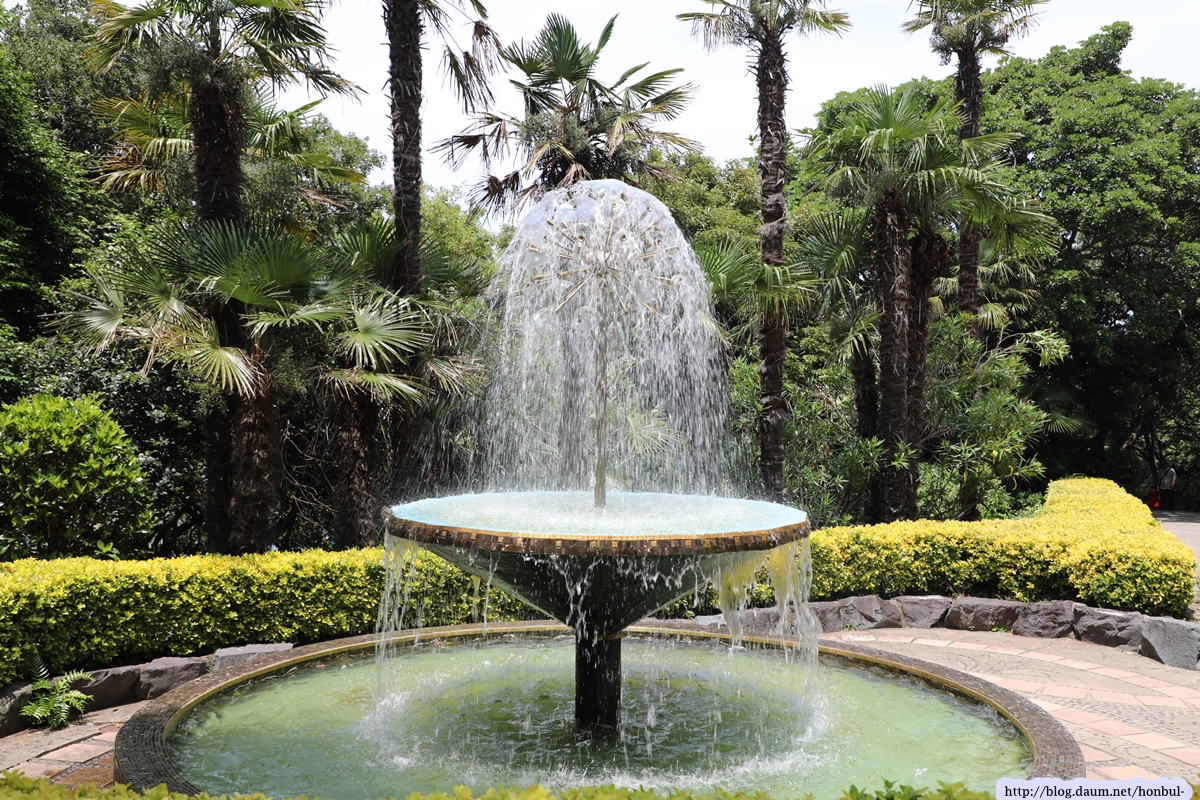 계단을 내려가다 보면 양 옆의 밀감 나무 대신에 다양한 희귀 식물이 진한 꽃향기를 품으며