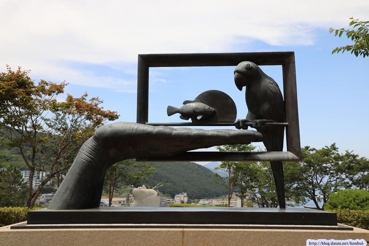 21세기를 이끌어가는 해양관광도시 거제도의 수려한 자연경관 속을 항해하는 대구 떼를 조형화 한 작품이다.