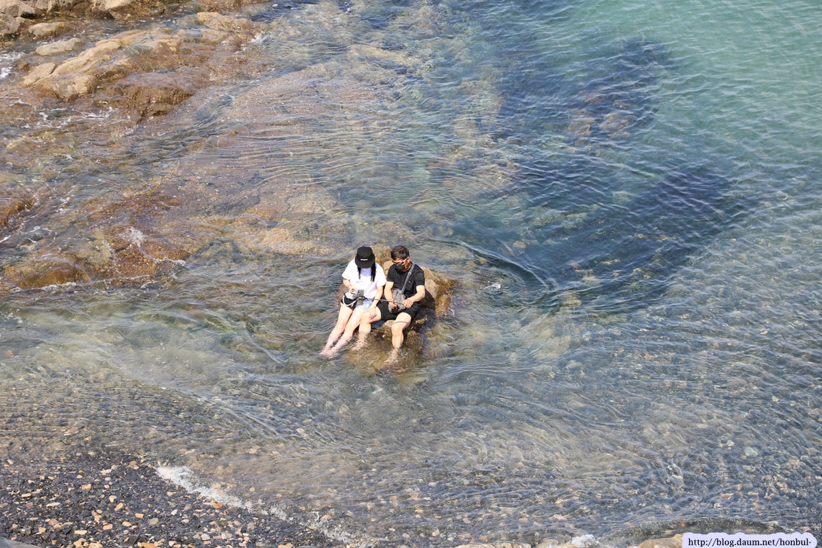 바위에 앉아 바다에 발을 담그고 밀어를 속삭이며 보내는 이 시간이 얼마나 소중할까!