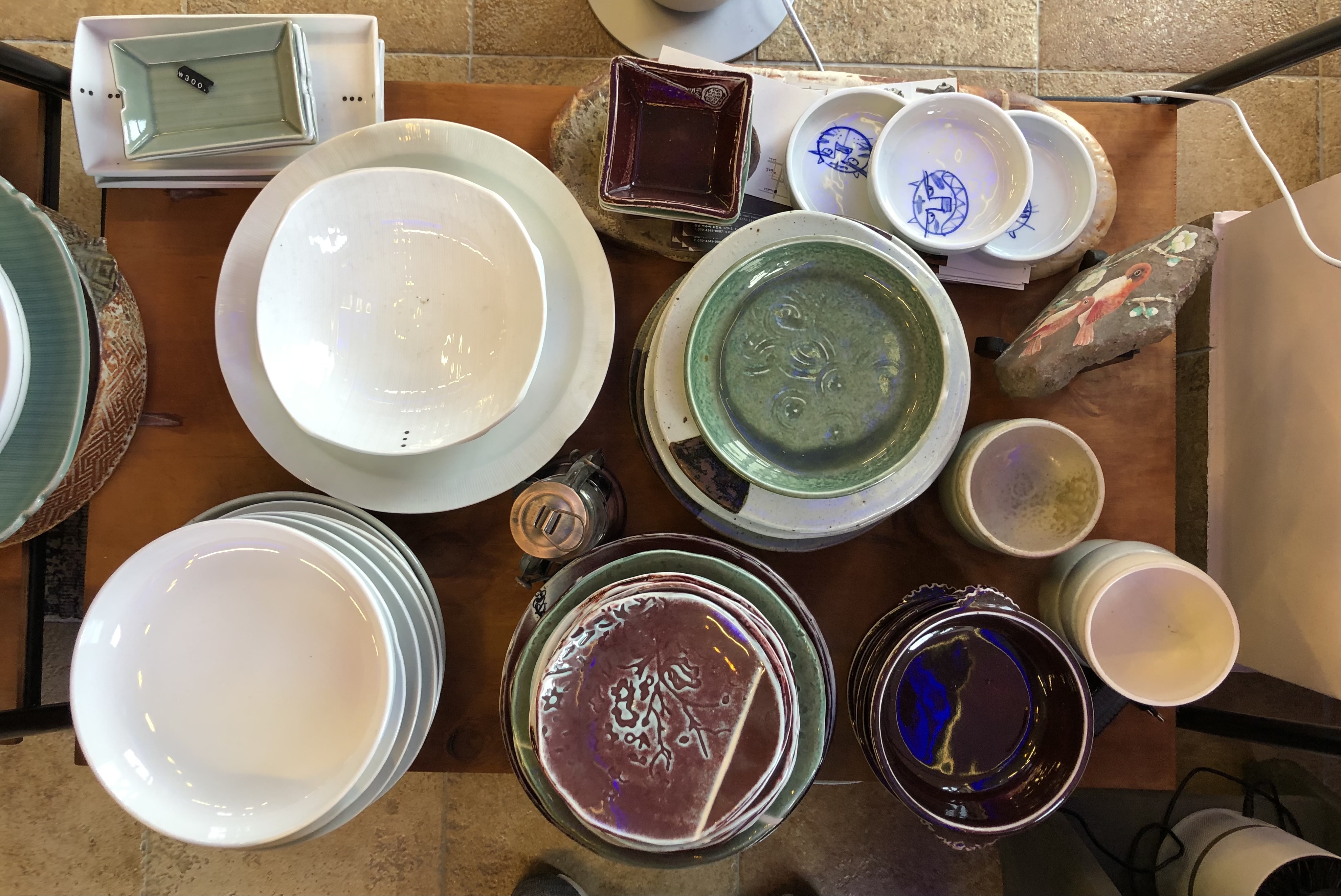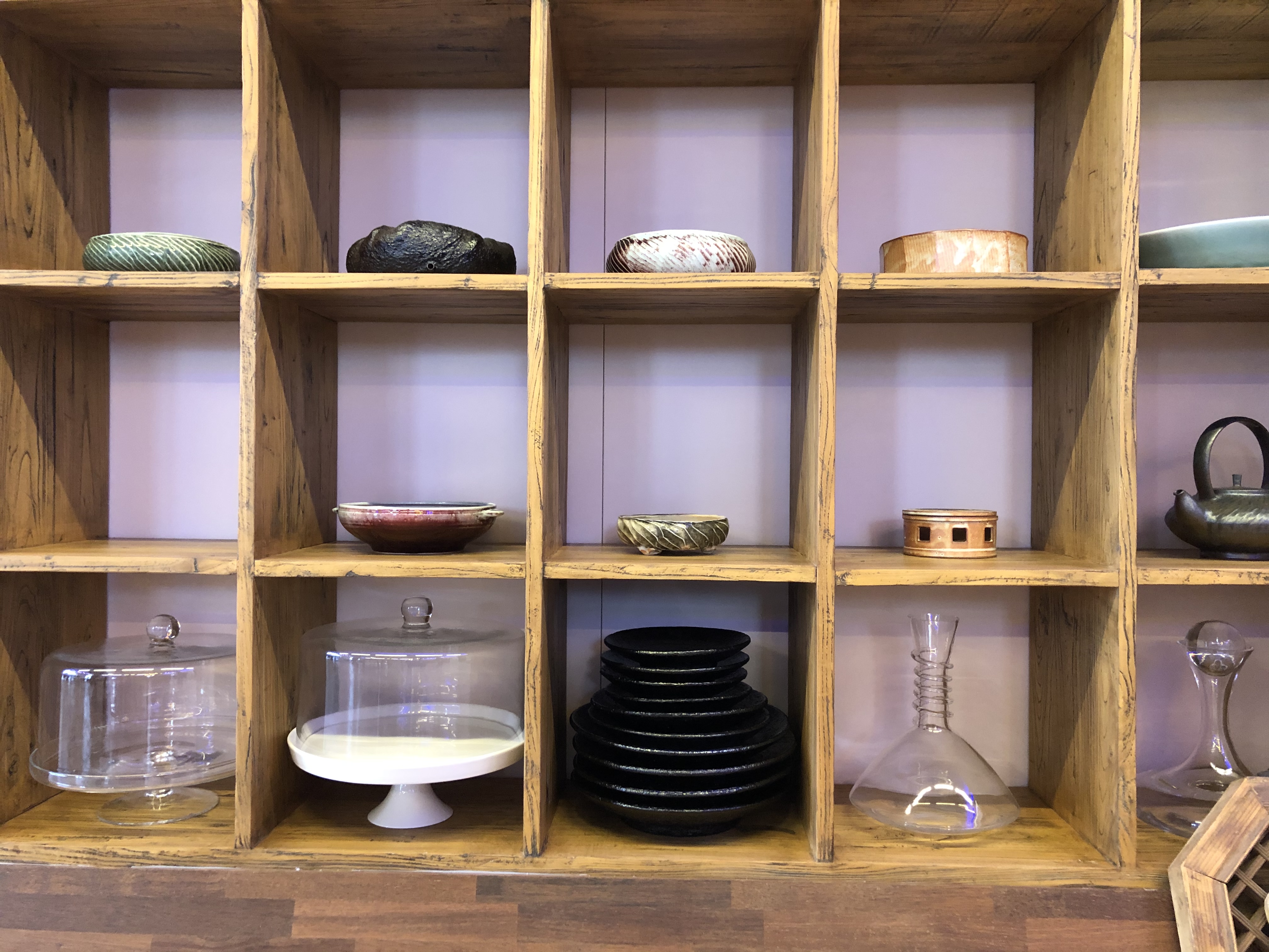 벽에는 장식장을 만들어 전시 겸 판매용 작품을 장식하는 센스...