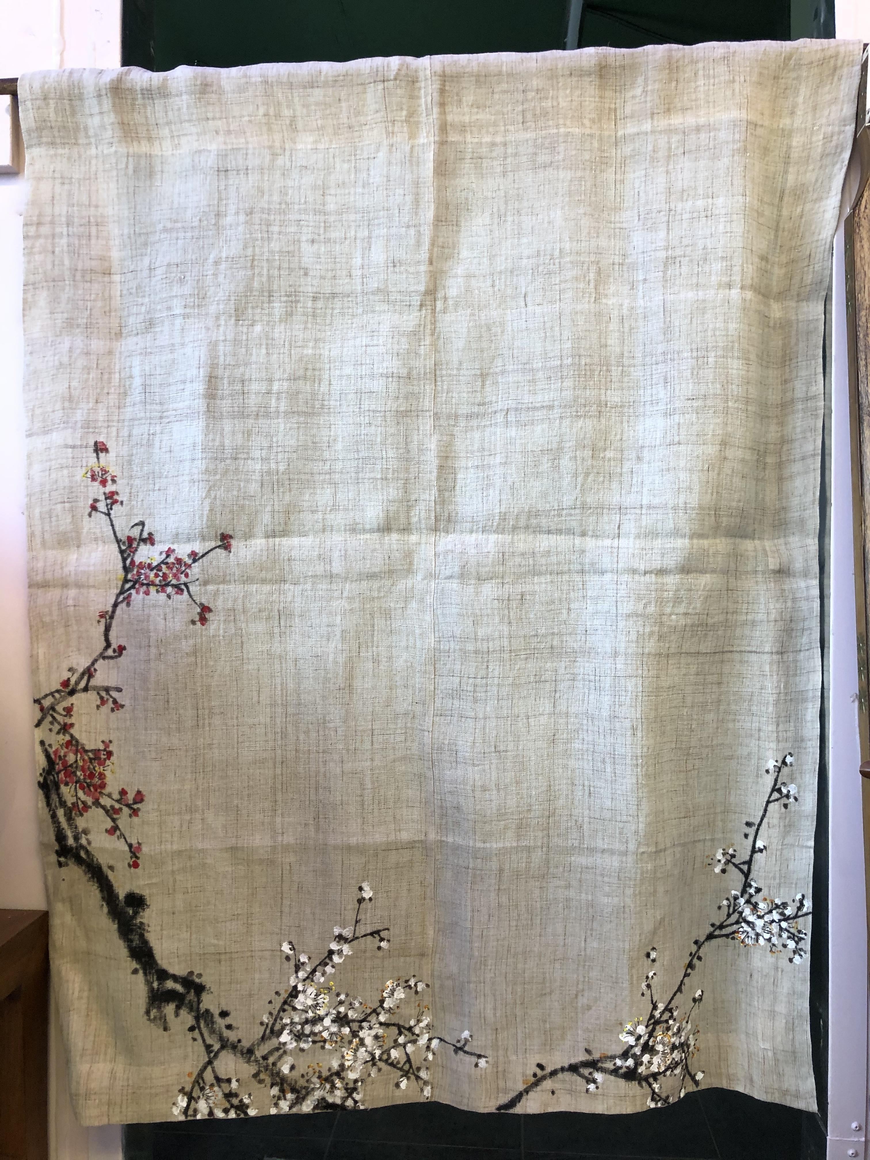 삼베에 수놓은 자수 천도 창문에 걸면 멋진 커튼이 되겠다.