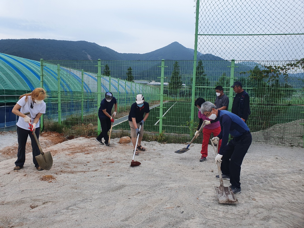 퇴비를 부리고 모두 모인김에 정지작업을 한다.