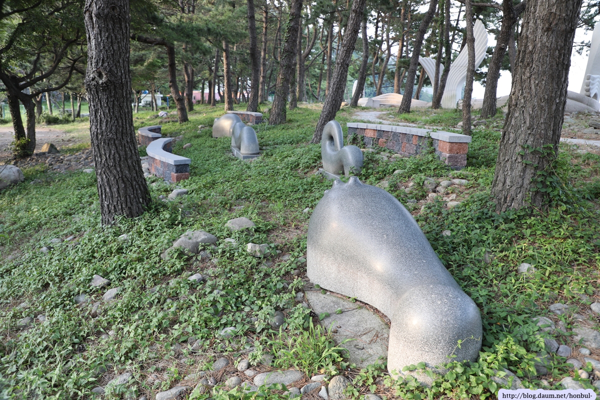 무슬목 해수욕장에 들어서면 먼저 반기는 게 조각공원이다.