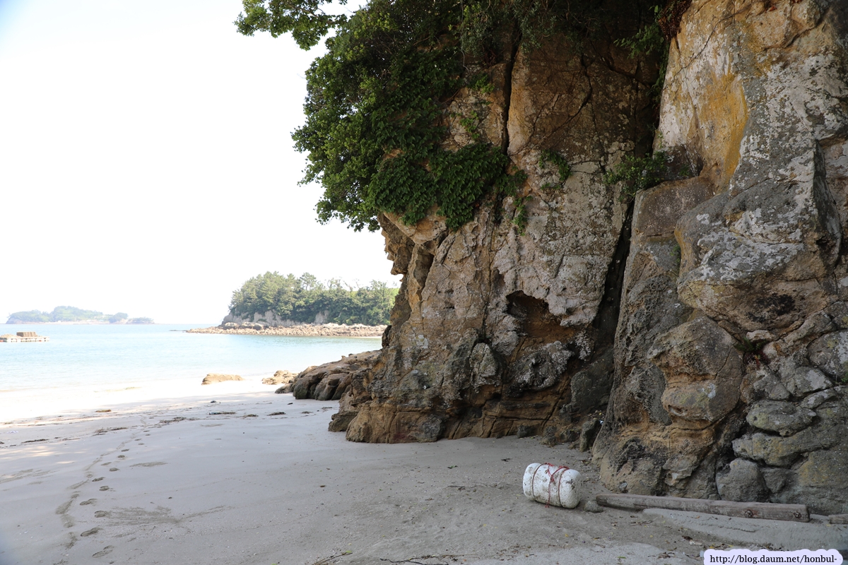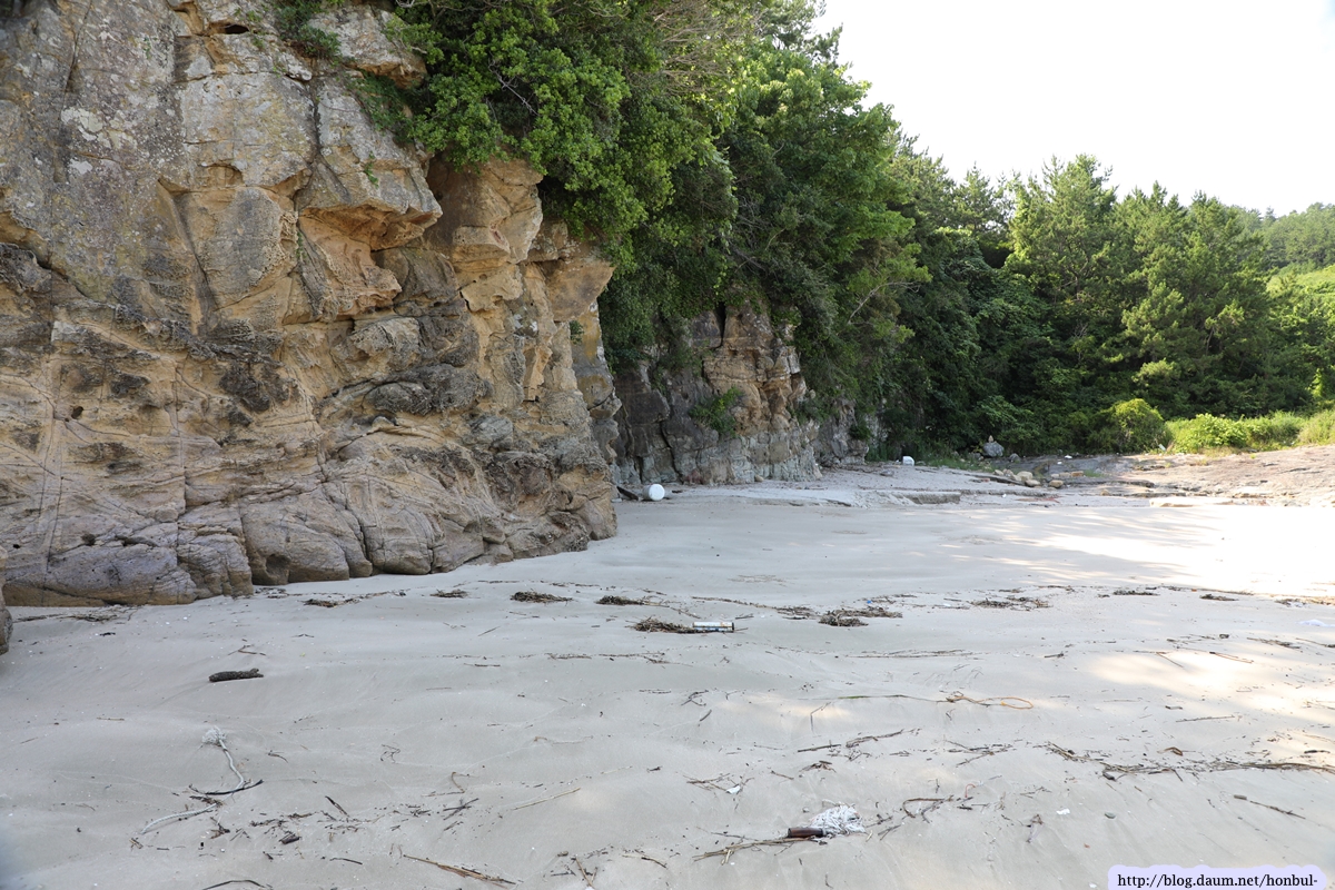 해수욕장 끝엔 커다란 절벽에 나무가 자라 오후가 되면 적당한 그늘을 만든다.