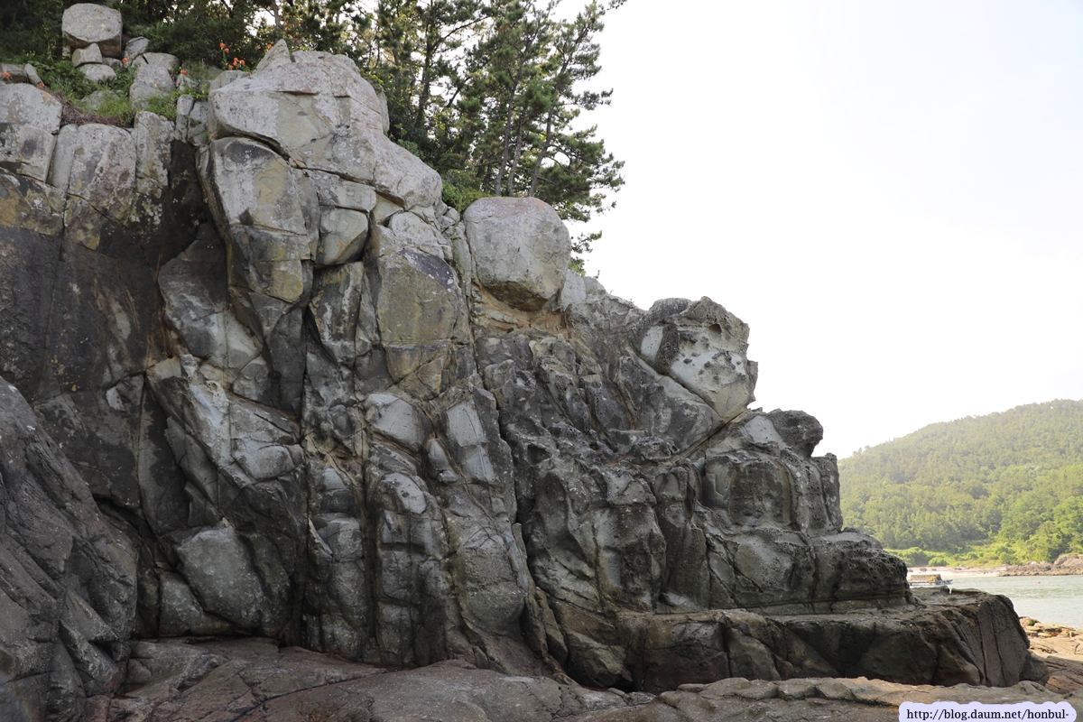 장사금 해수욕장으로 가는 길에 놓은 암반이다.