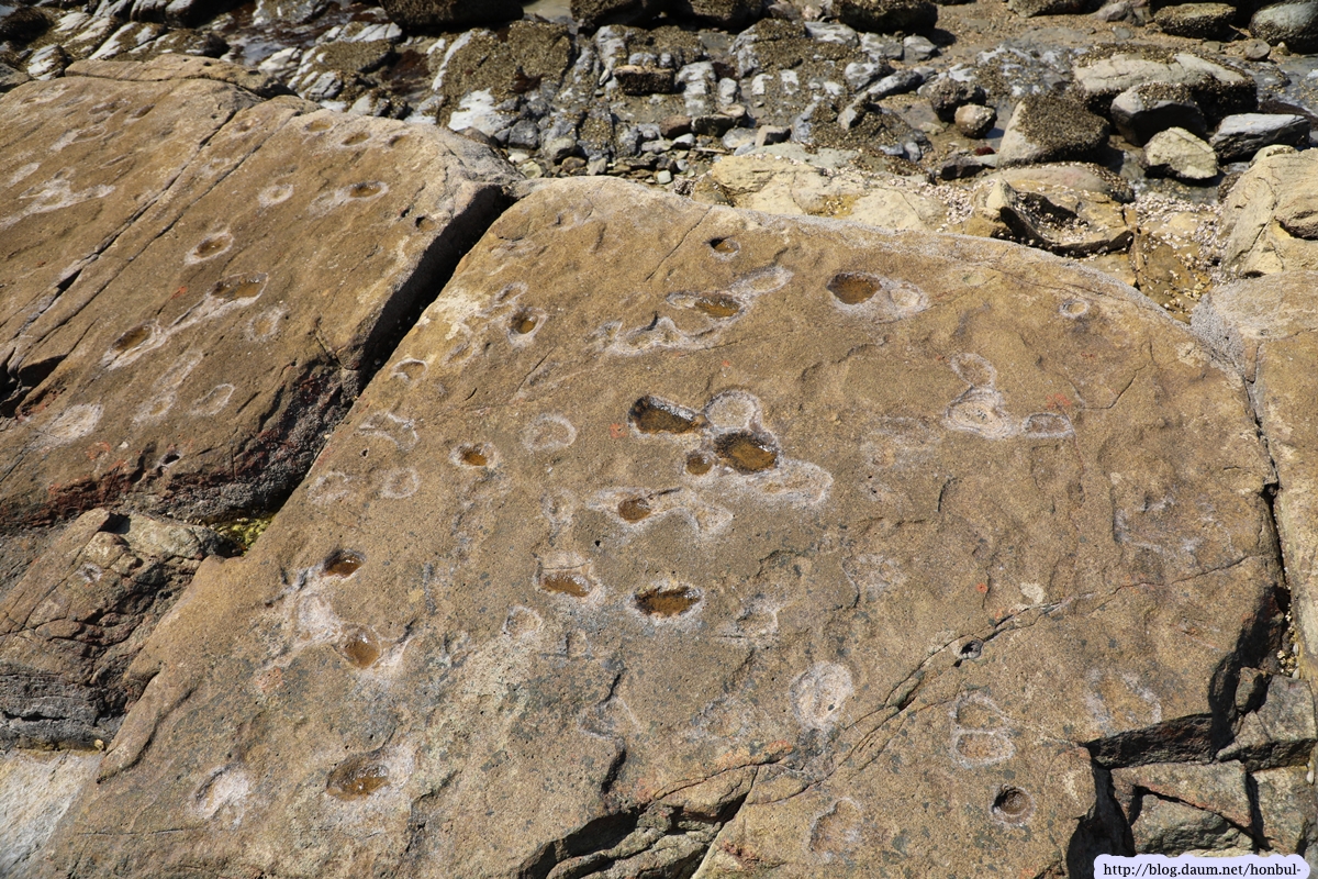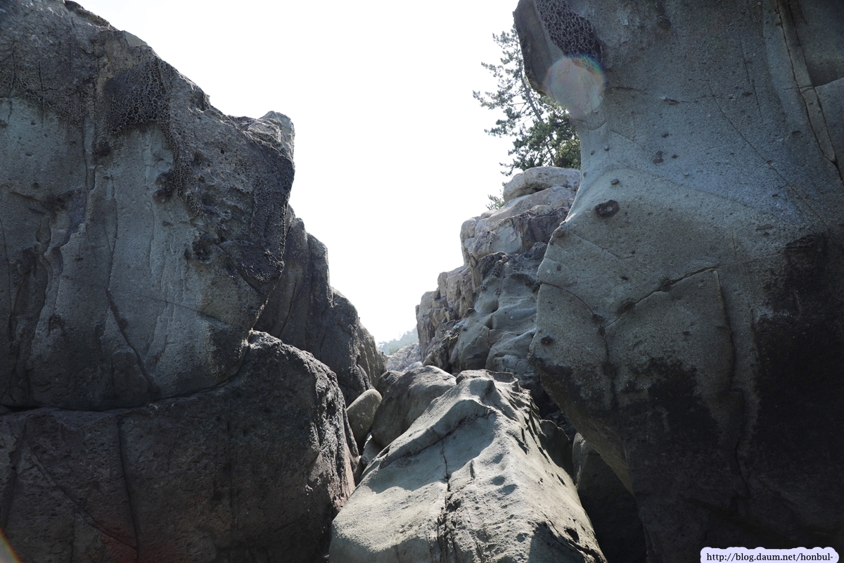 평평한 암반이 있는가 하면 이렇게 다이내믹한 갯바위도 있어 해안을 걷는다는 걸 늘 새로운 즐거움을 준다.