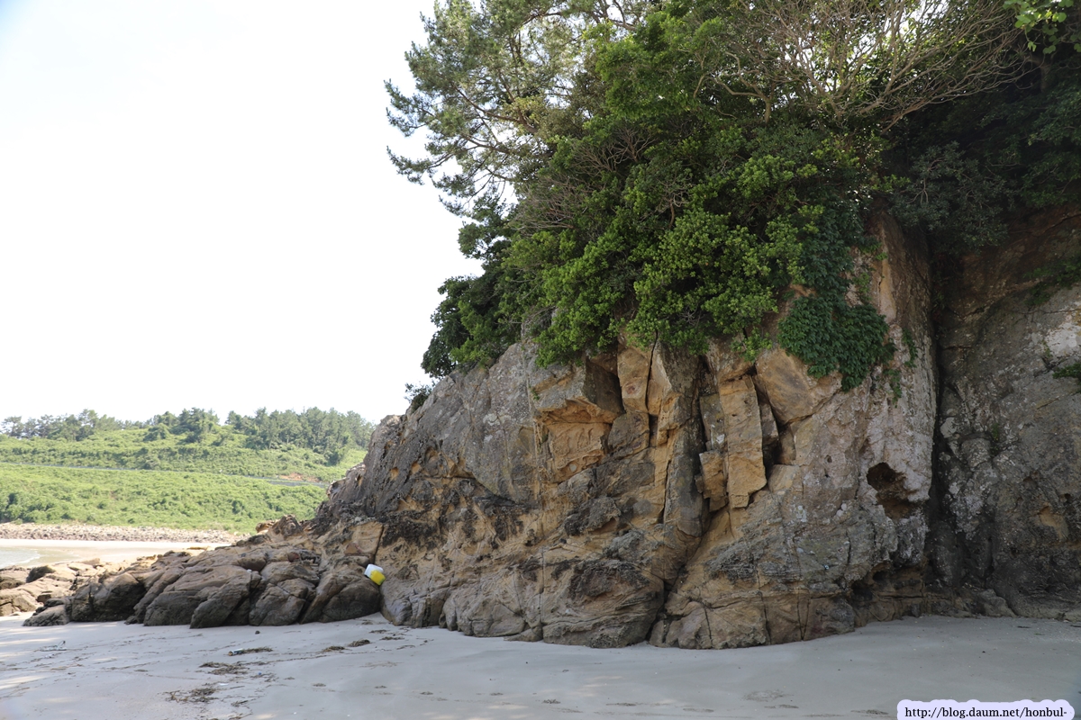 해수욕장 끝엔 커다란 절벽에 나무가 자라 오후가 되면 적당한 그늘을 만든다.