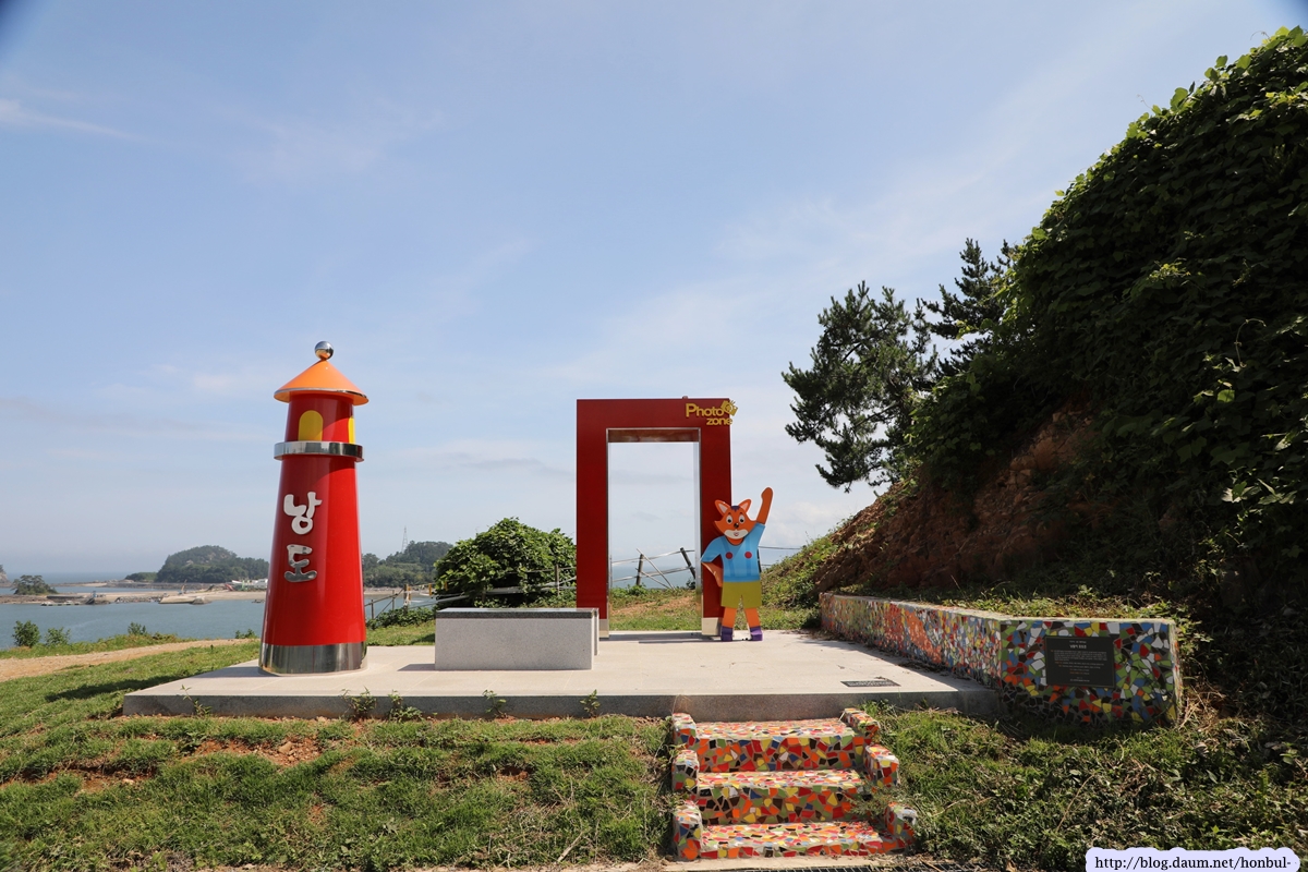 낭도 해안 주차장에서 해안 트레킹 코스가 시작되는 곳에 낭도 등대와 여우 조형물이 놓인 포토존이다.
