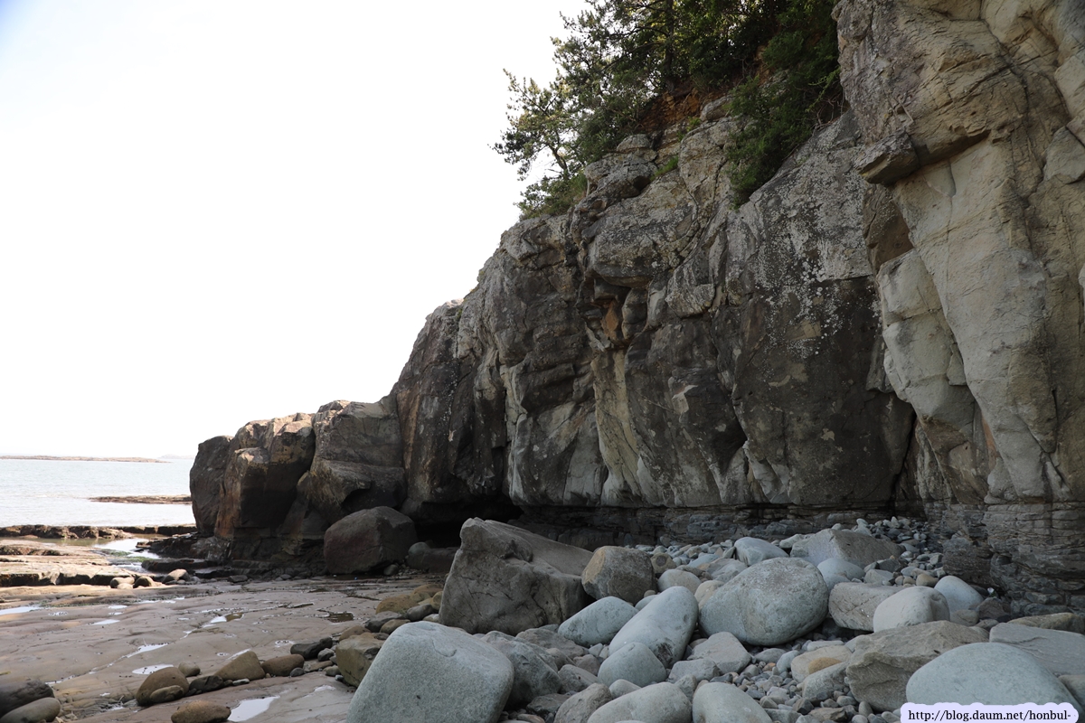 낭도 해안의 공룡발자국 화석지가 있는 곳에서 바닷길을 따라 들어간다.