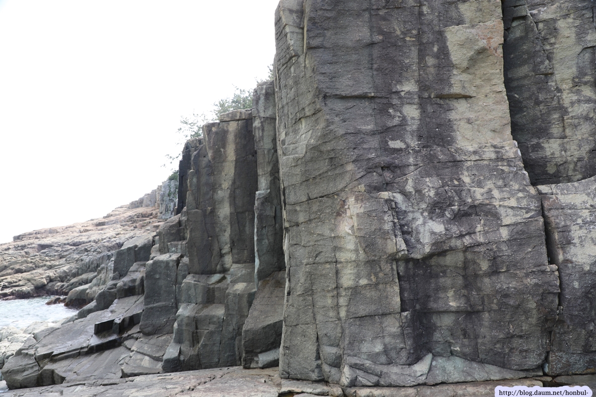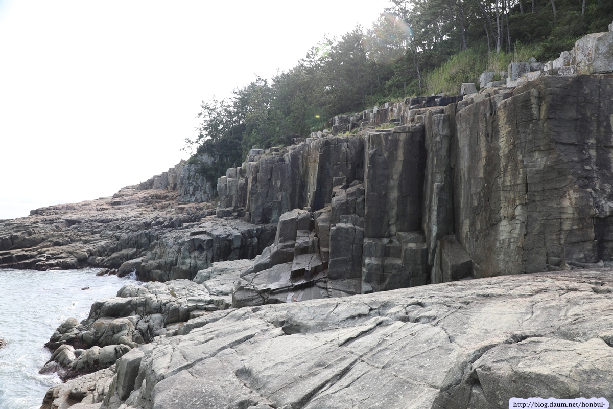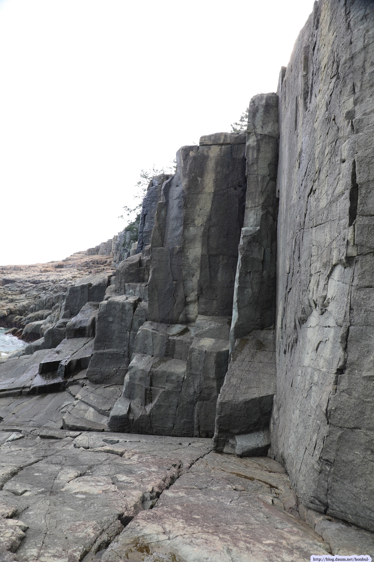 넓고 높은 불완전 주상절리라 지나게 된다.