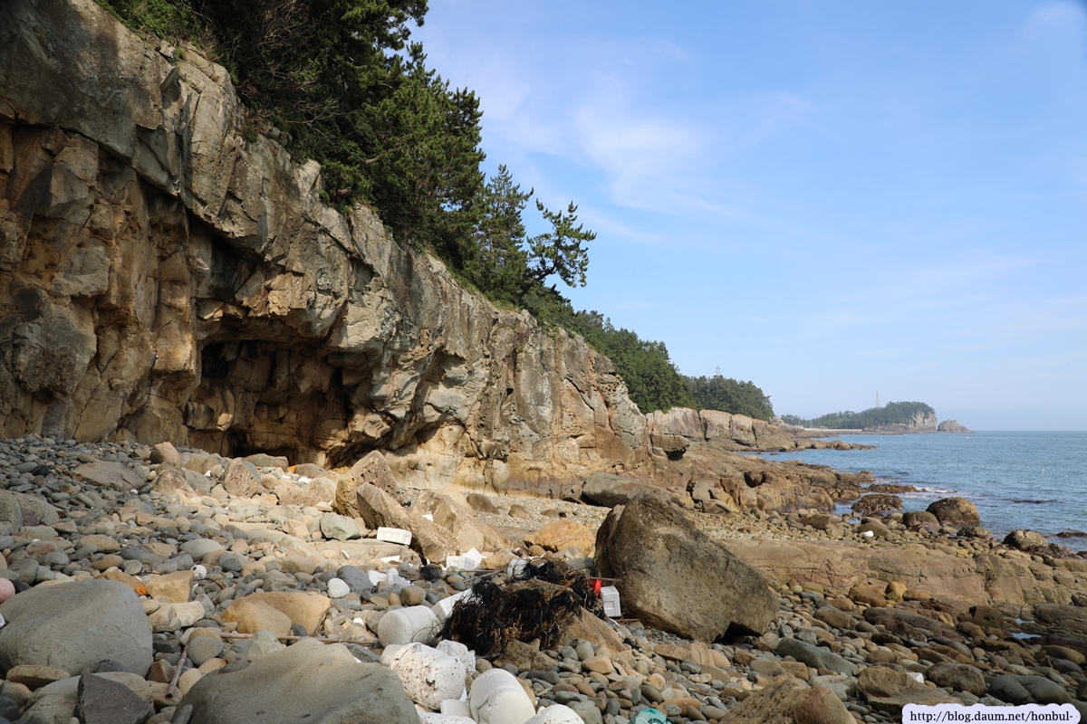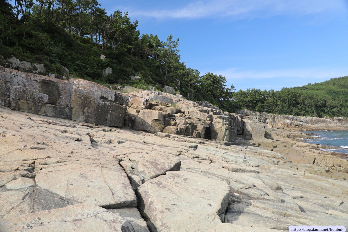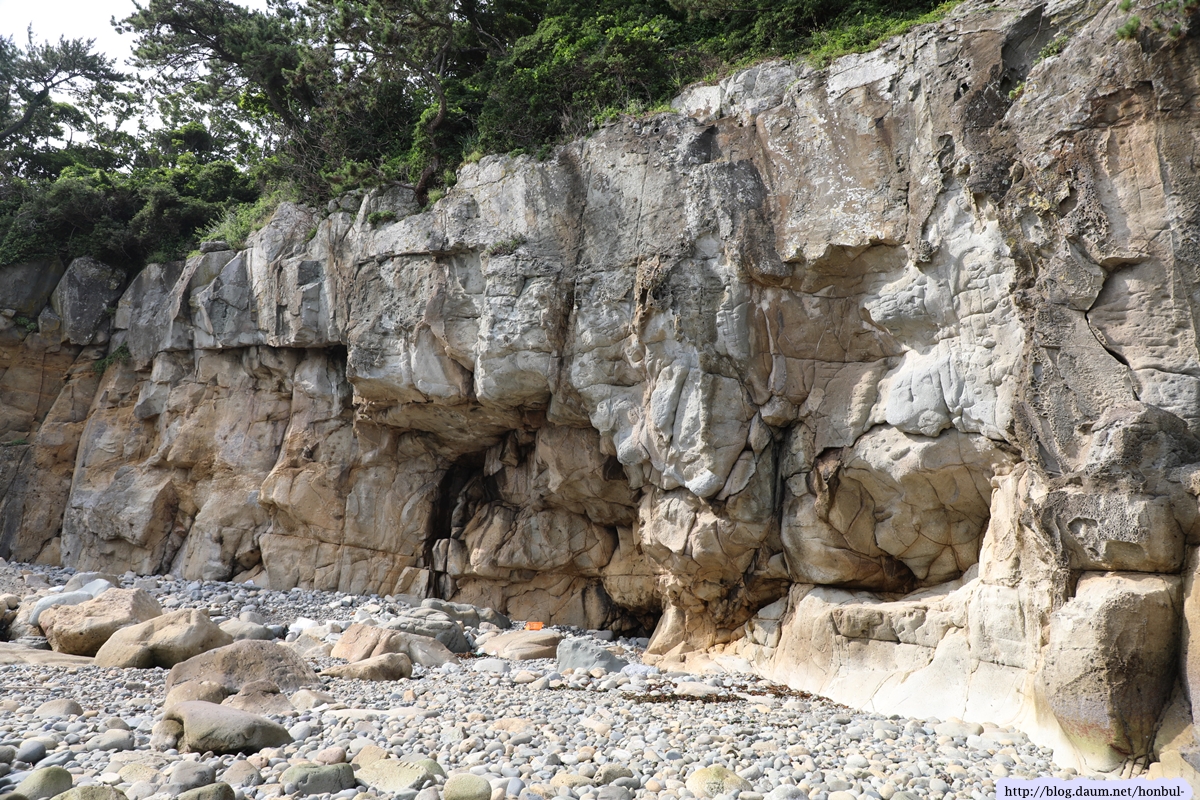 한쪽엔 해수욕장이 있고, 또 한쪽엔 단층으로 된 해식애가 있는가 하면 세로형 해식애가 나타나기도 한다.