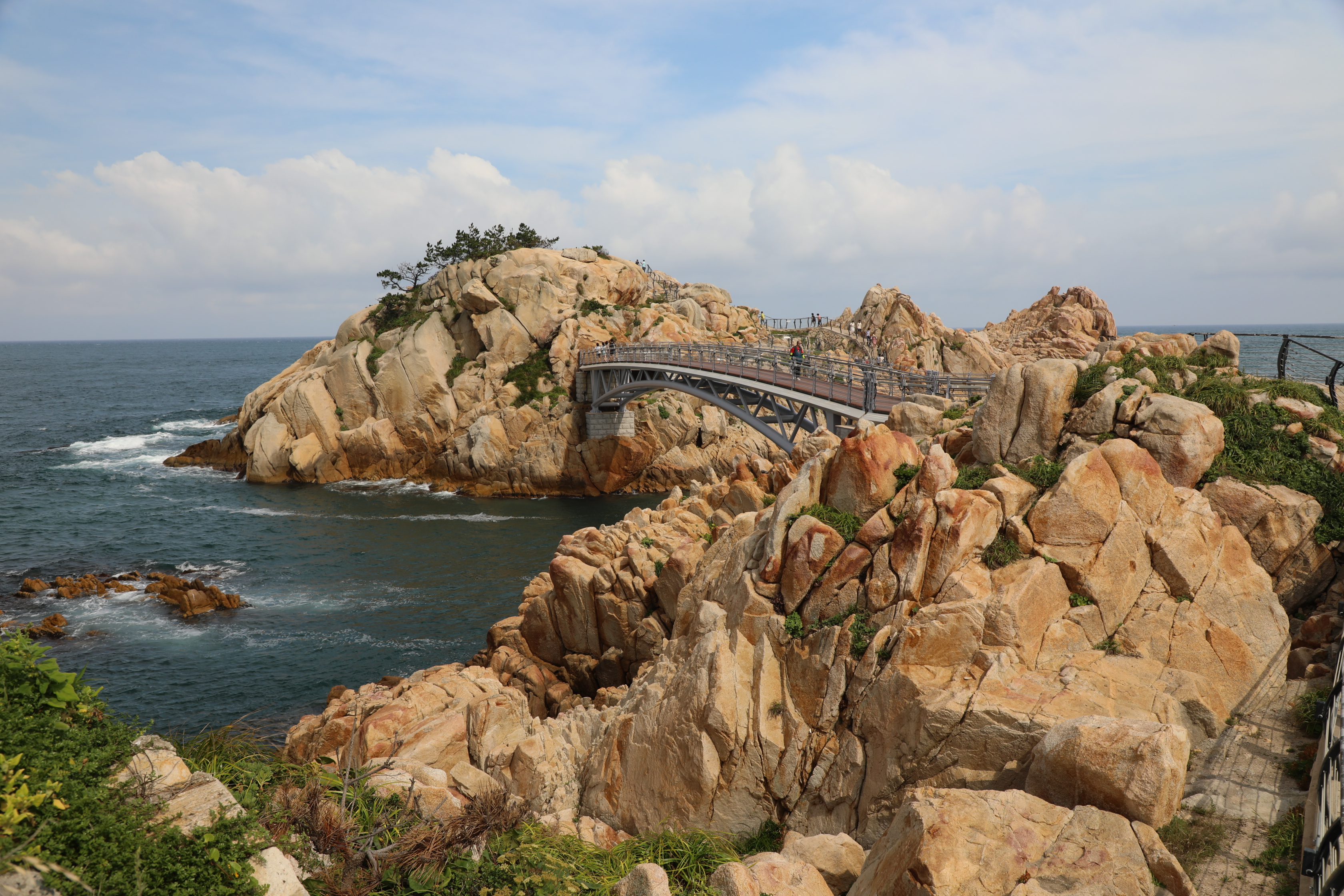 점점이 이어진 바위를 기둥 삼아 놓인 철교를 건너면 대왕암에 발을 딛고 설 수 있다.