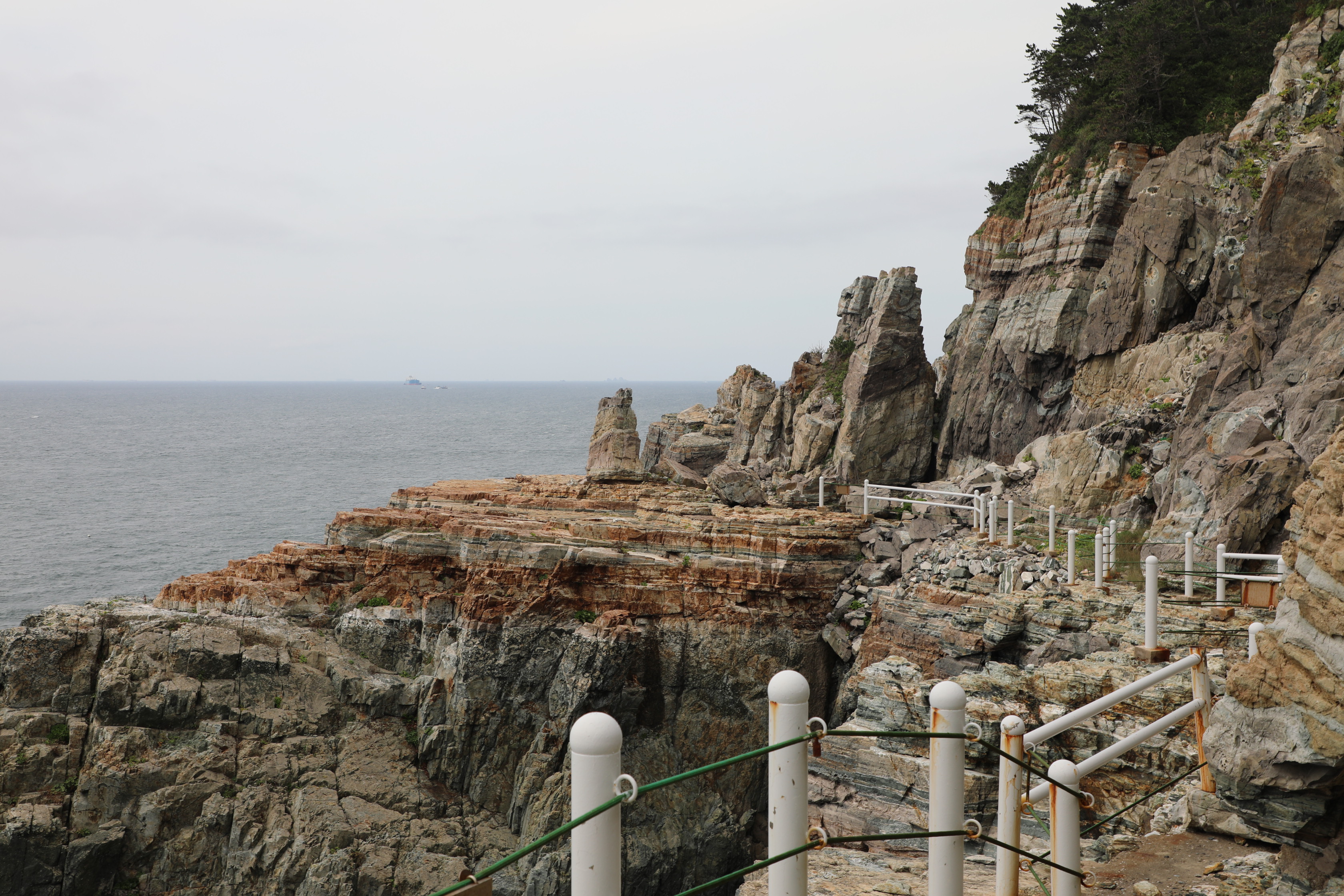 해안동굴 등의 암벽 해안이 구상혼펠스, 꽃다발 구조, 슬럼프구조 등 신비로운 지질구조도 함께 절정을 이루고 있는