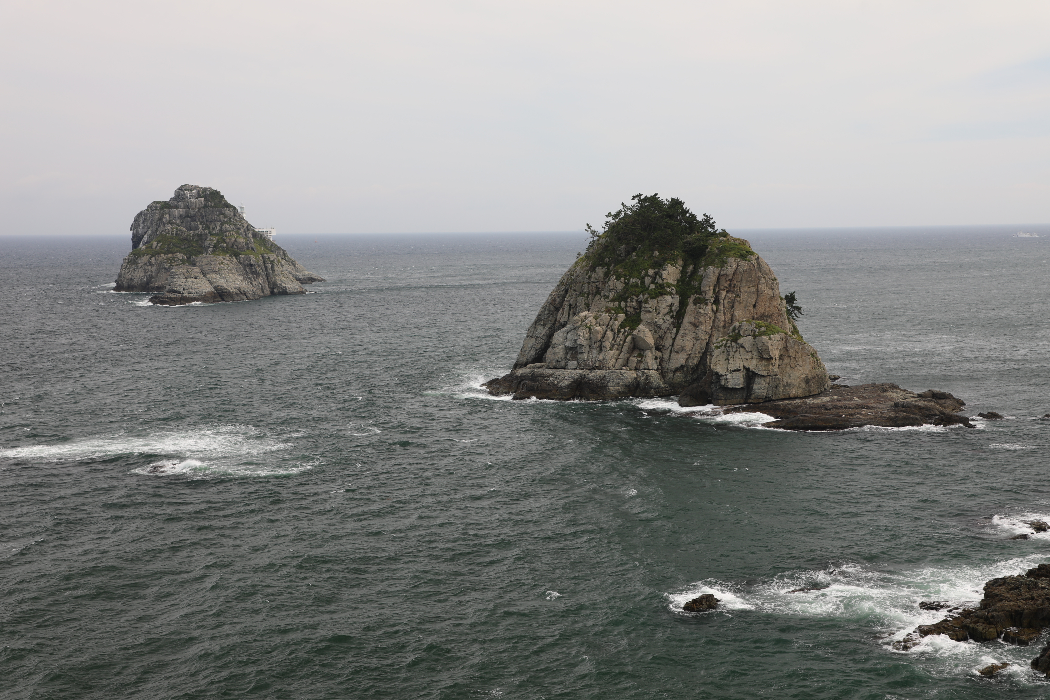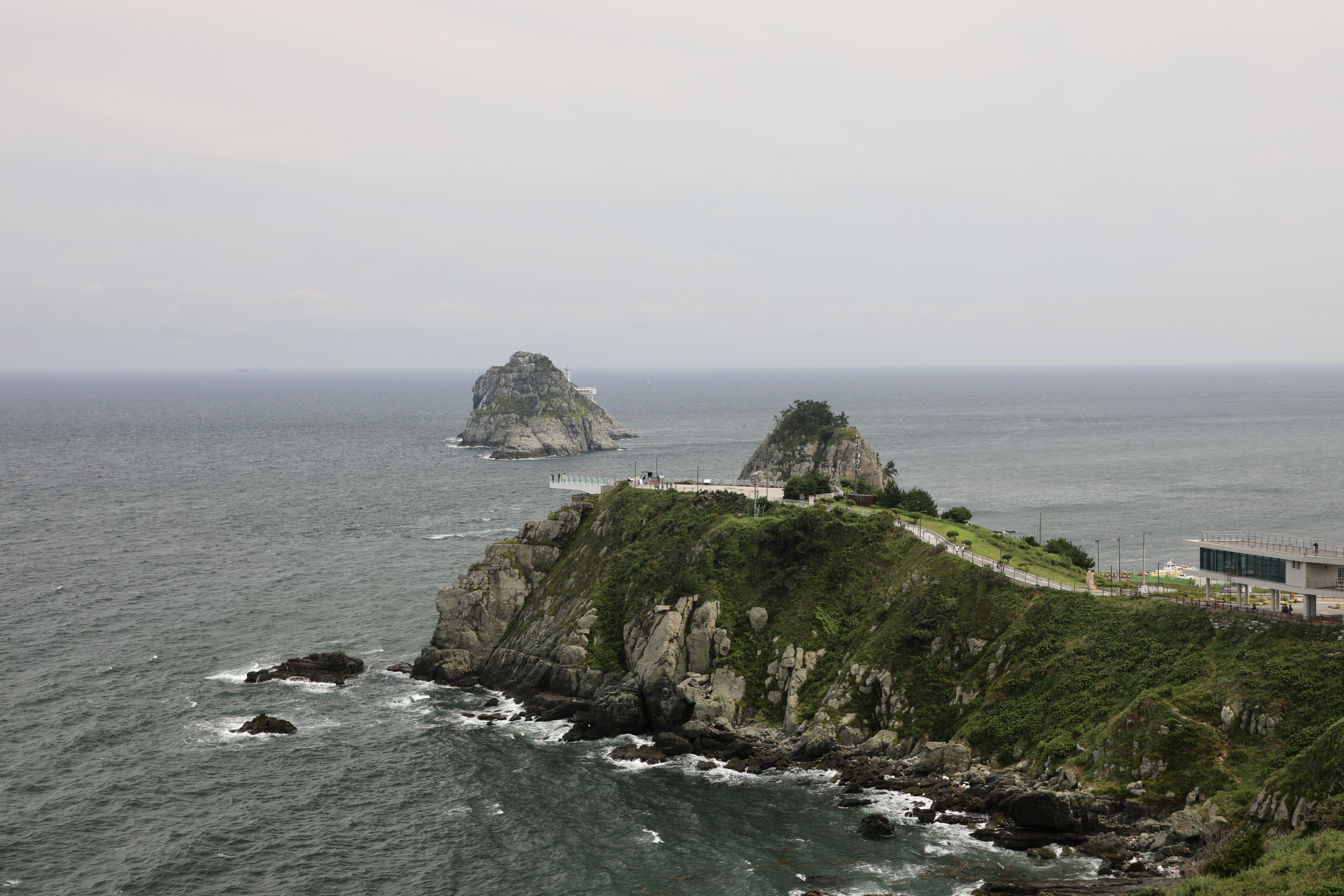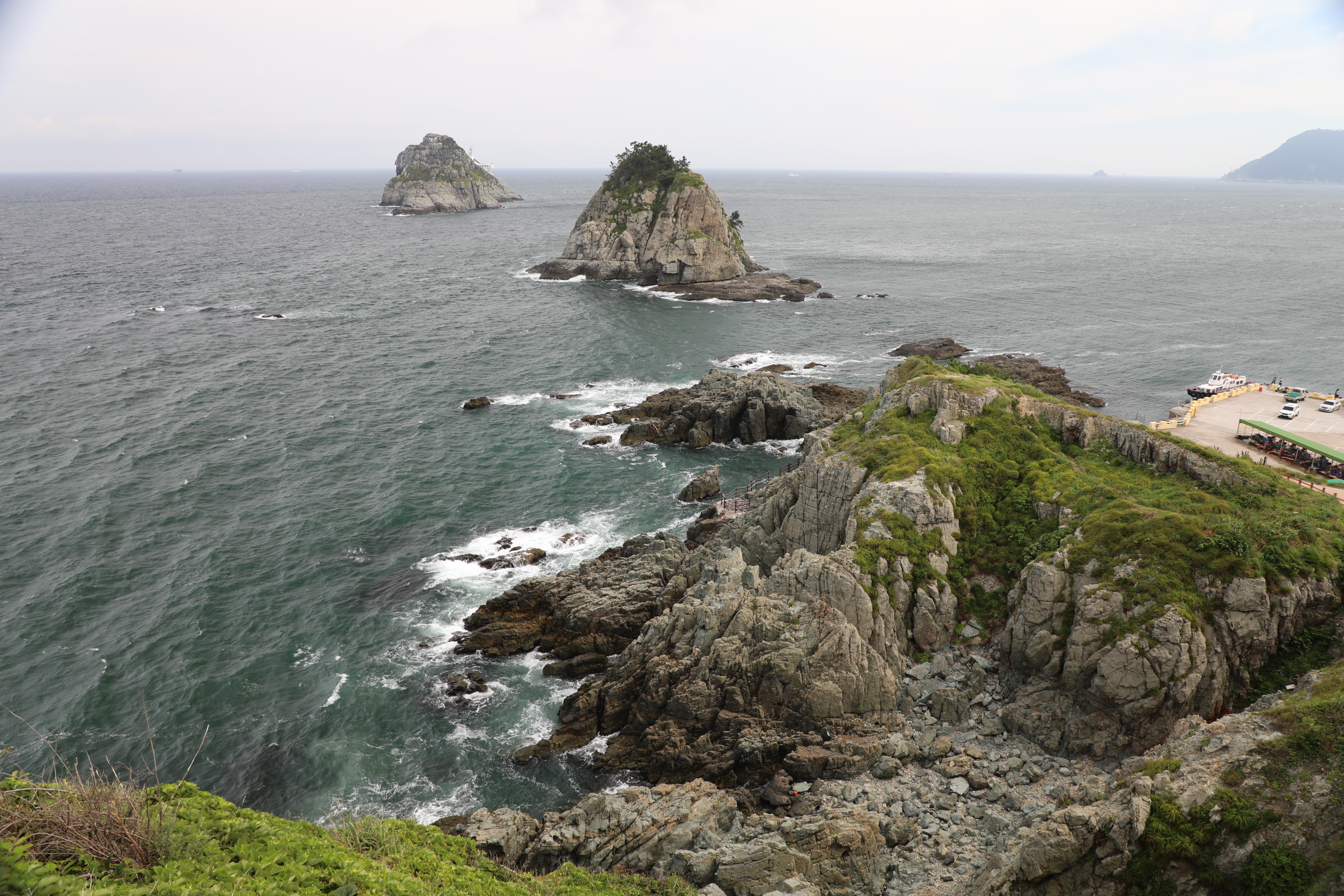 여섯 개가 있다는 오륙도는 배를 타고 나가지 않는 한 두 개 밖에 보이지 않는다.