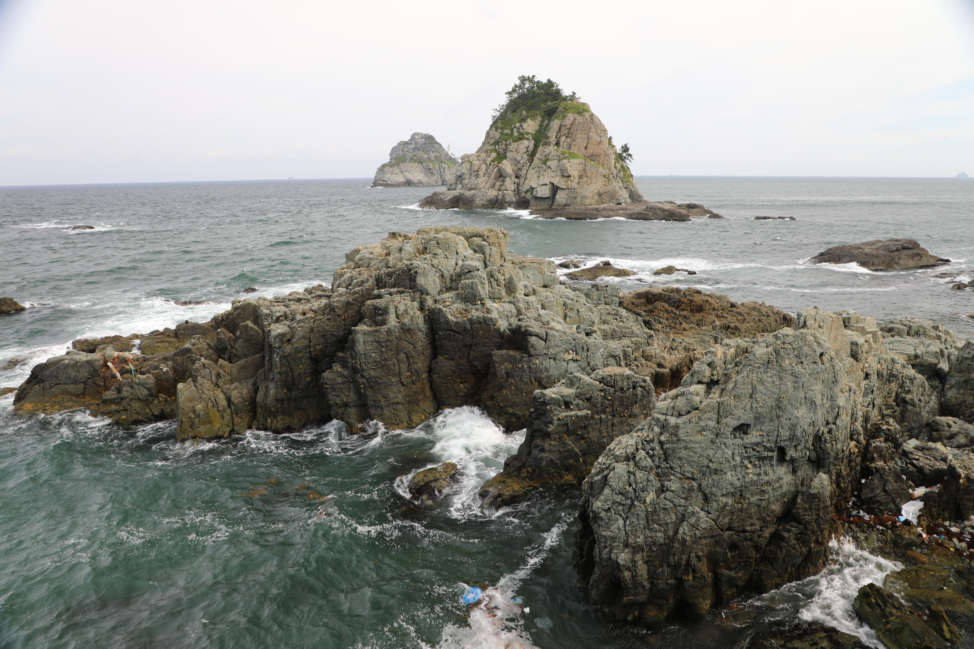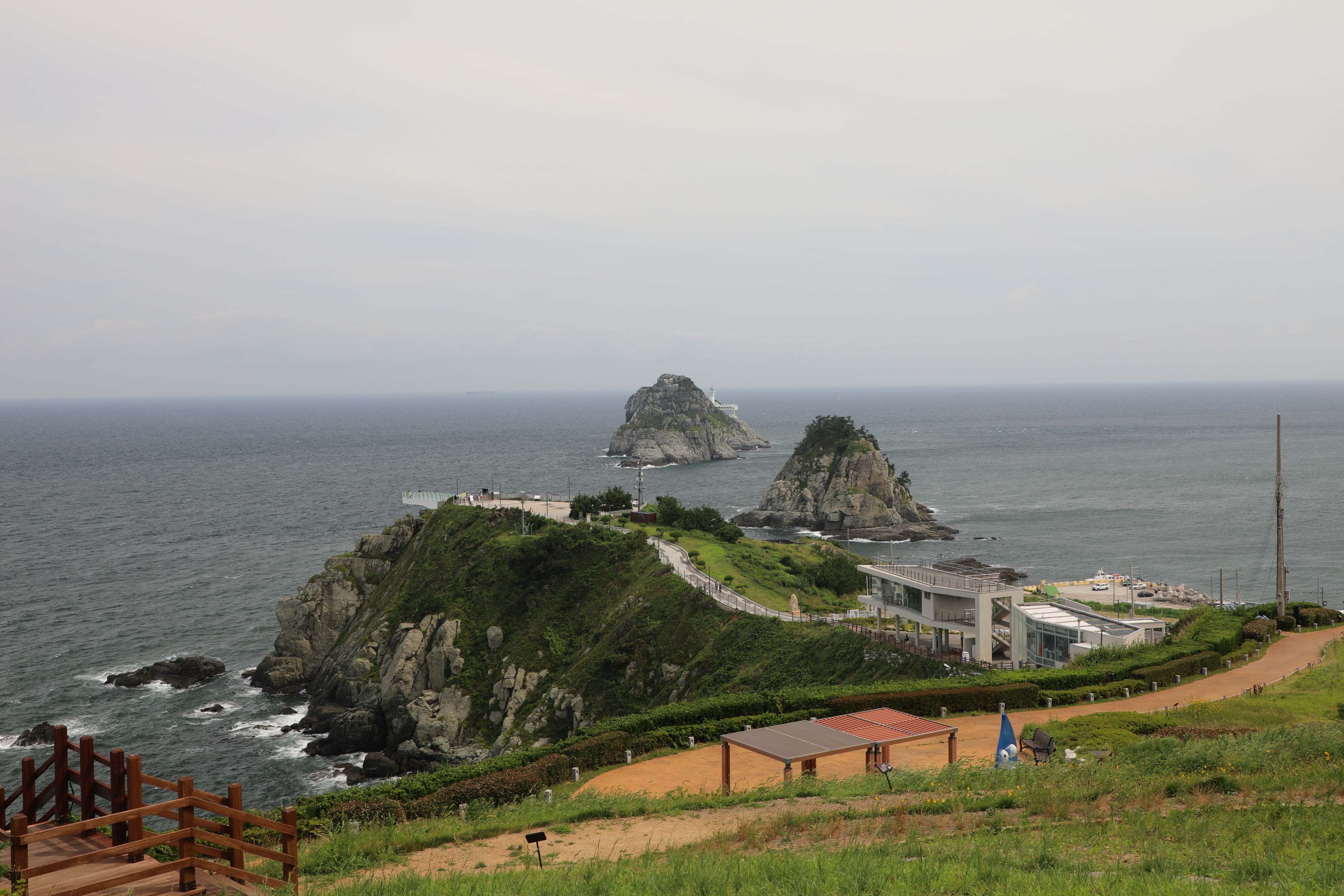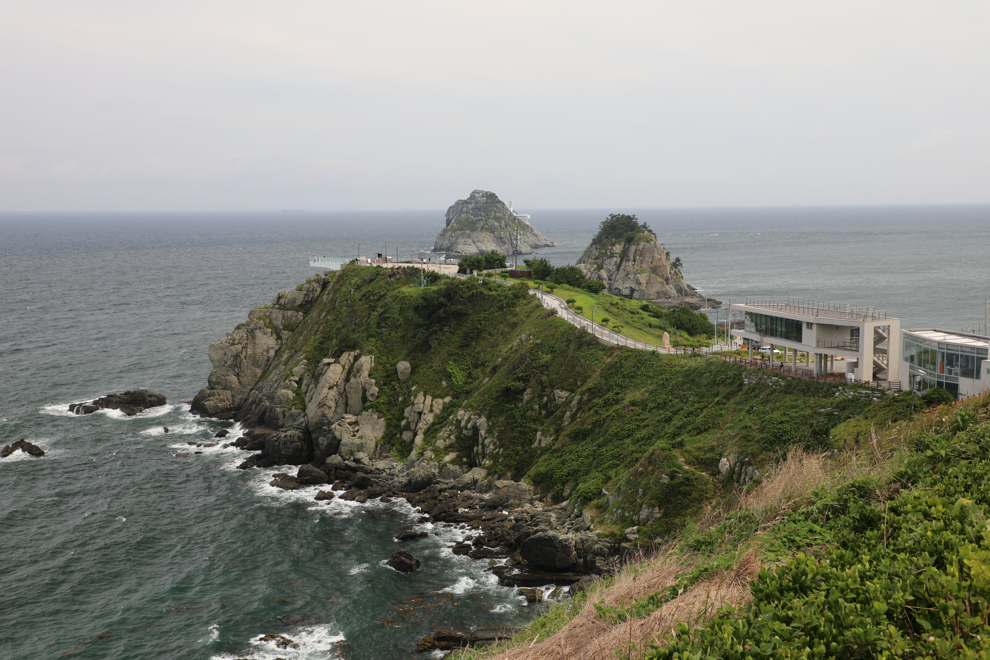 여섯 개가 있다는 오륙도는 배를 타고 나가지 않는 한 두 개 밖에 보이지 않는다.