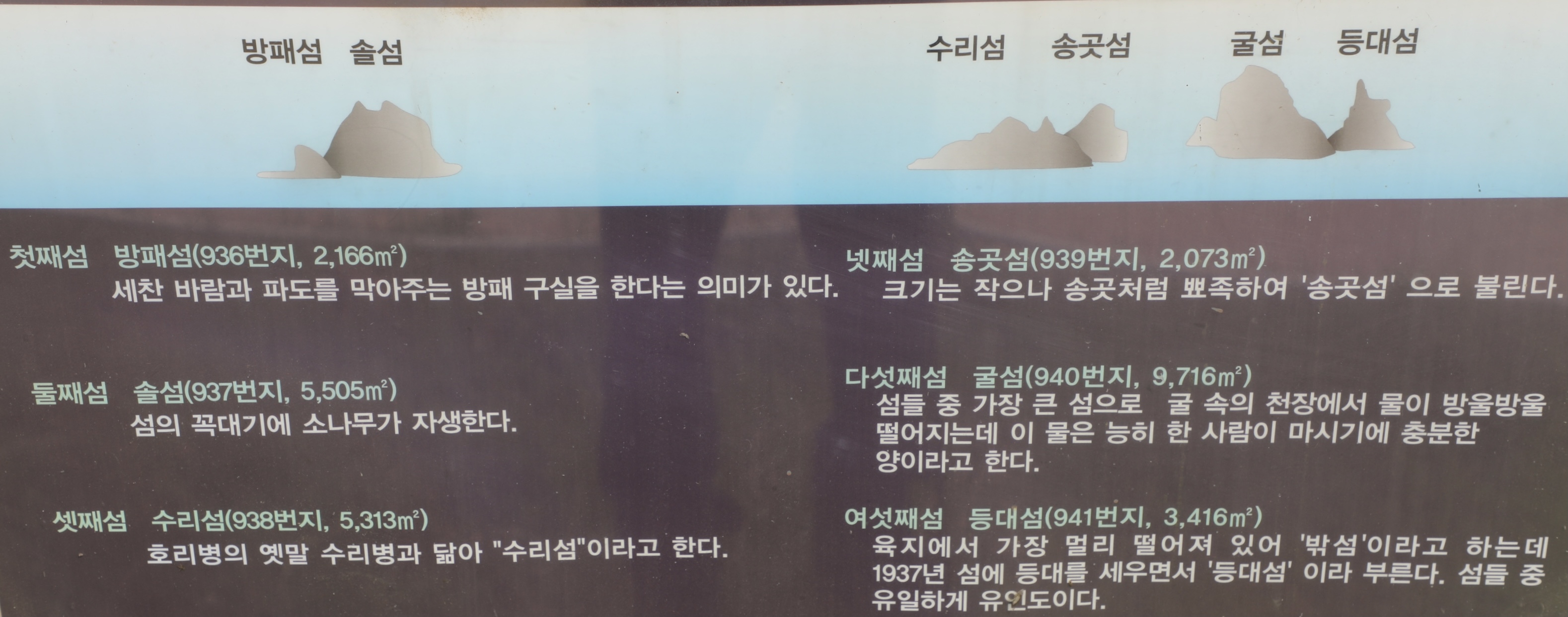 배를 타고 나가지 않으면 육안으로는 겨우 두 배 밖에 볼 수 없다.
