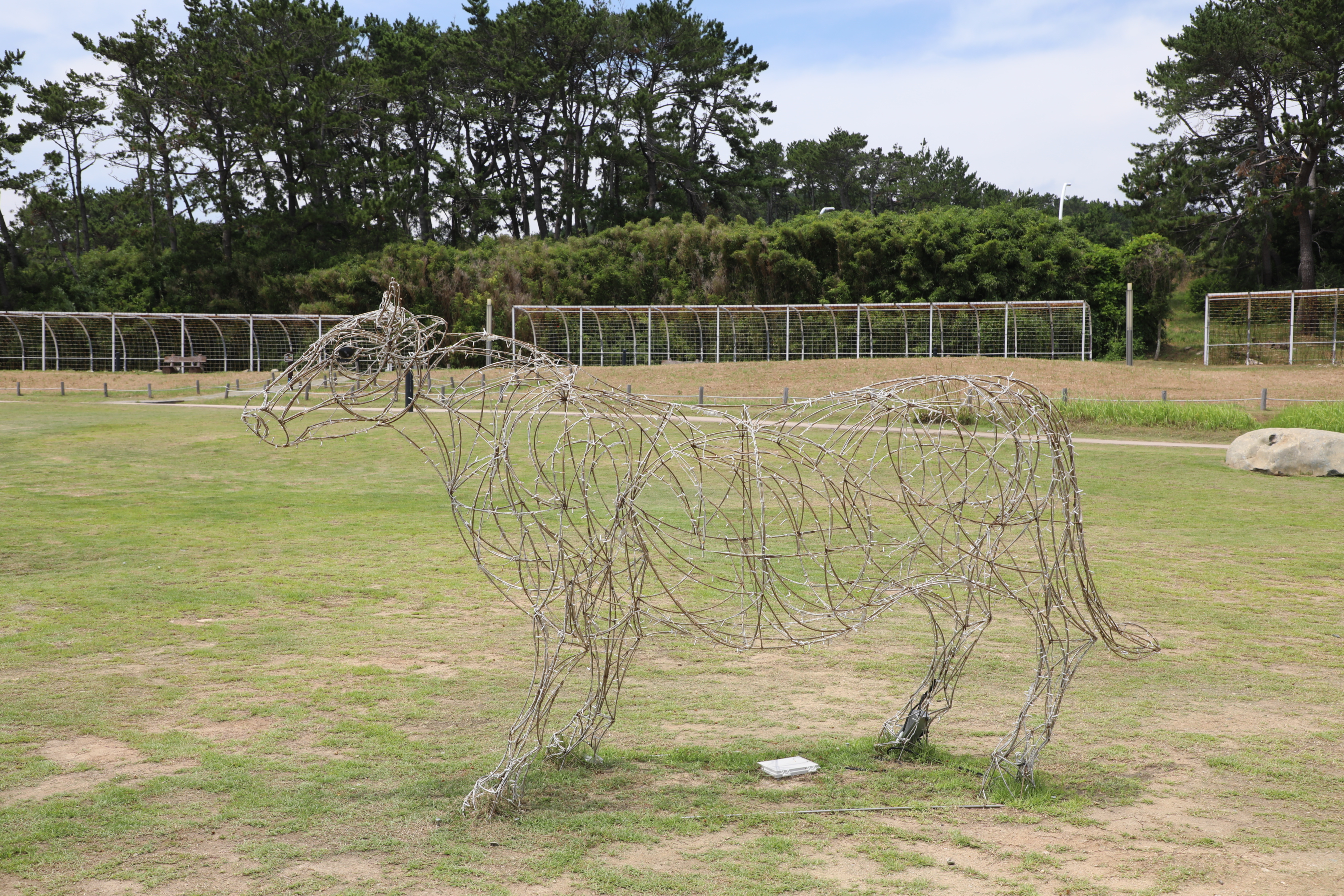 볼 수가 없으므로 암각화 중 일부를 모형으로 남아 이곳에 재현시켰다. (안내문)