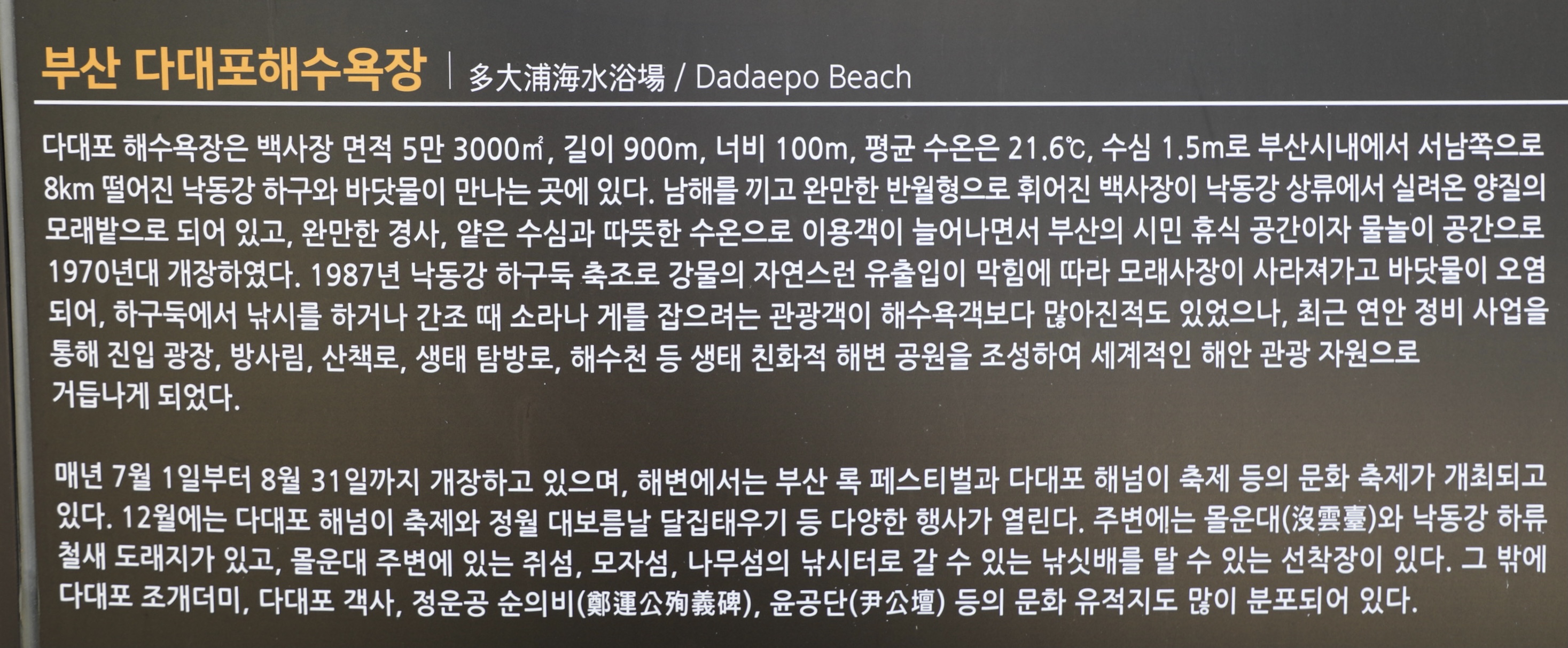 또한, 다대포해수욕장은 수심이 얕고 수온이 차지 않아 아이들이 놀기에 적격이다.