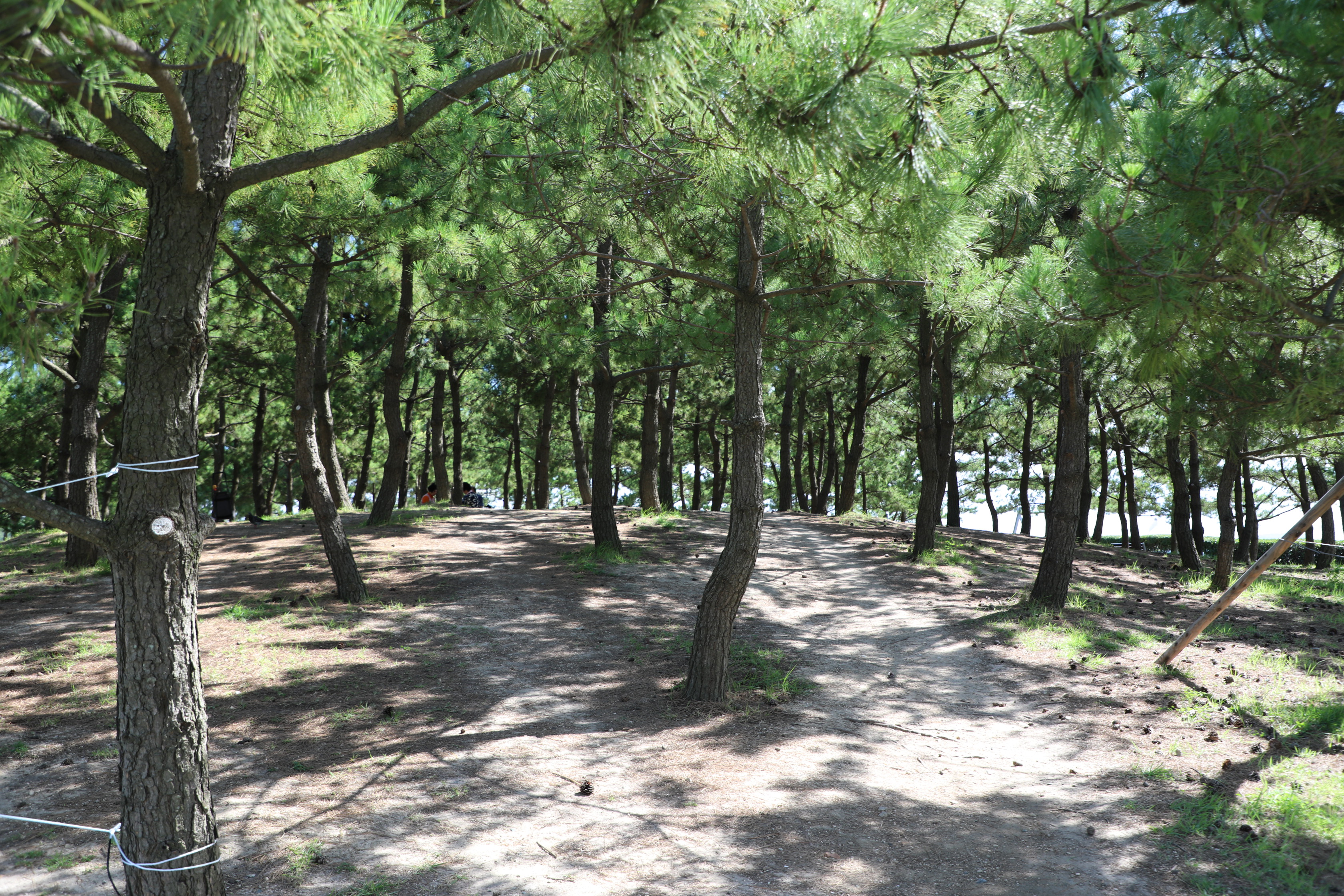 부산의 해수욕장 대부분이 도심과 붙어 있어 나무 그늘이 없는데 반해 이곳은 제법 큰 소나무 숲이 있어 좋다.