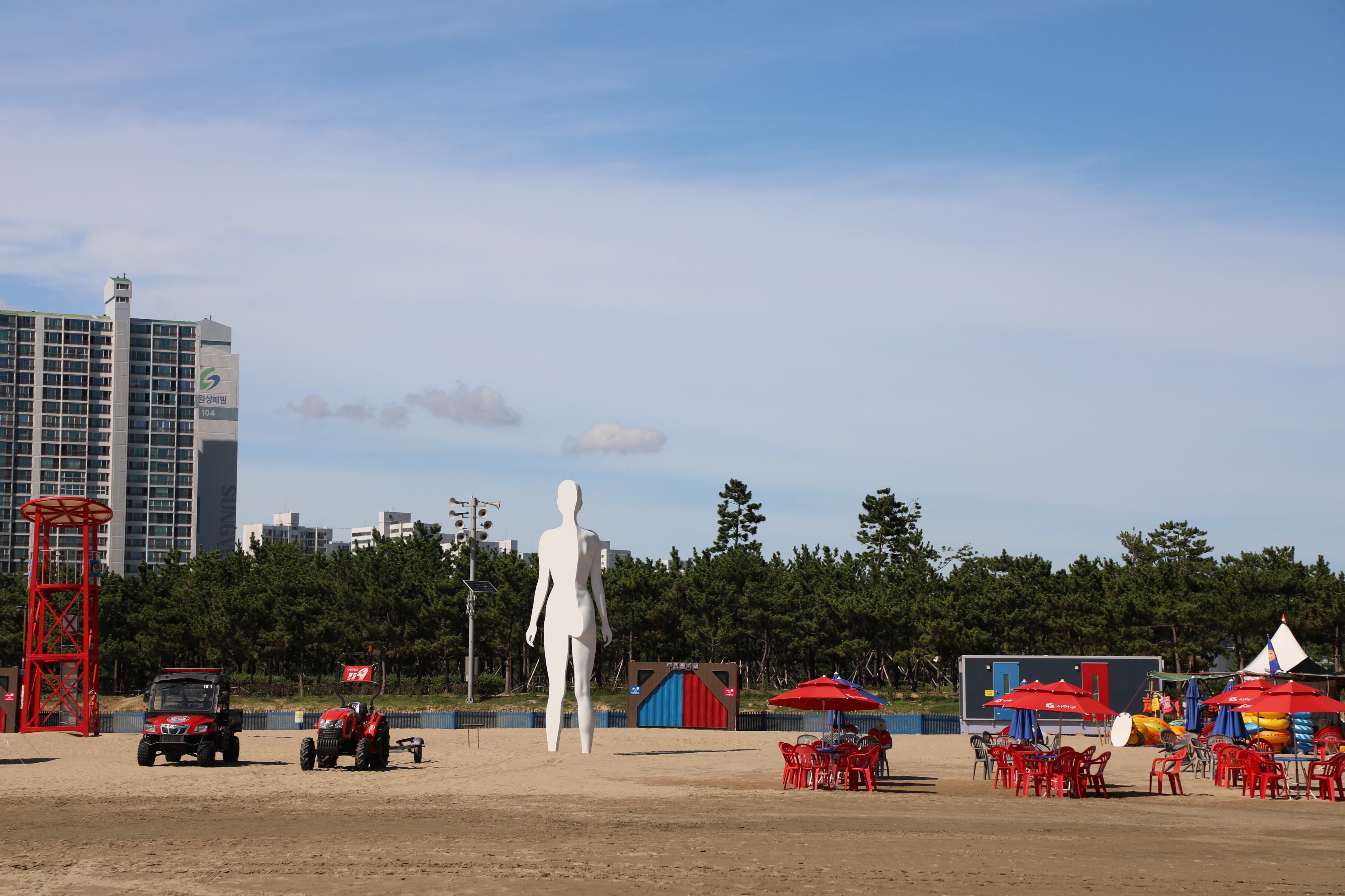 백사장 여기 저기 주차된 장난감 포클레인과 트럭이 알록달록 색을 발하는 모습이 귀엽다.