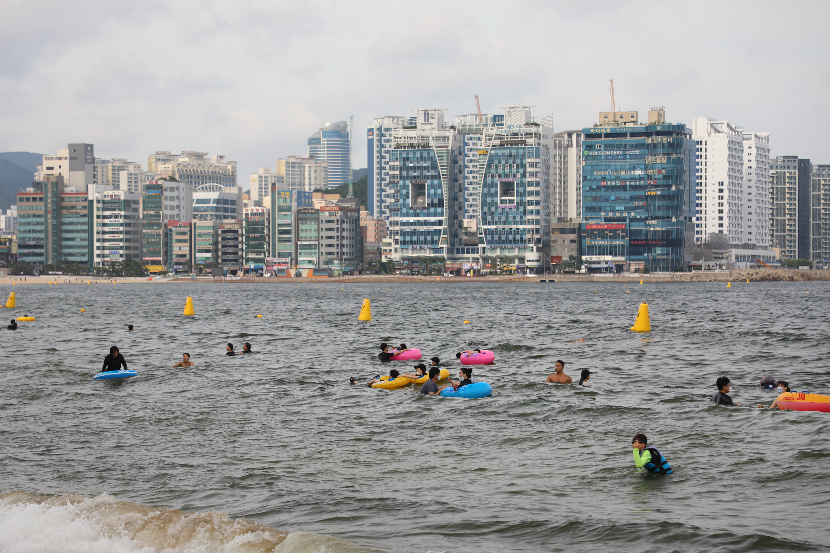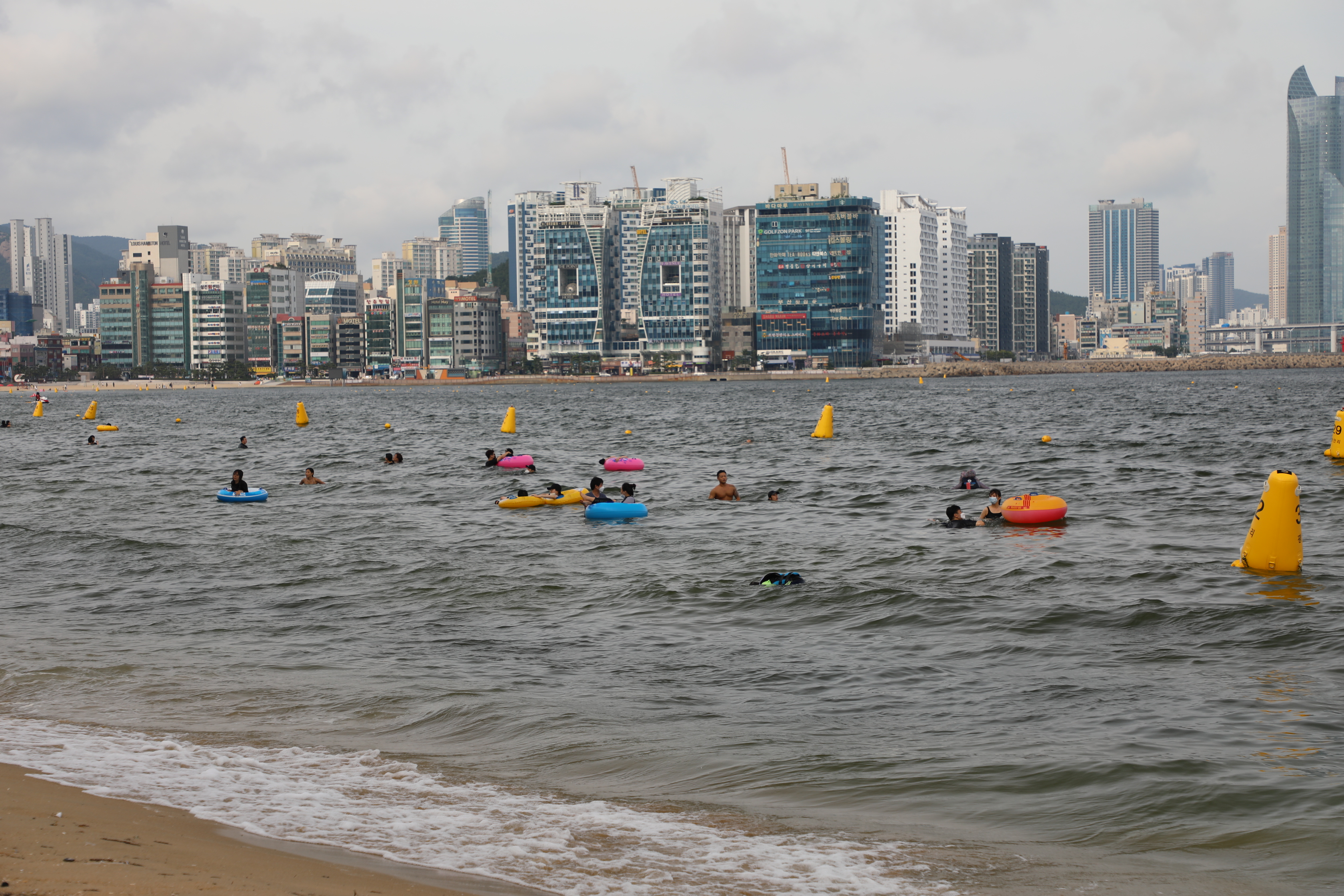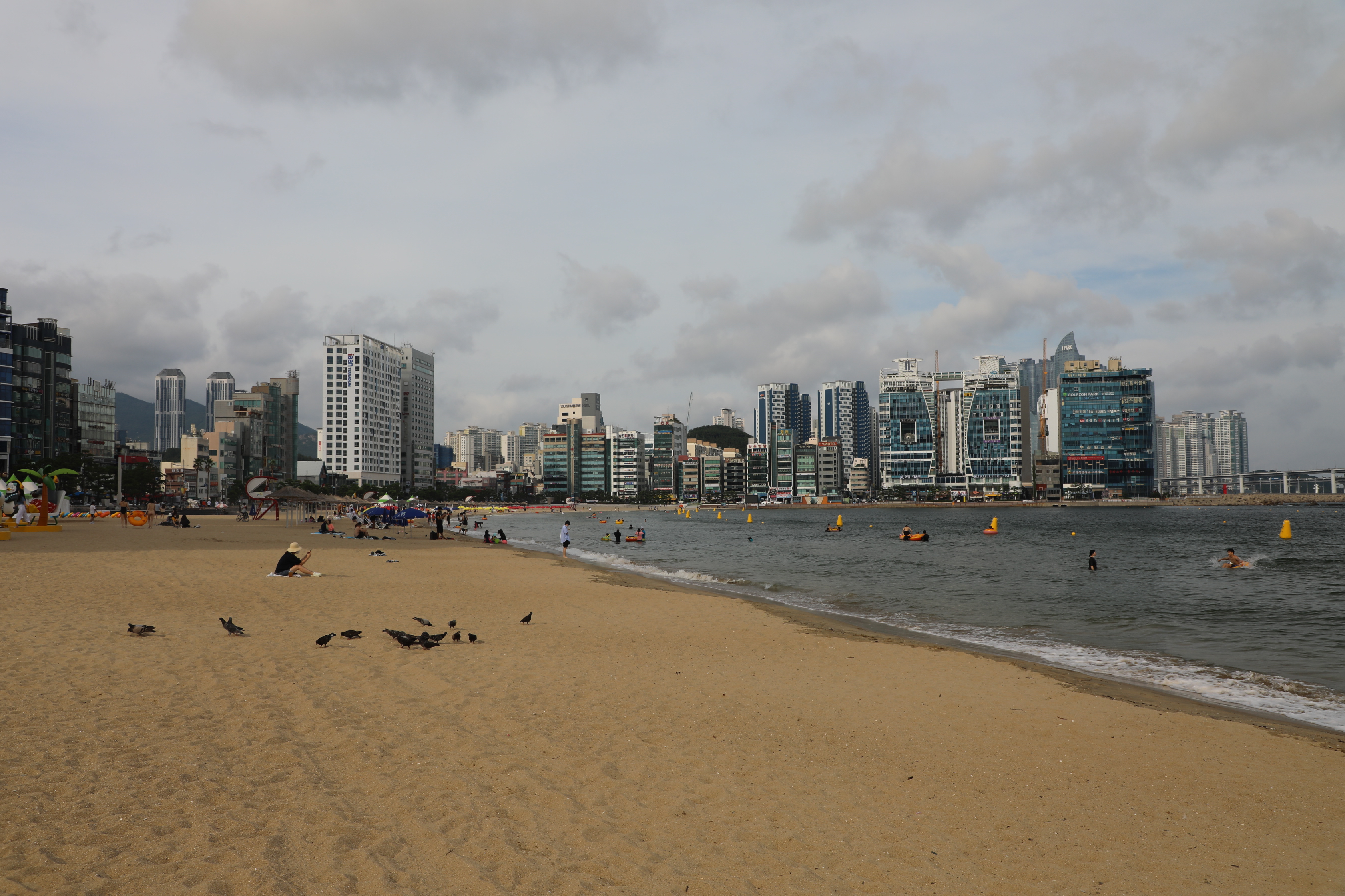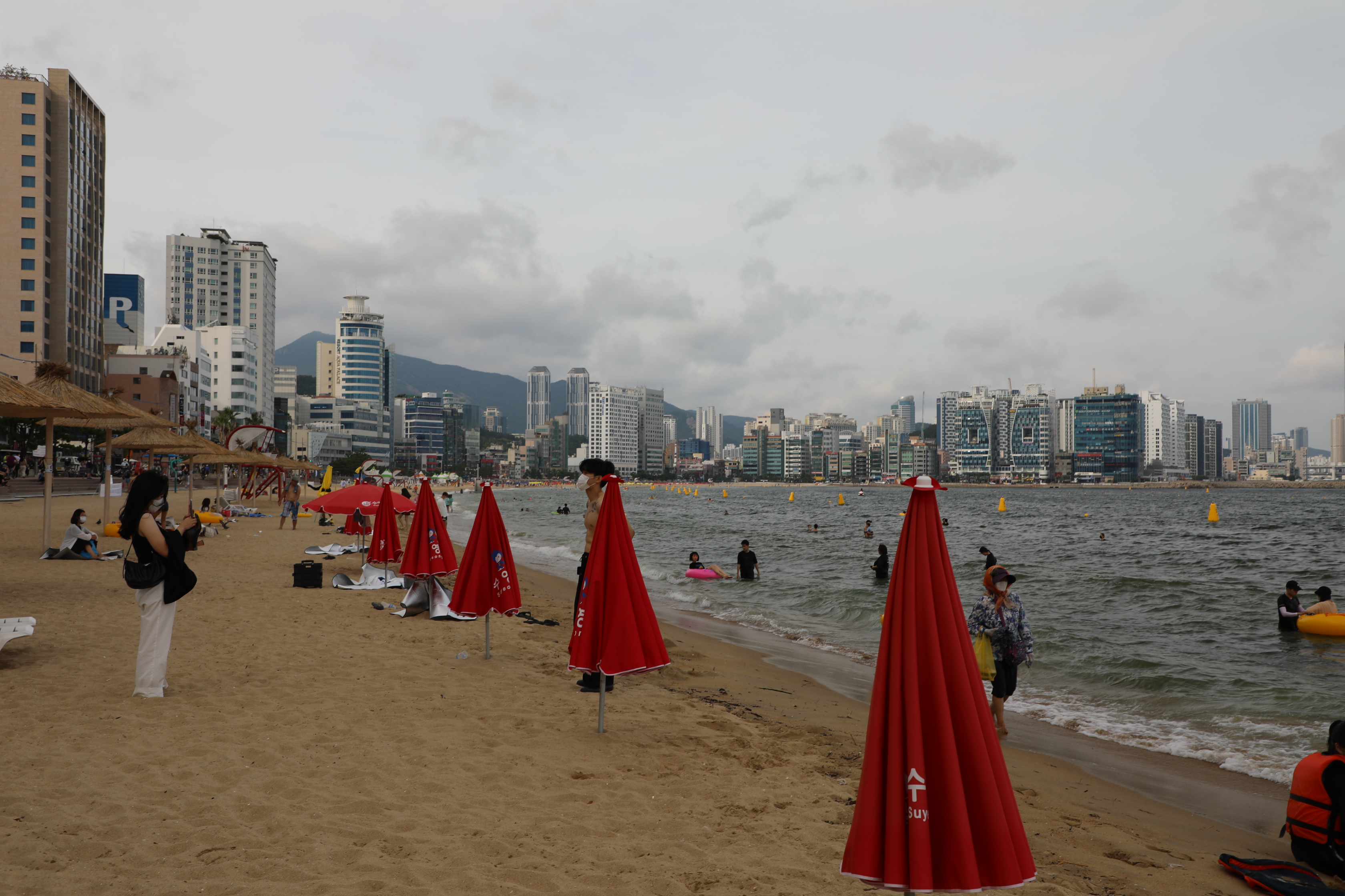 그래도 바다엔 피서를 즐기는 사람이 많다.