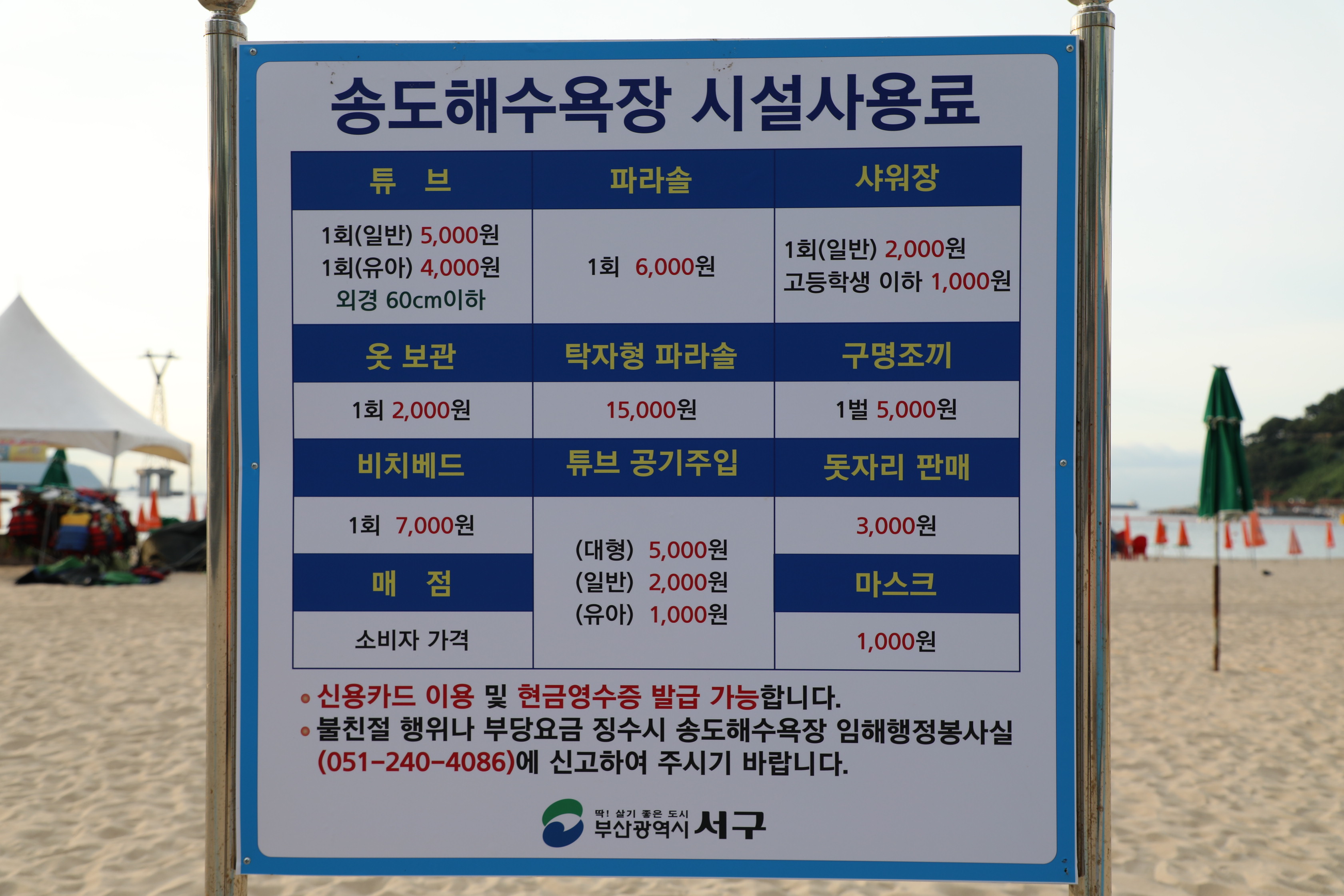 깨끗한 모래사장과 맑은 수질, 구름산책로, 해상 케이블카를 가진 송도해수욕장은