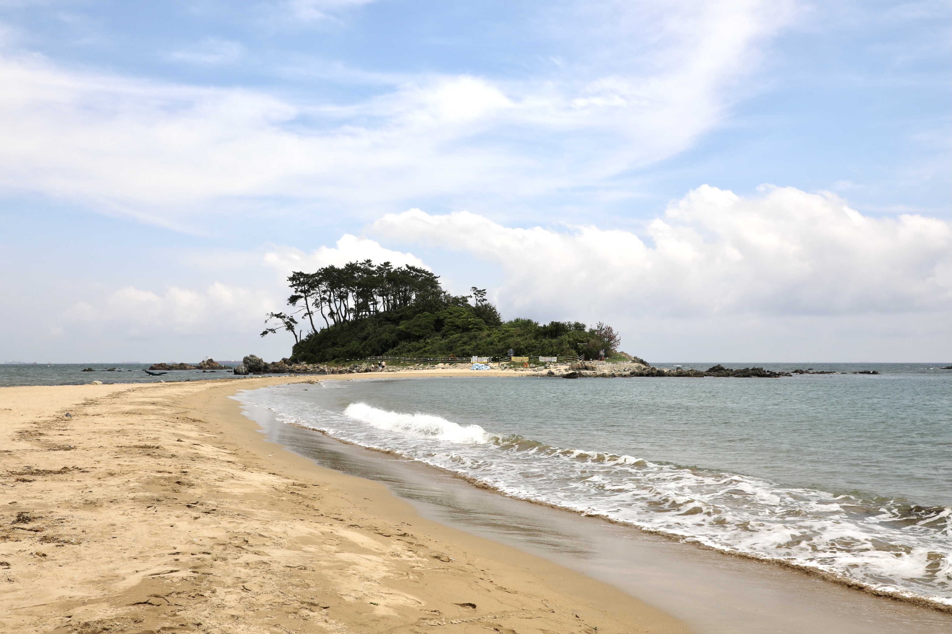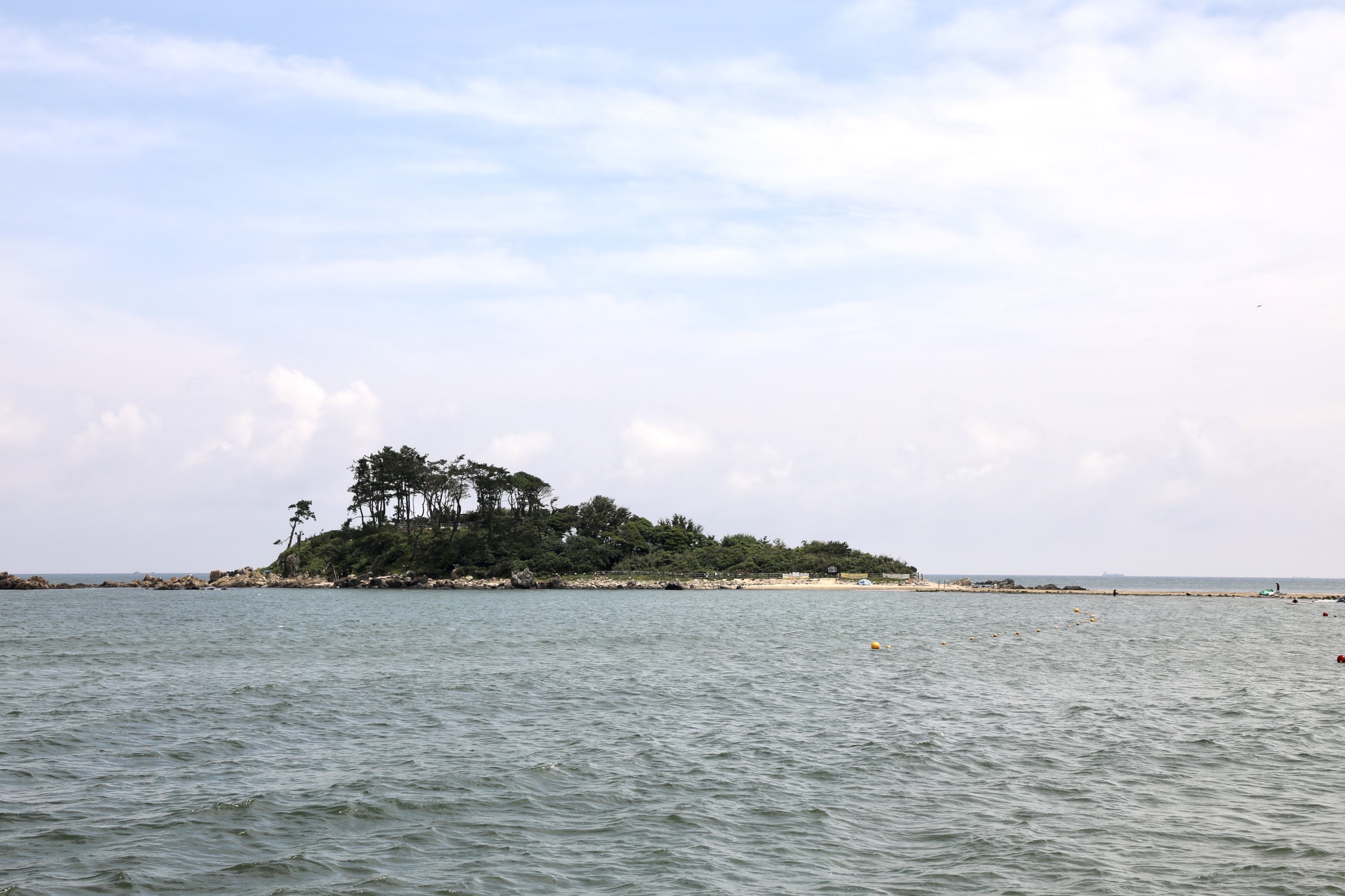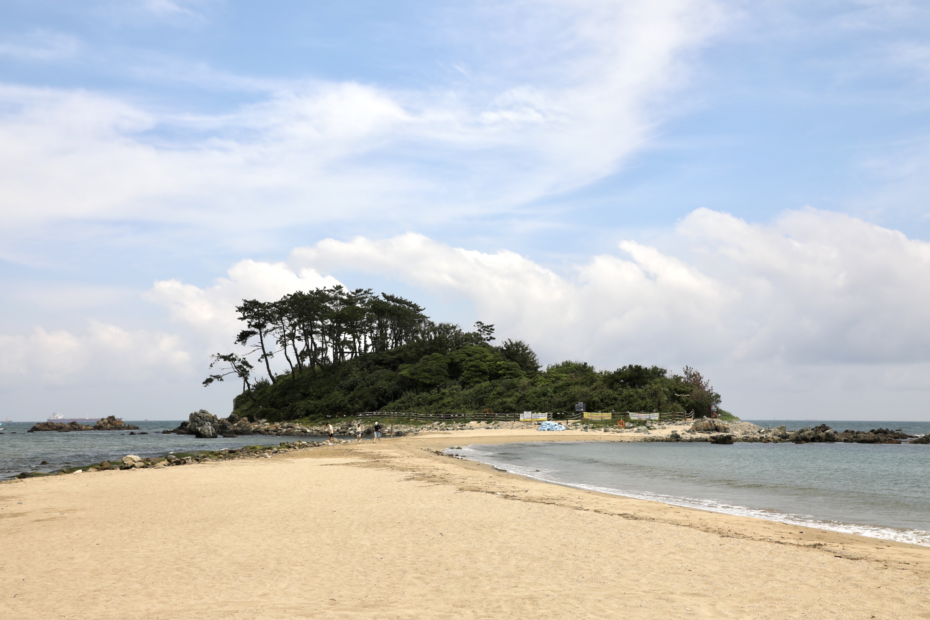 섬으로 연결된 모래 언덕이 바다를 가르며 양쪽으로 해수욕장 마저 갈라놓은 진풍경을 본 것이다.