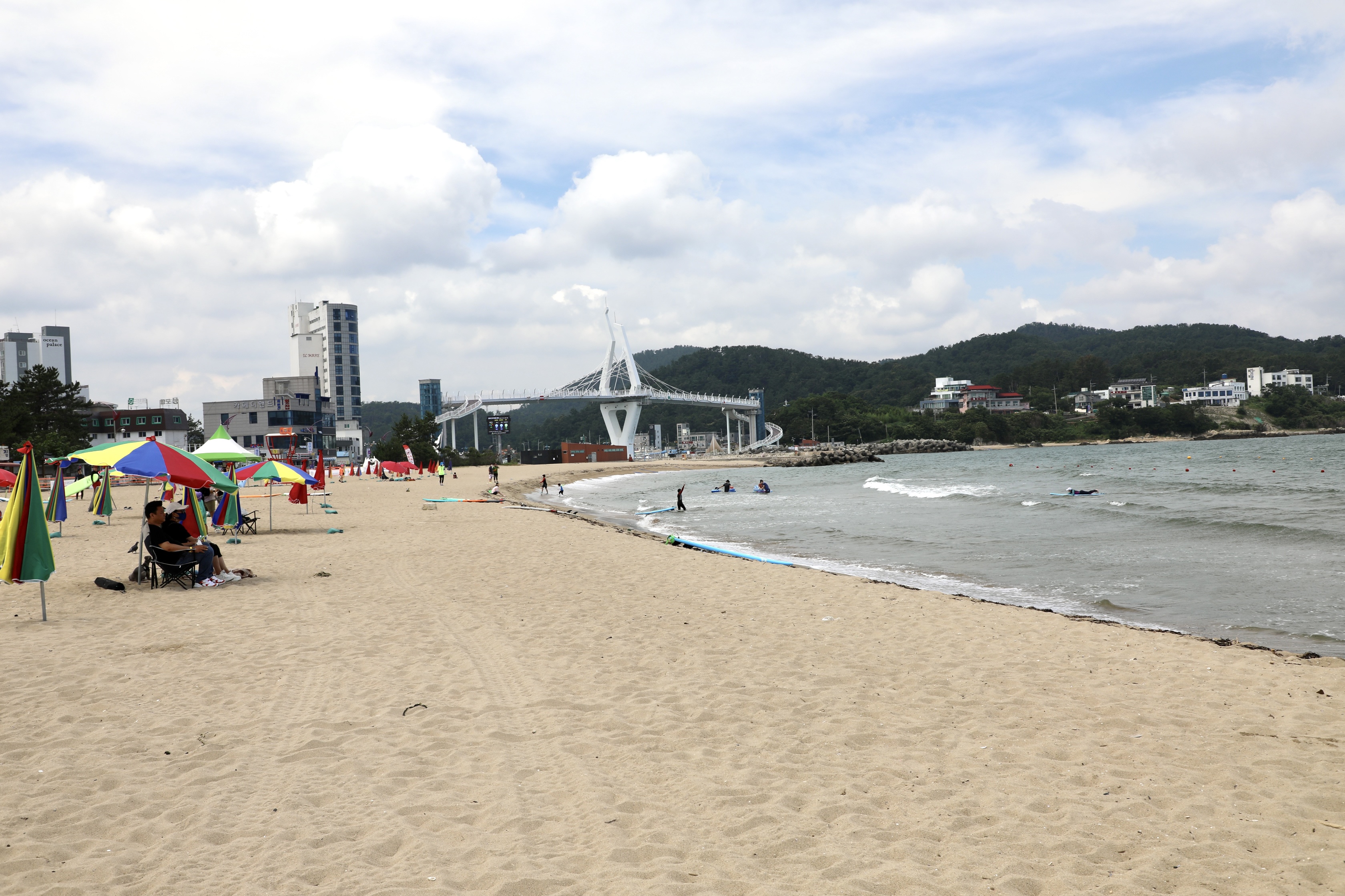 진하해수욕장은 수심이 얕고 파도가 잔잔하여 해수욕장으로 알맞은 조건을 갖추고 있어 매년 많은 관광객이 찾고 있다.