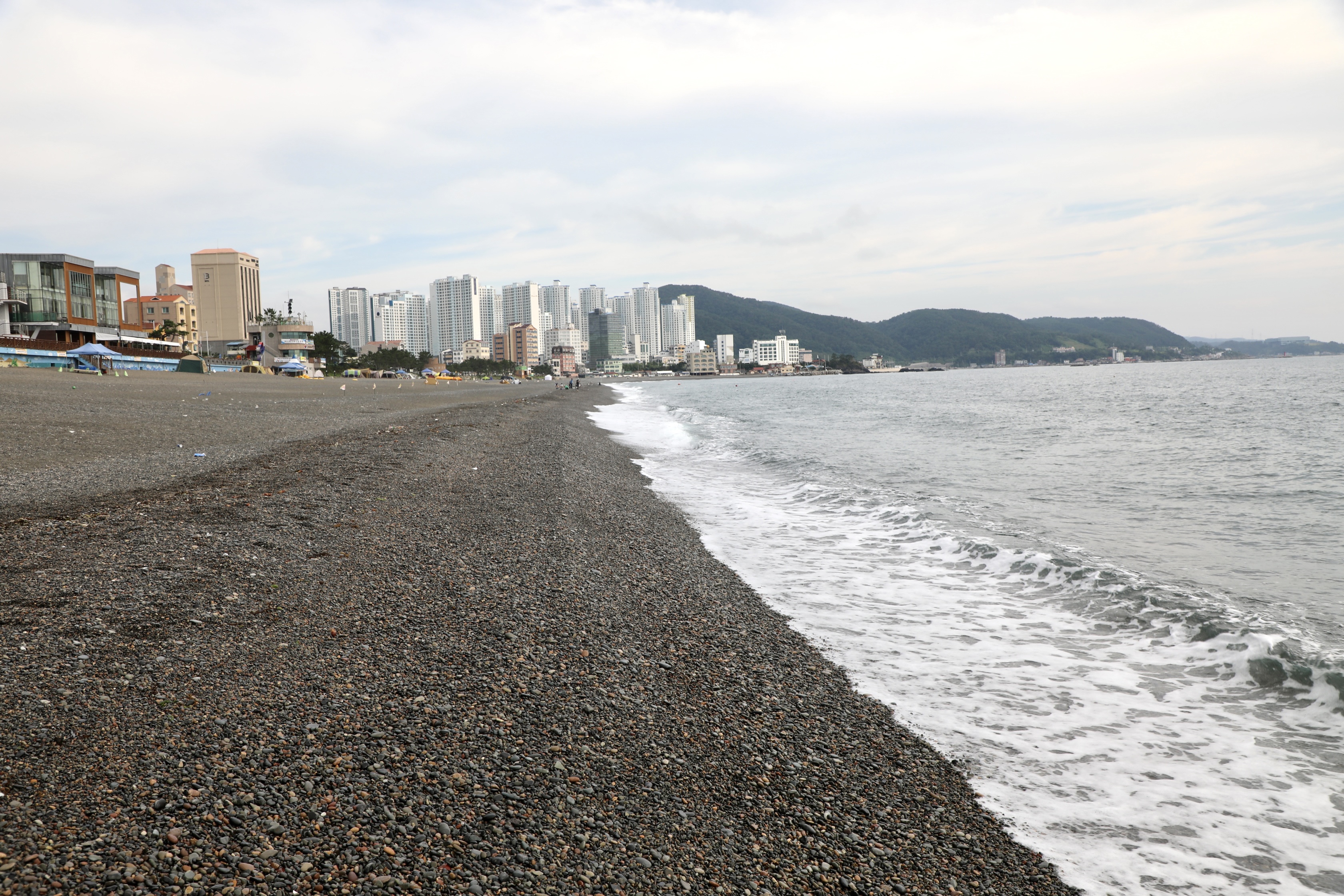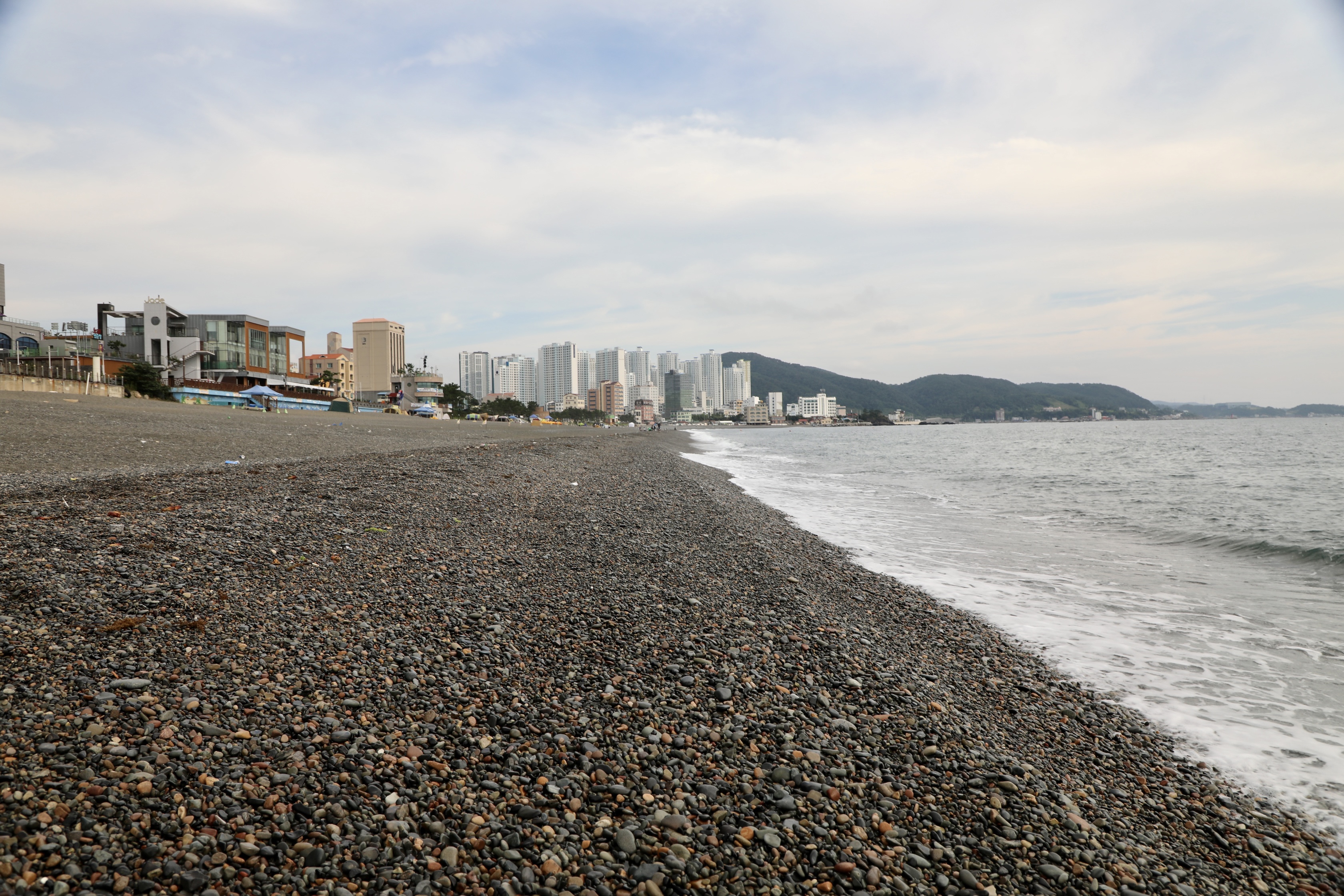금모래 해수욕장은 맑은 색으로 인기를 끈다면 검은색 몽돌해수욕장도 나름대로 인기가 있다.