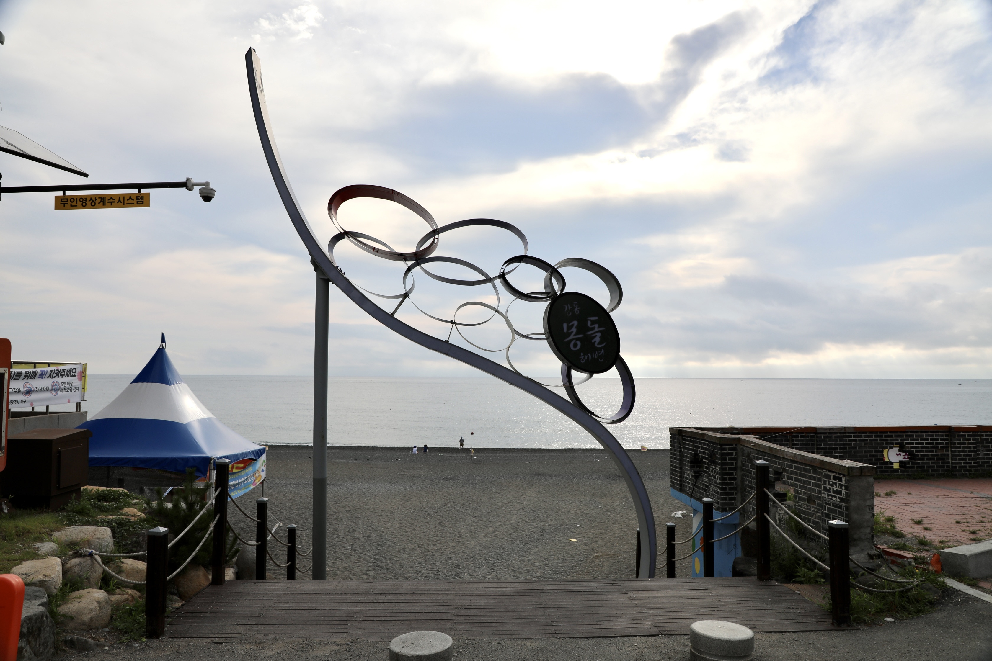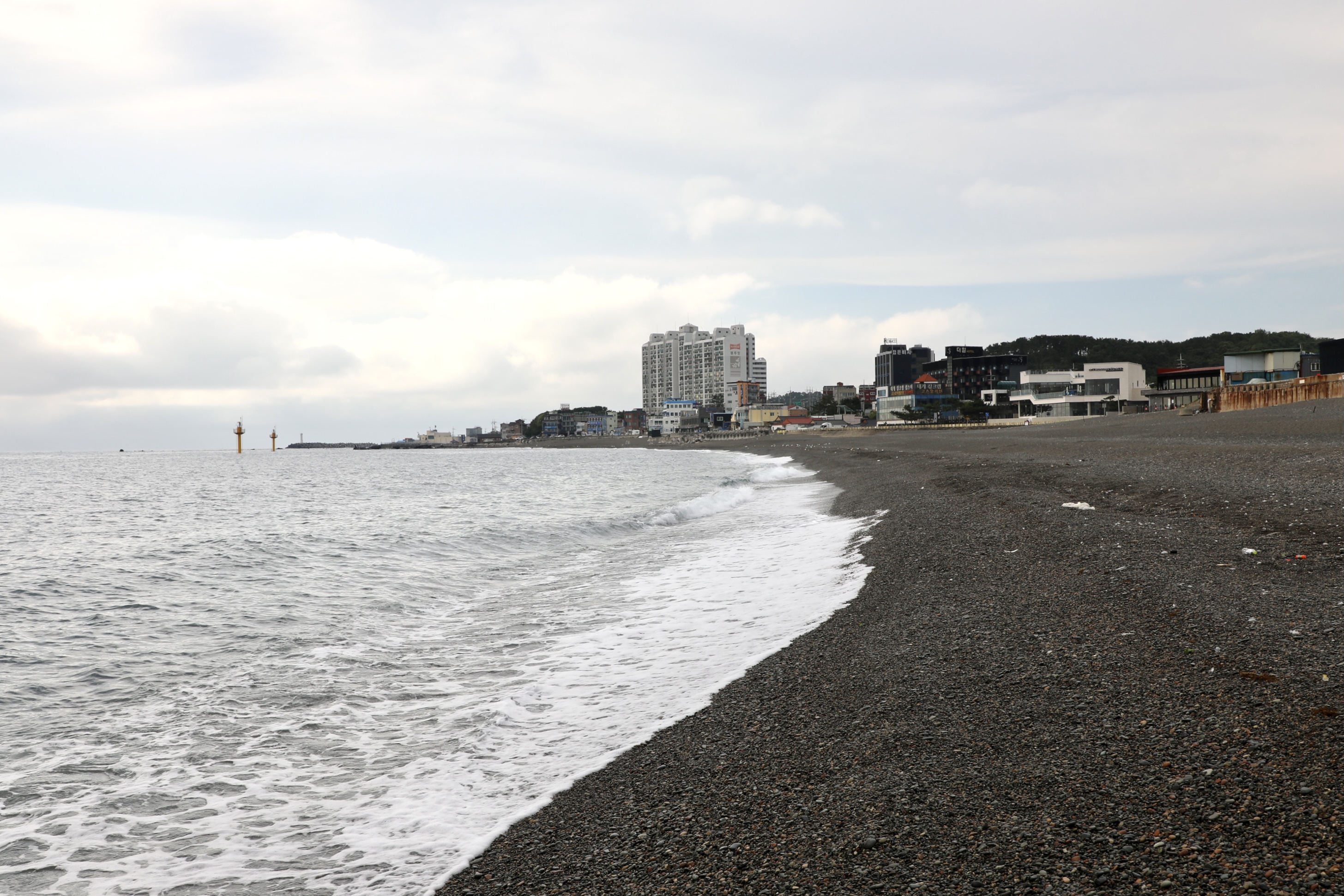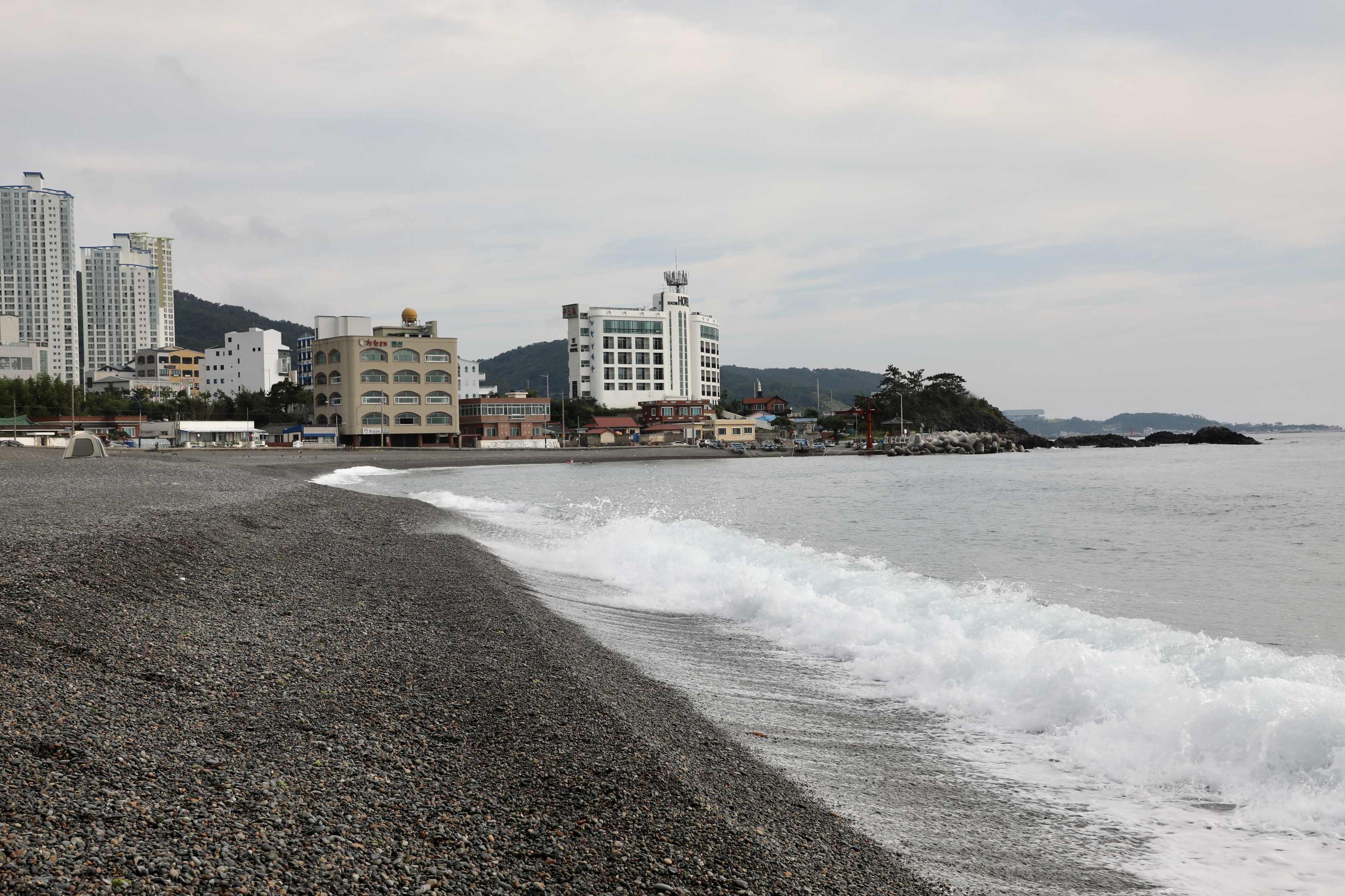 파도가 밀려갈 때마다 물결이 휩쓸리며 몽돌이 서로 부띠 끼는 소리가 시원하게 들린다.