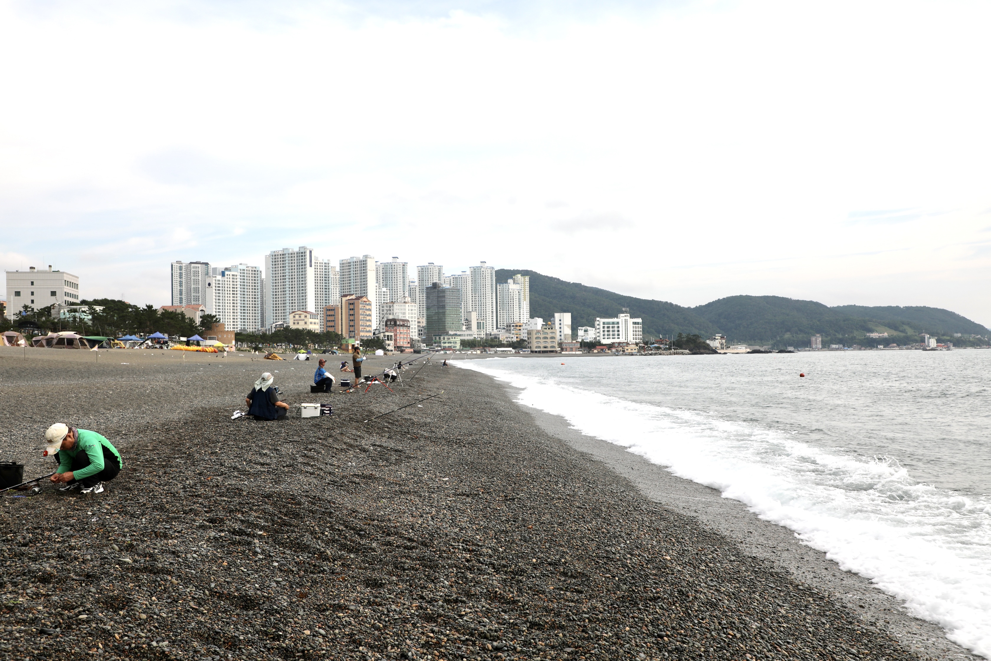 몇몇 낚시꾼은 낚싯대를 드리우며 월척을 꿈꾸지만, 해수욕장이라 수심이 낮아 잘 잡힐까?