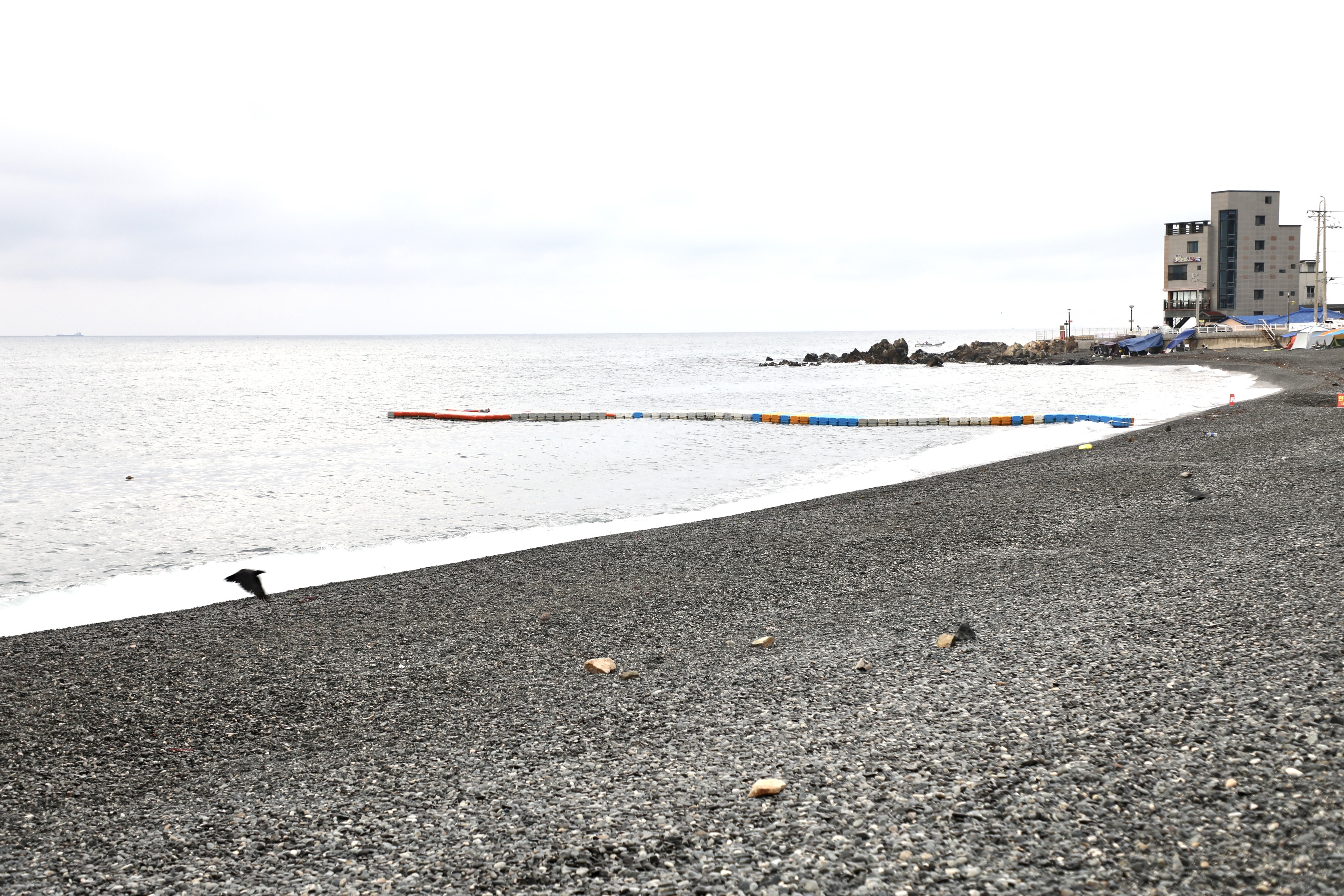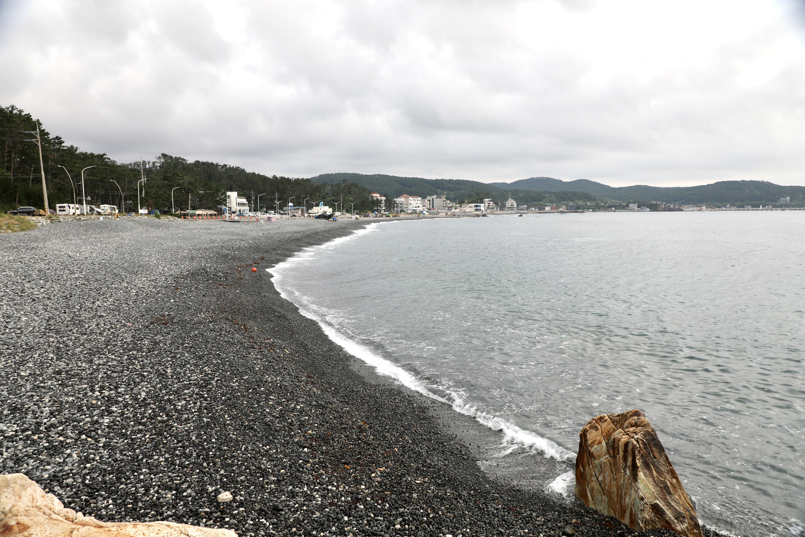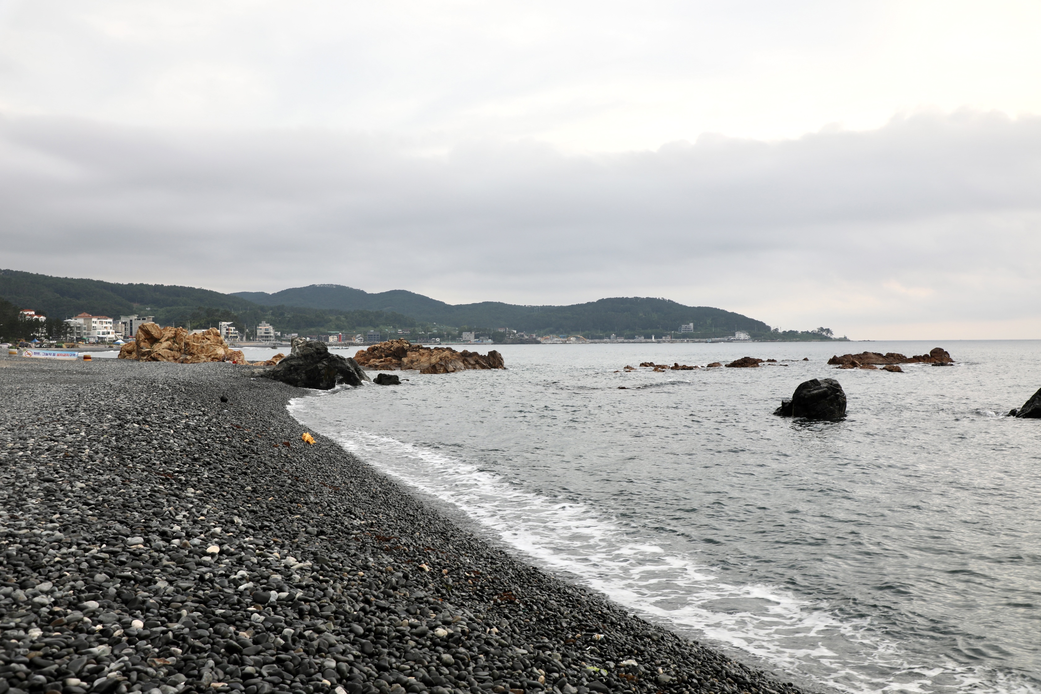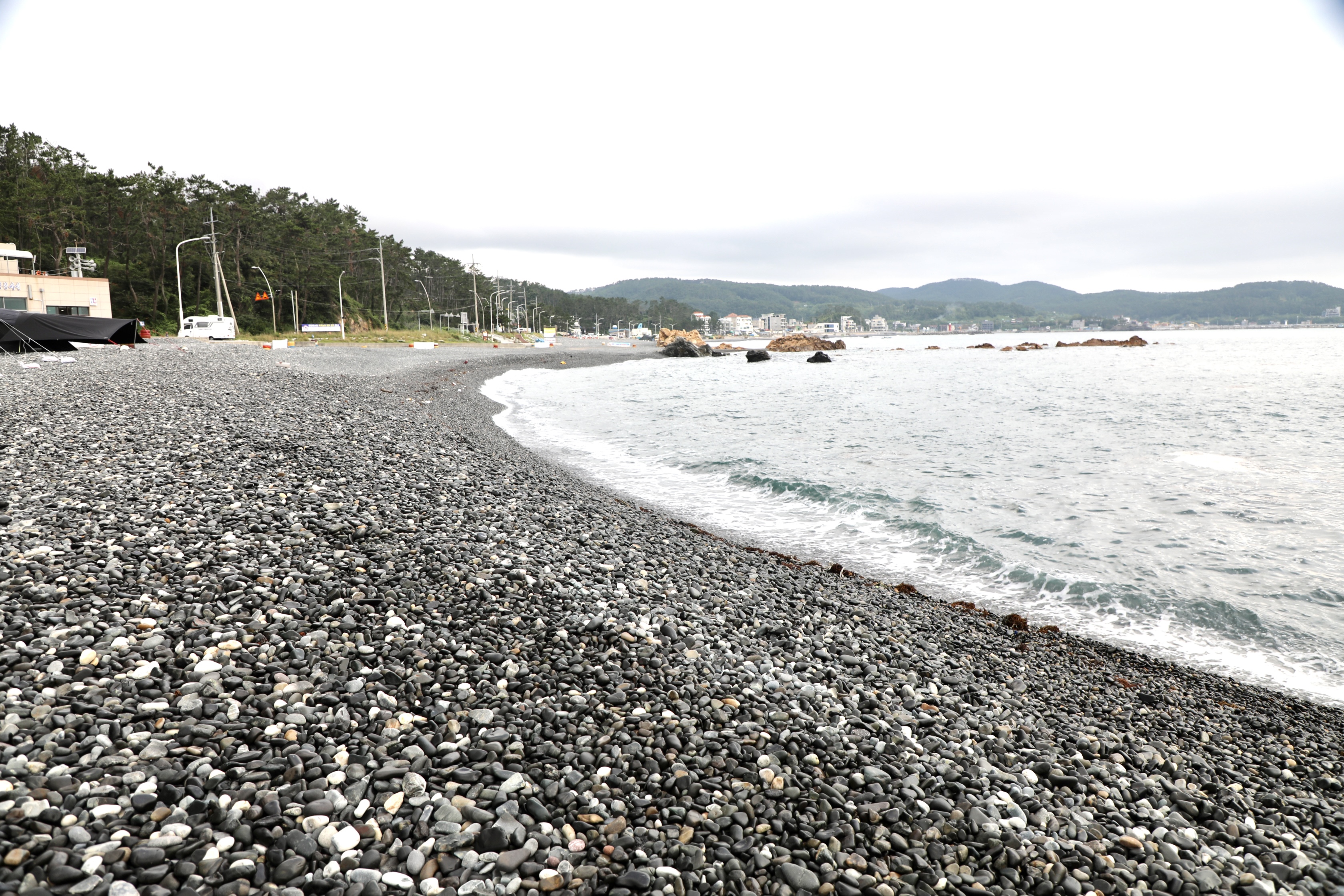끝없이 보이는 주전 몽돌해수욕장에 한 사람도 안 보인다.