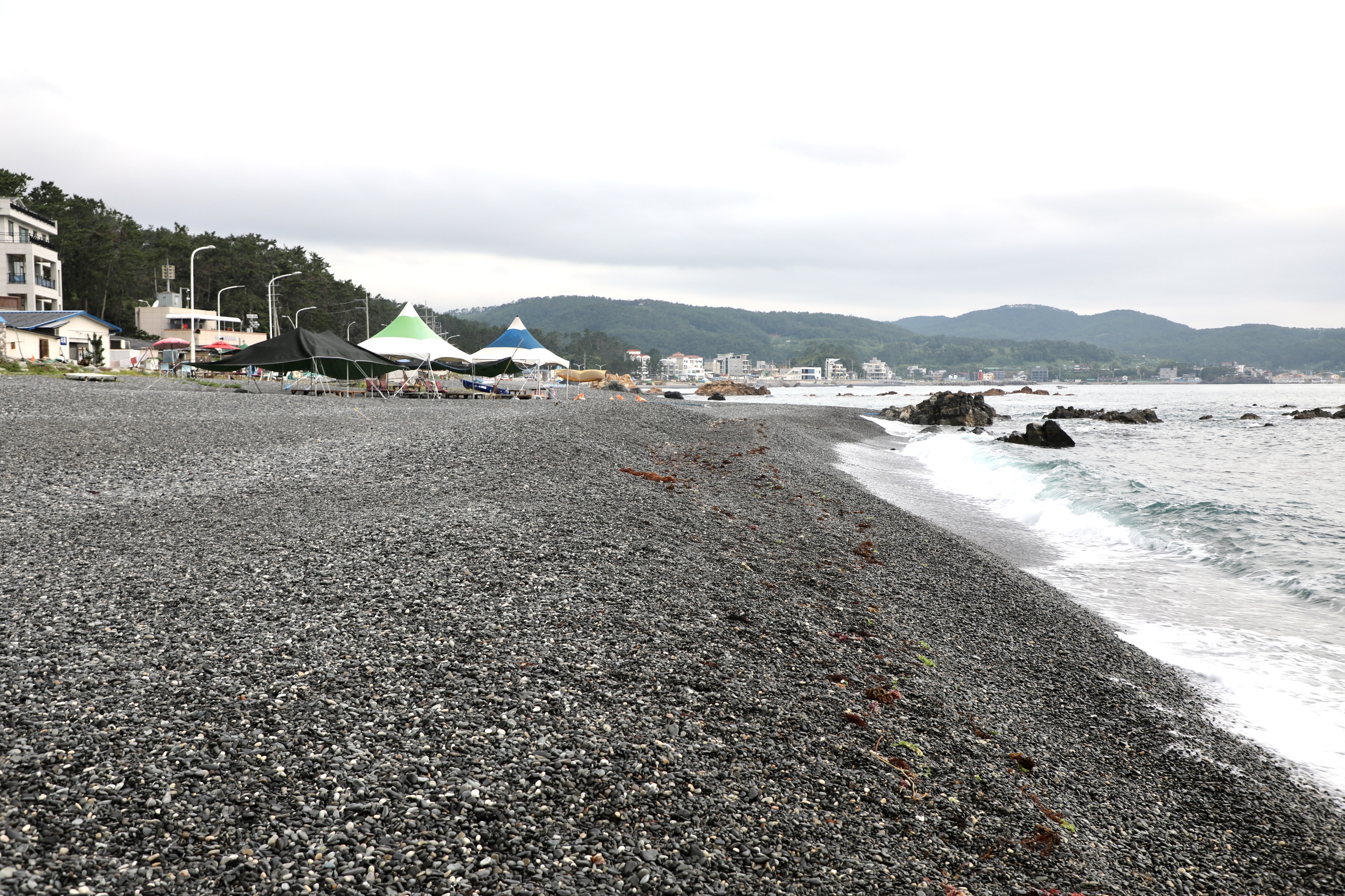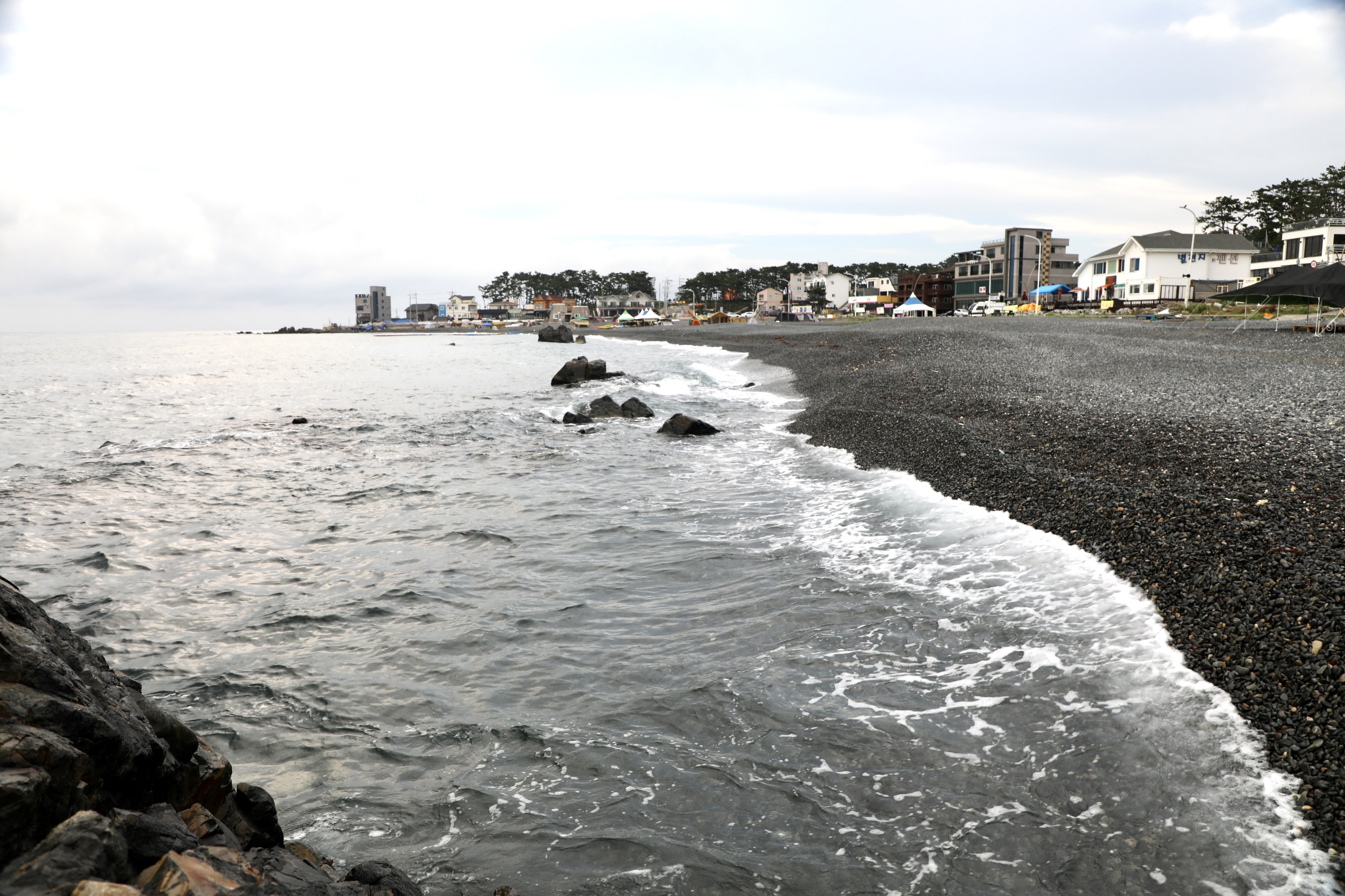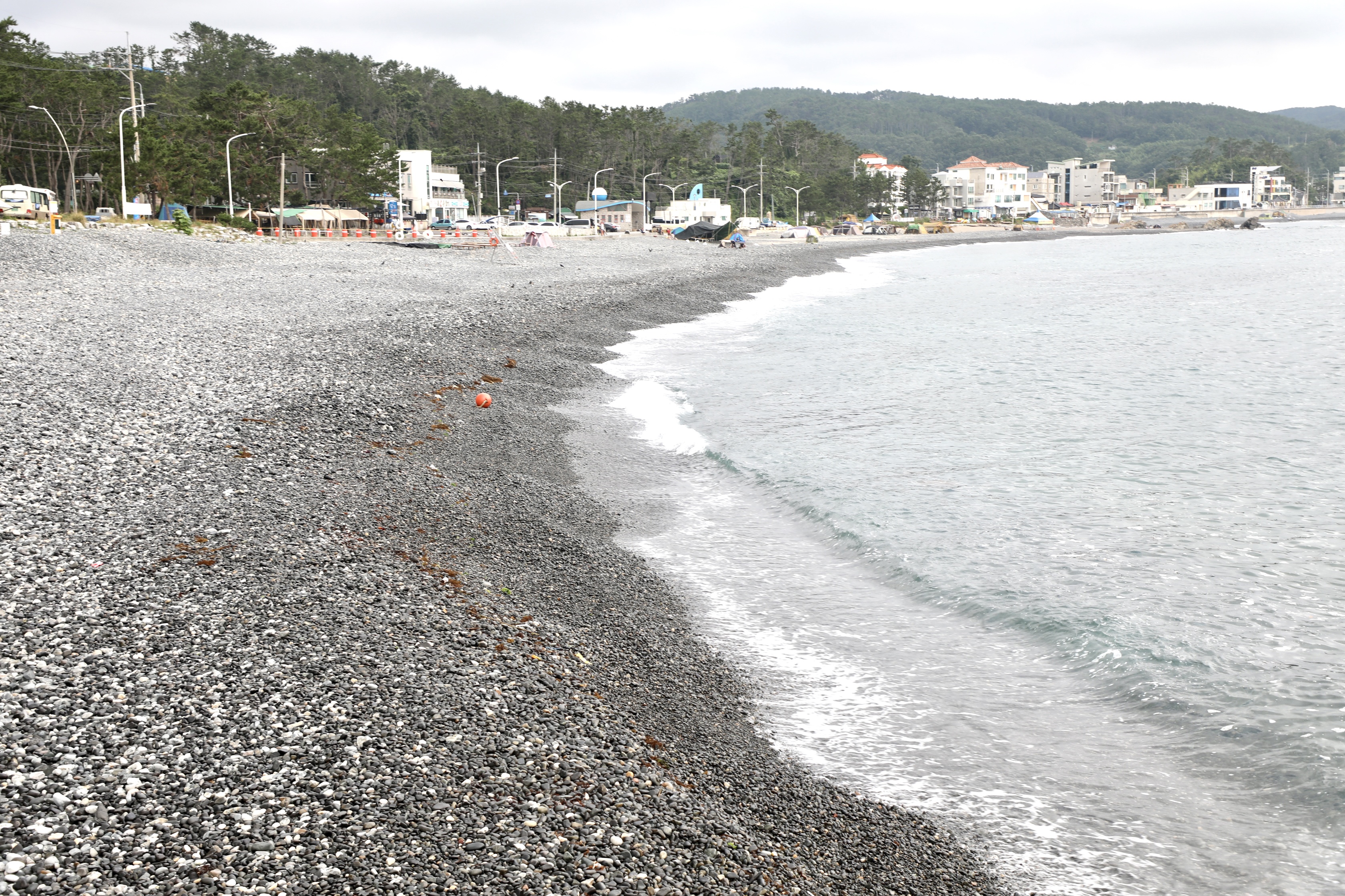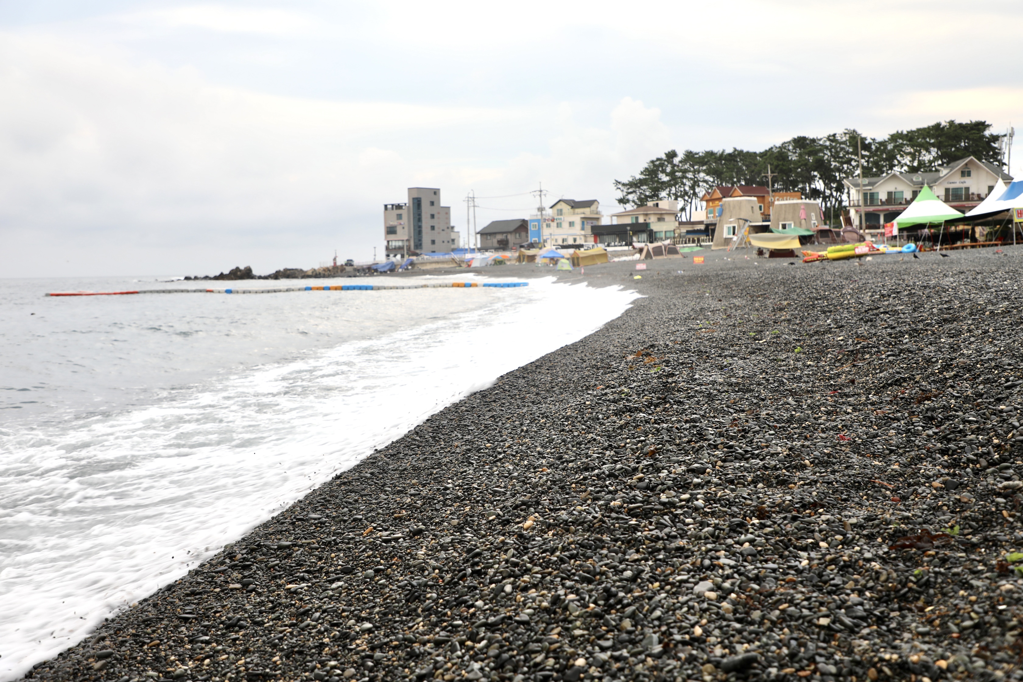 끝없이 보이는 주전 몽돌해수욕장에 한 사람도 안 보인다.