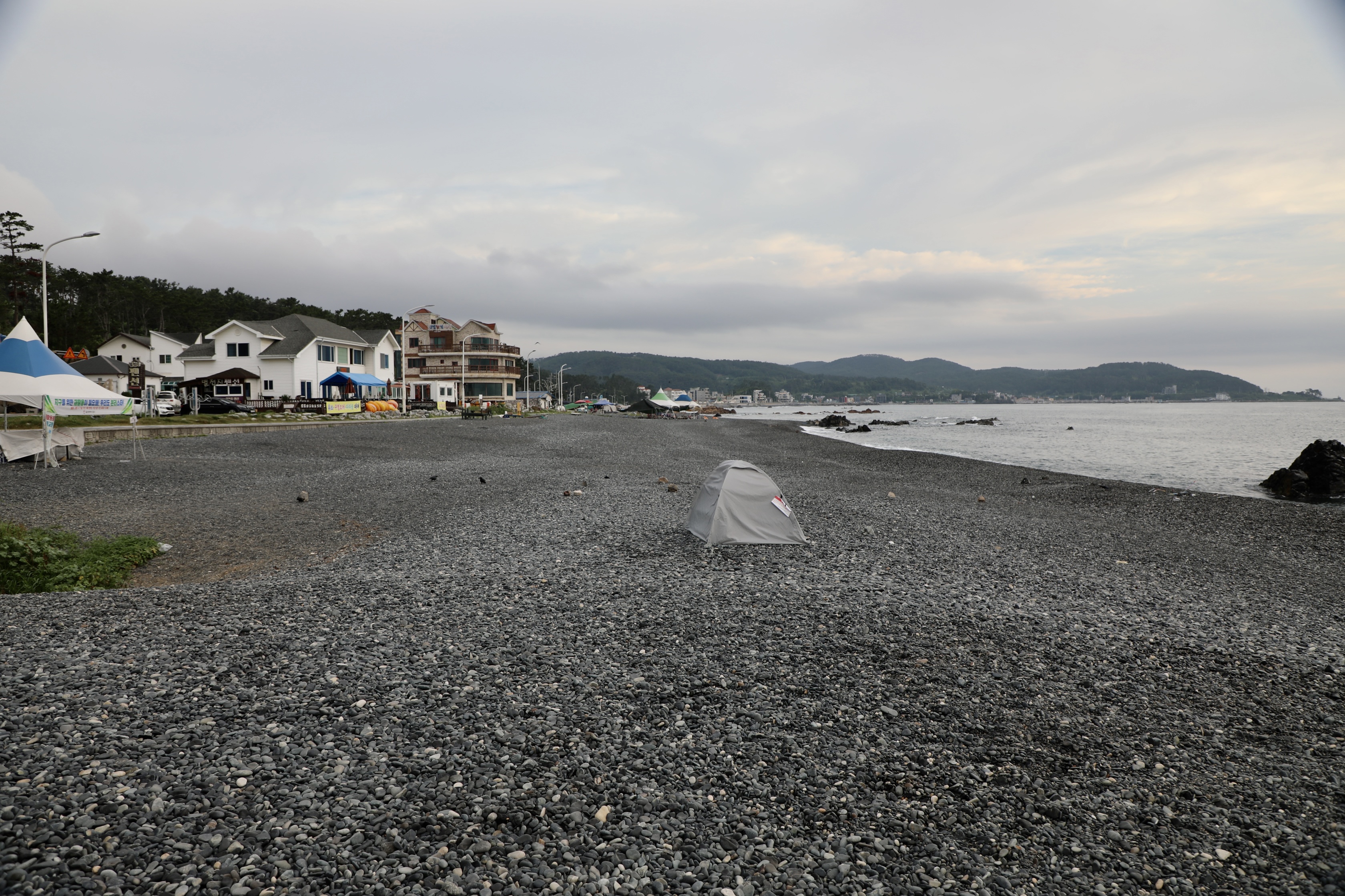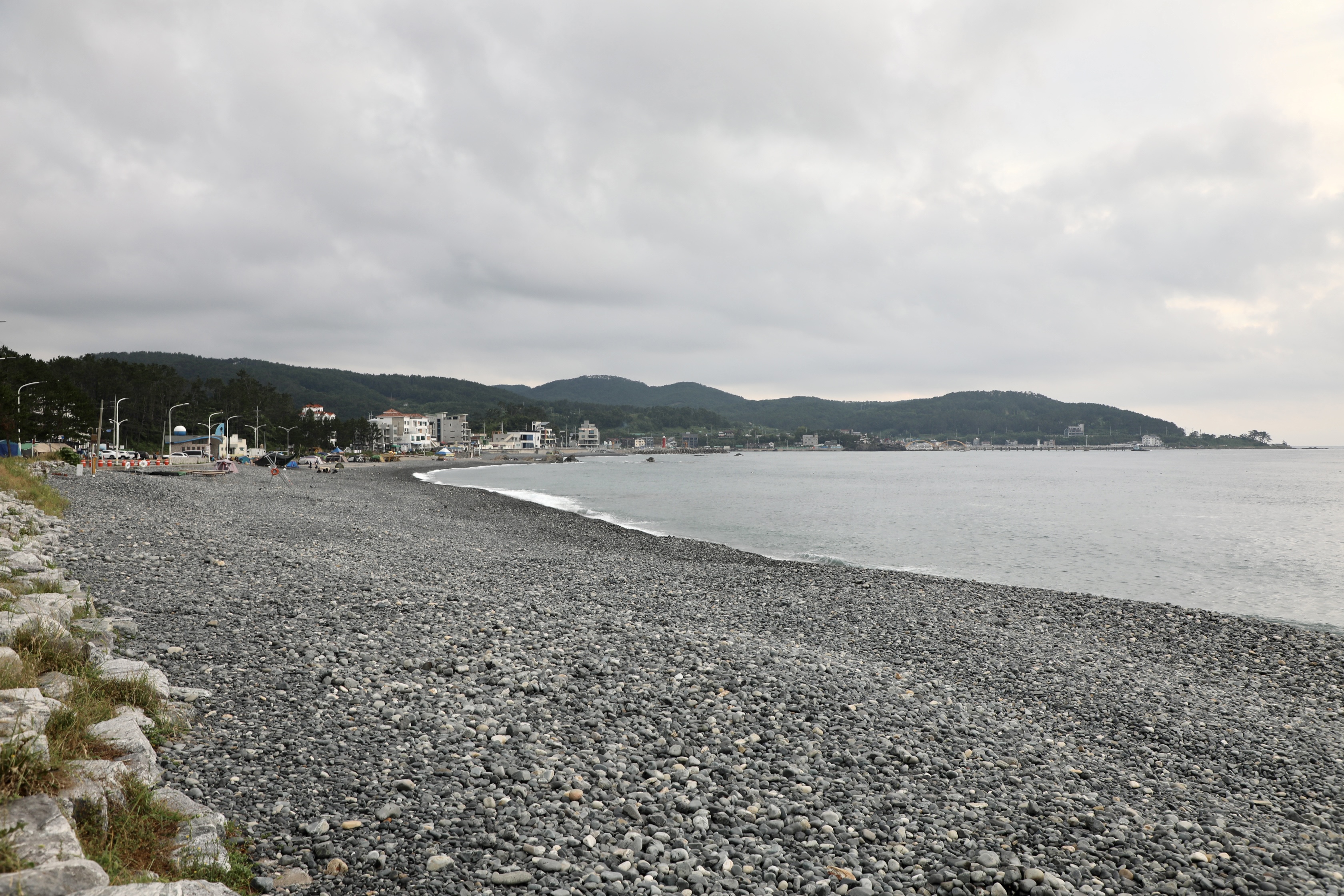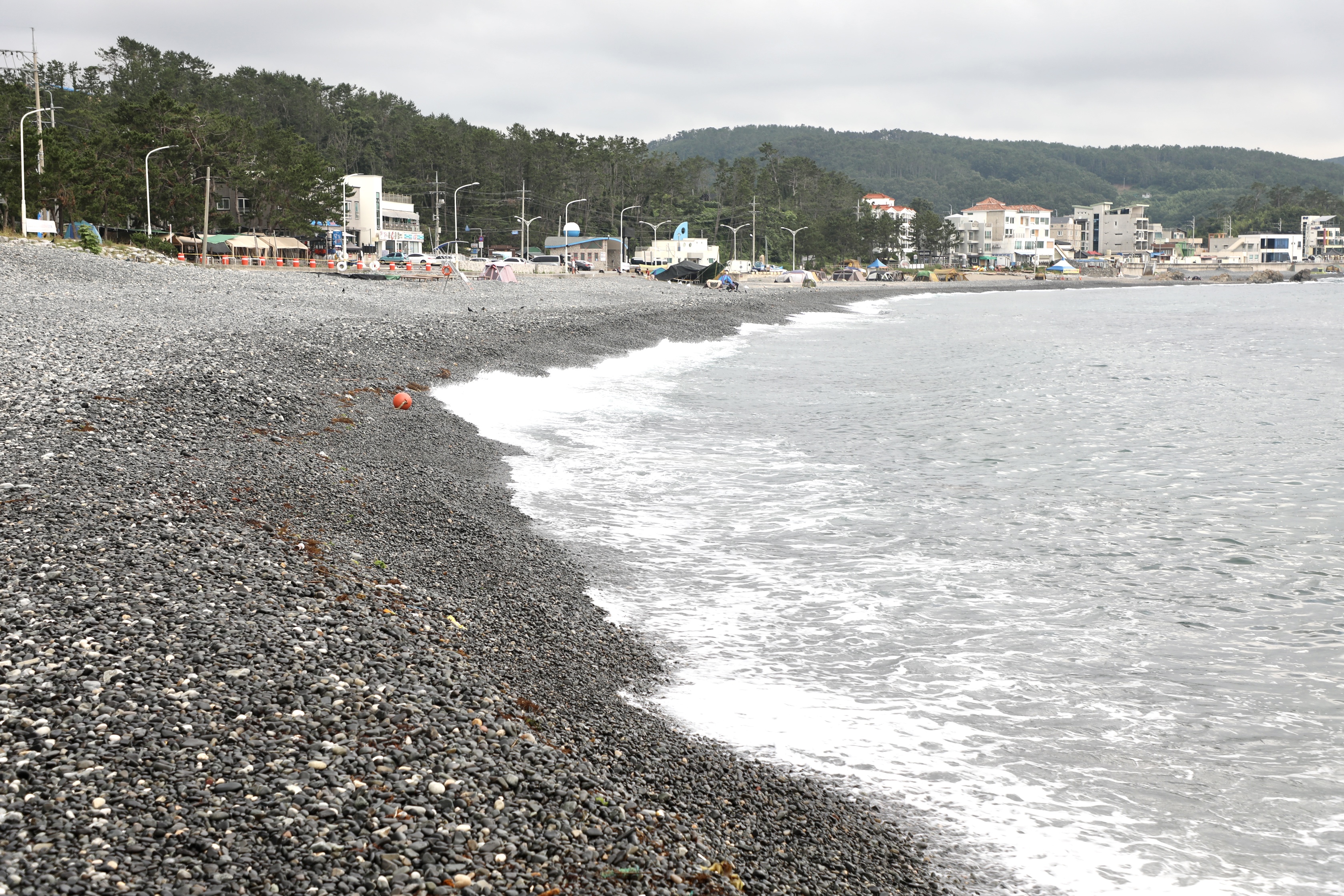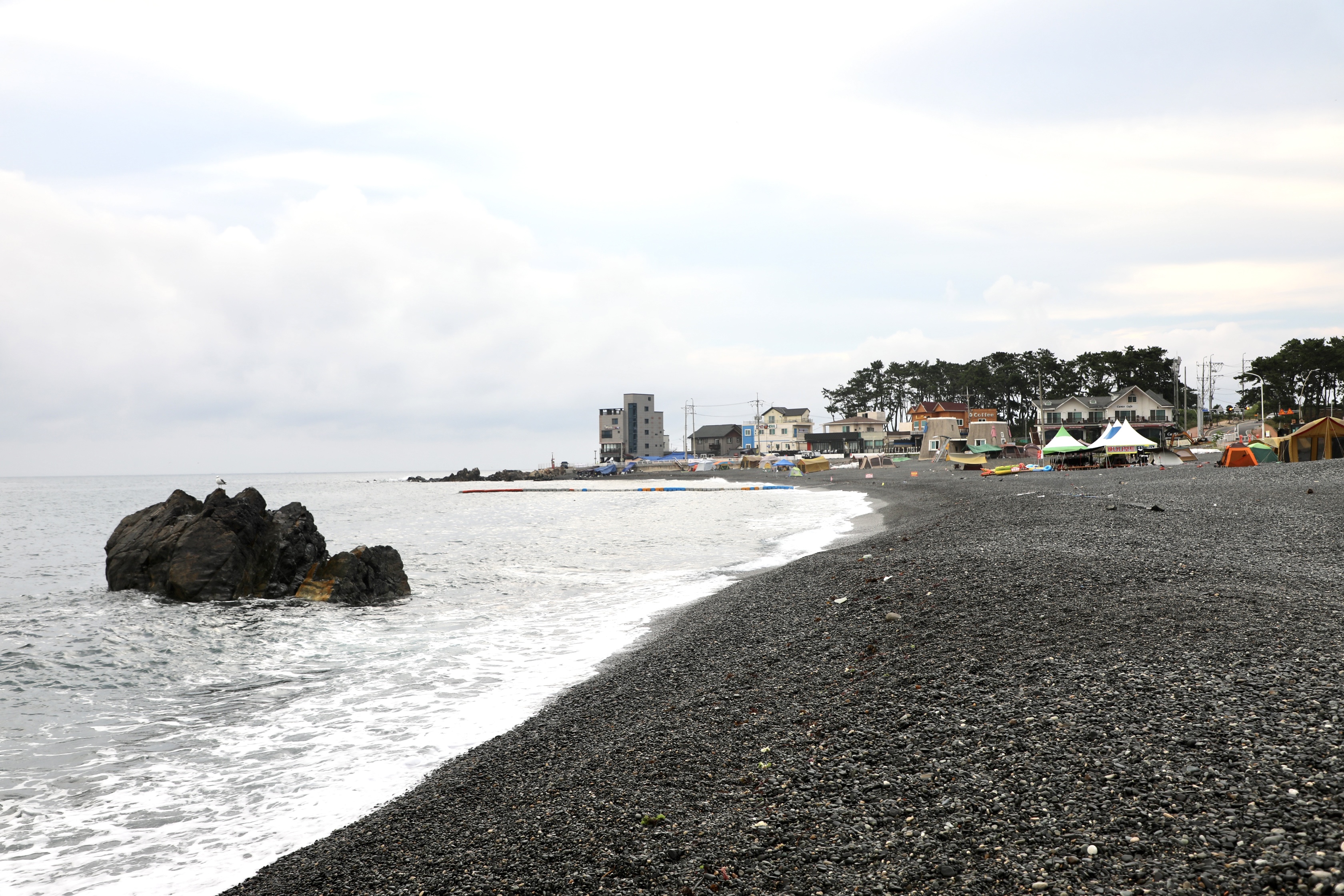 끝없이 보이는 주전 몽돌해수욕장에 한 사람도 안 보인다.