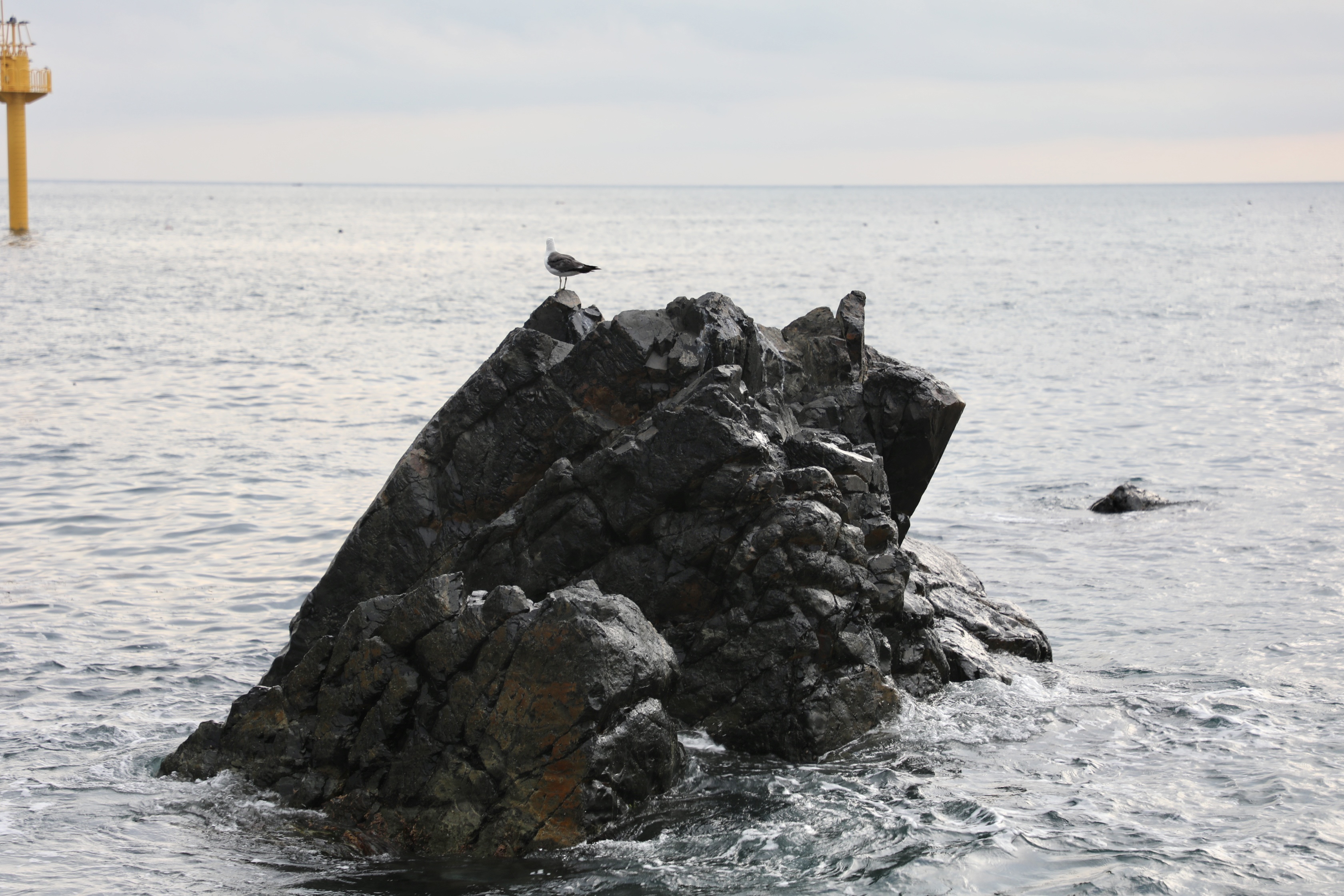 아침부터 바다를 노려보는 갈매기는 먹이 활동을 끝낸 걸까?