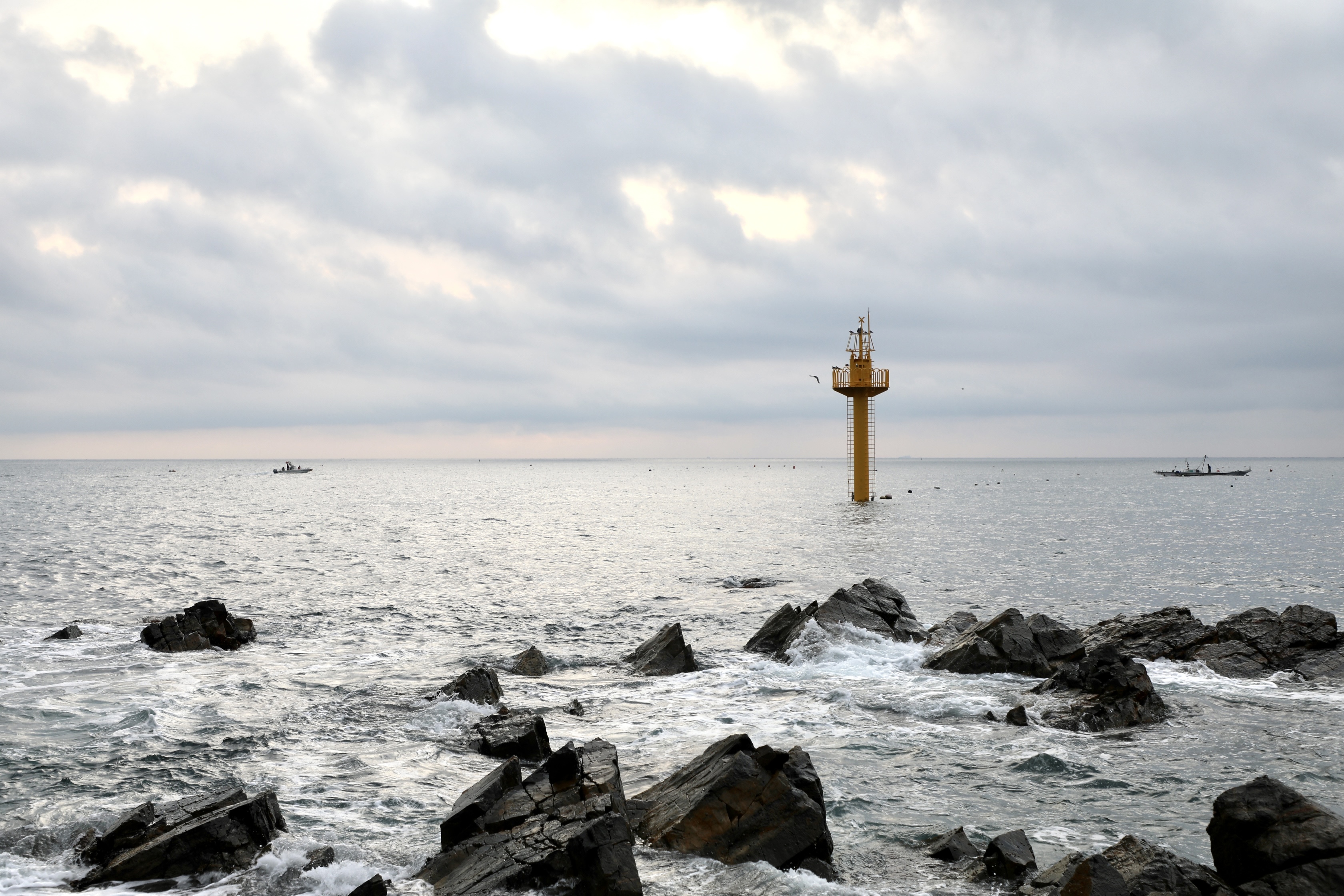 힘차게 날아올라 어선 주위를 맴도는 갈매기의 날개 짓 사이로 햇살이 잘게 부서져 흩어진다.