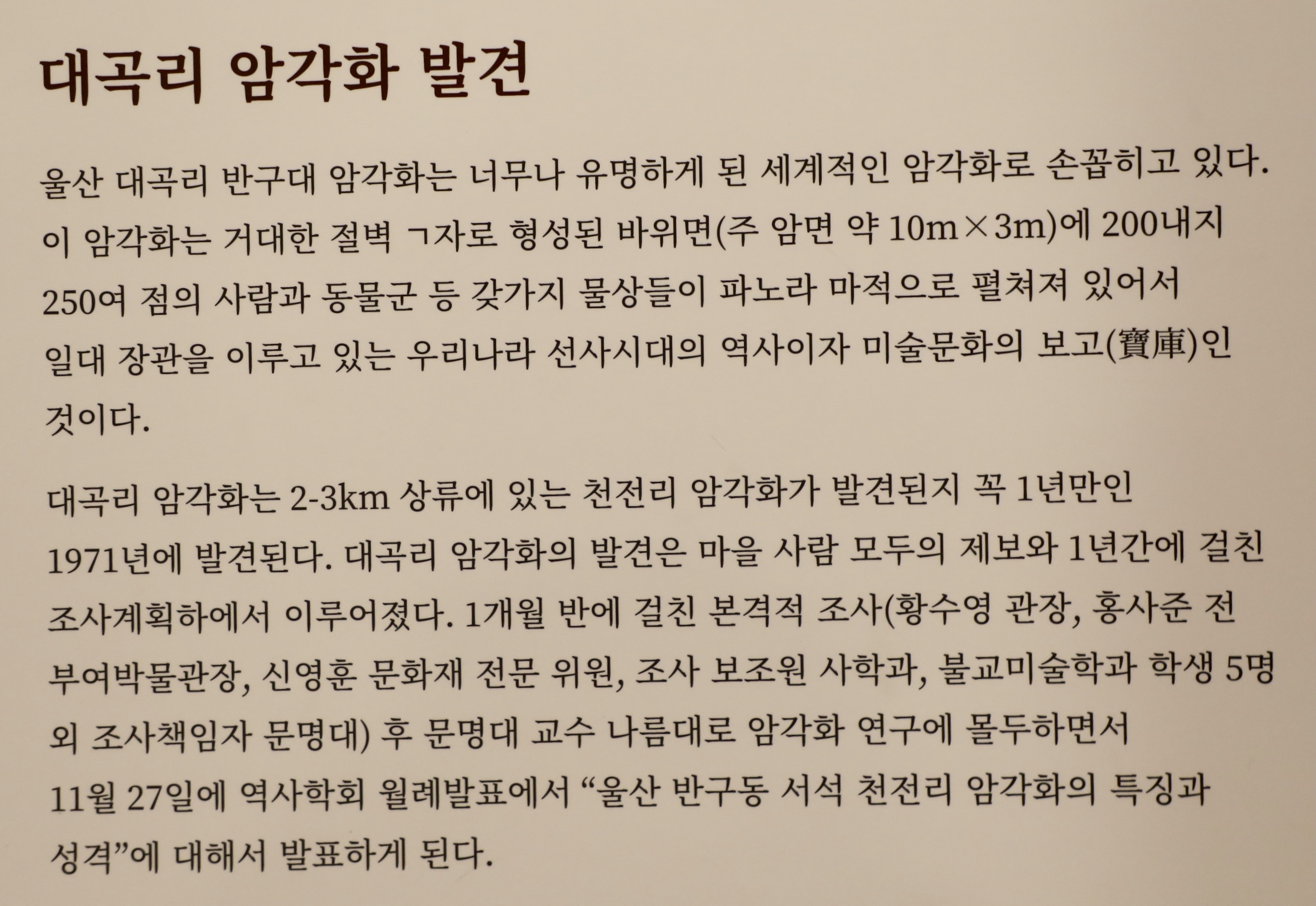 예로부터 대곡천 계곡은 이름난 곳으로 인근 천전리 각석 비문을 통해