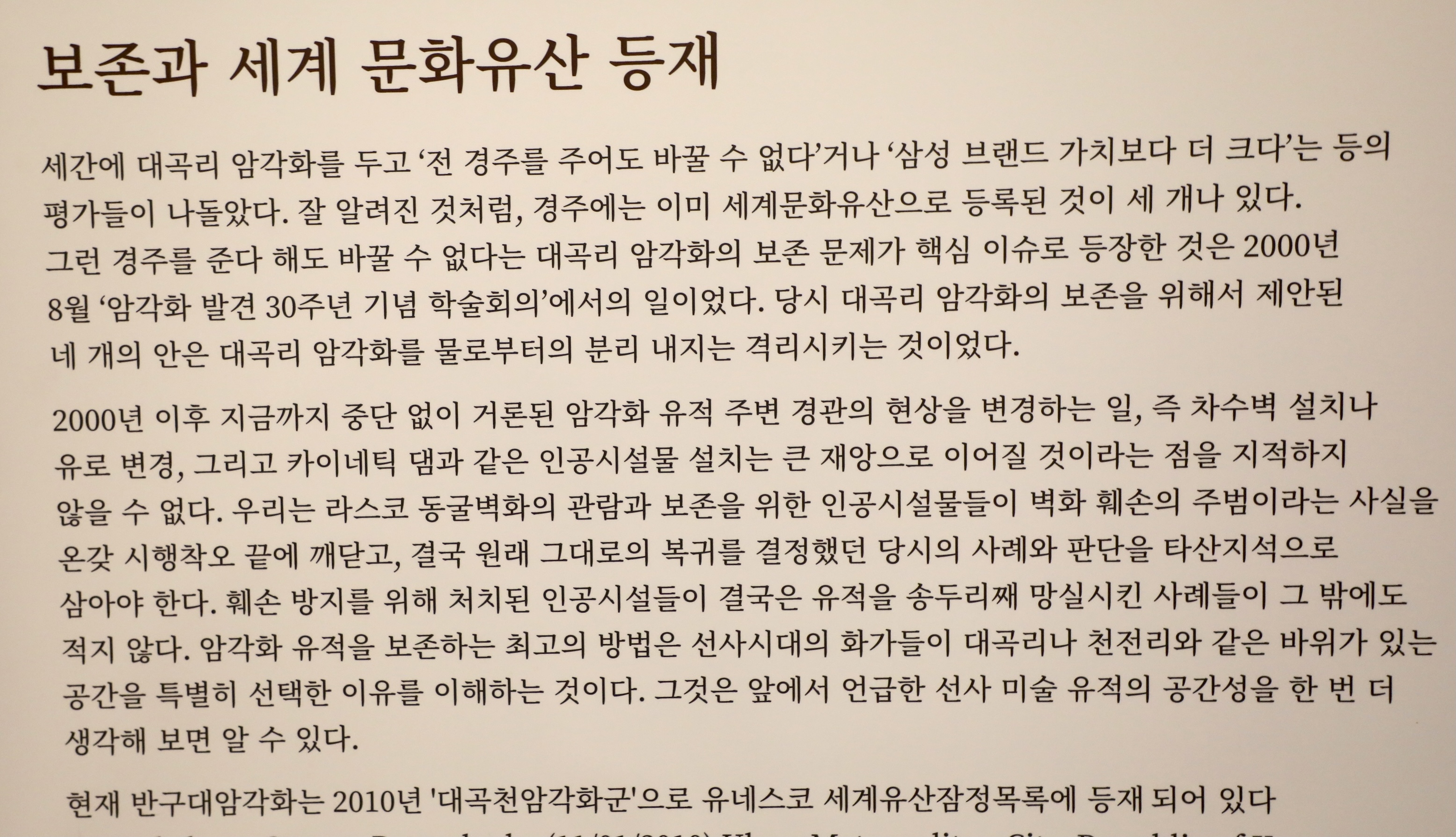 동네 사람들은 분명 알고 있었고 혹시 이 마을에 대대로 전해오다가 잊힌 바위그림이 아니었을까 추측할 뿐이다. (안내문)