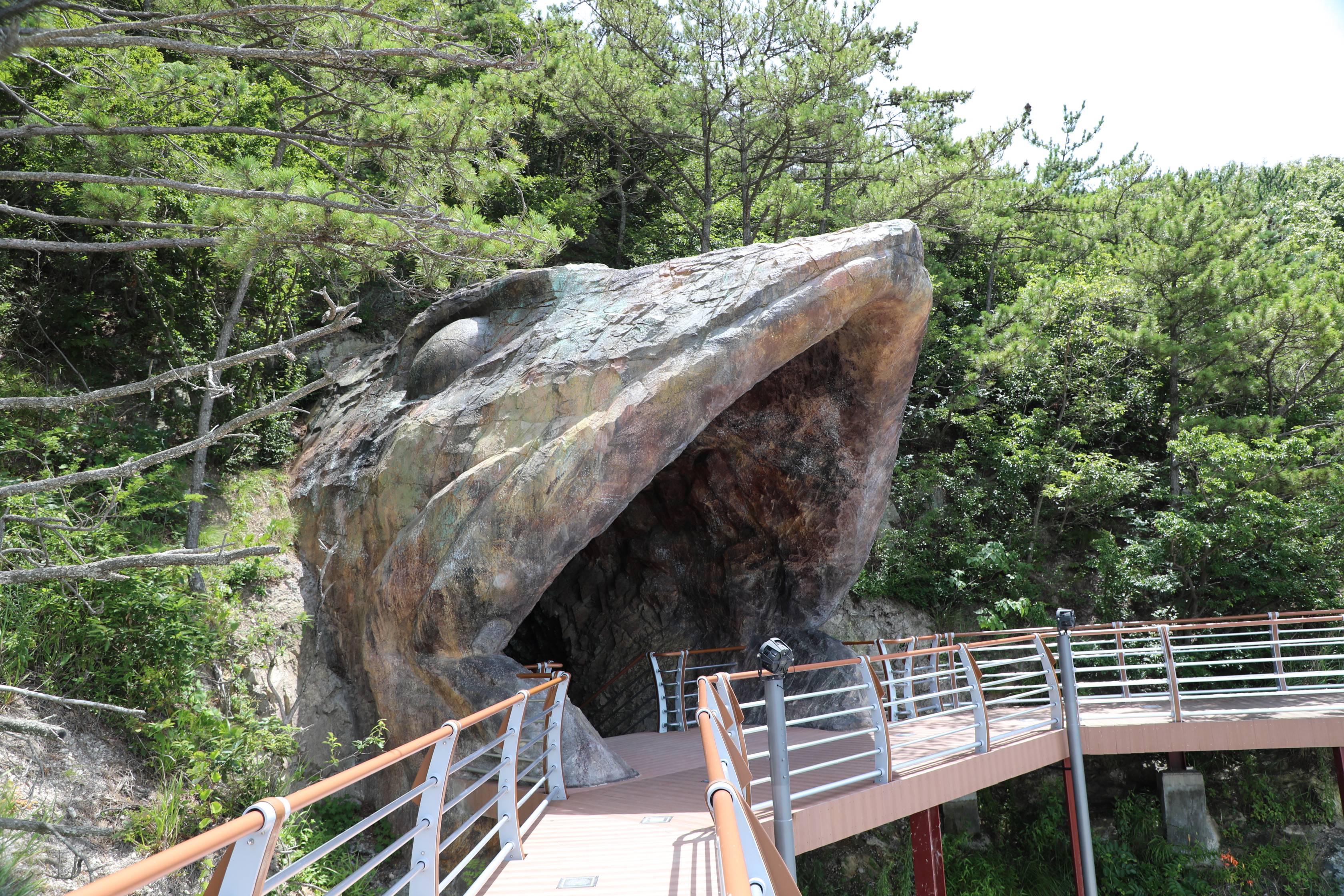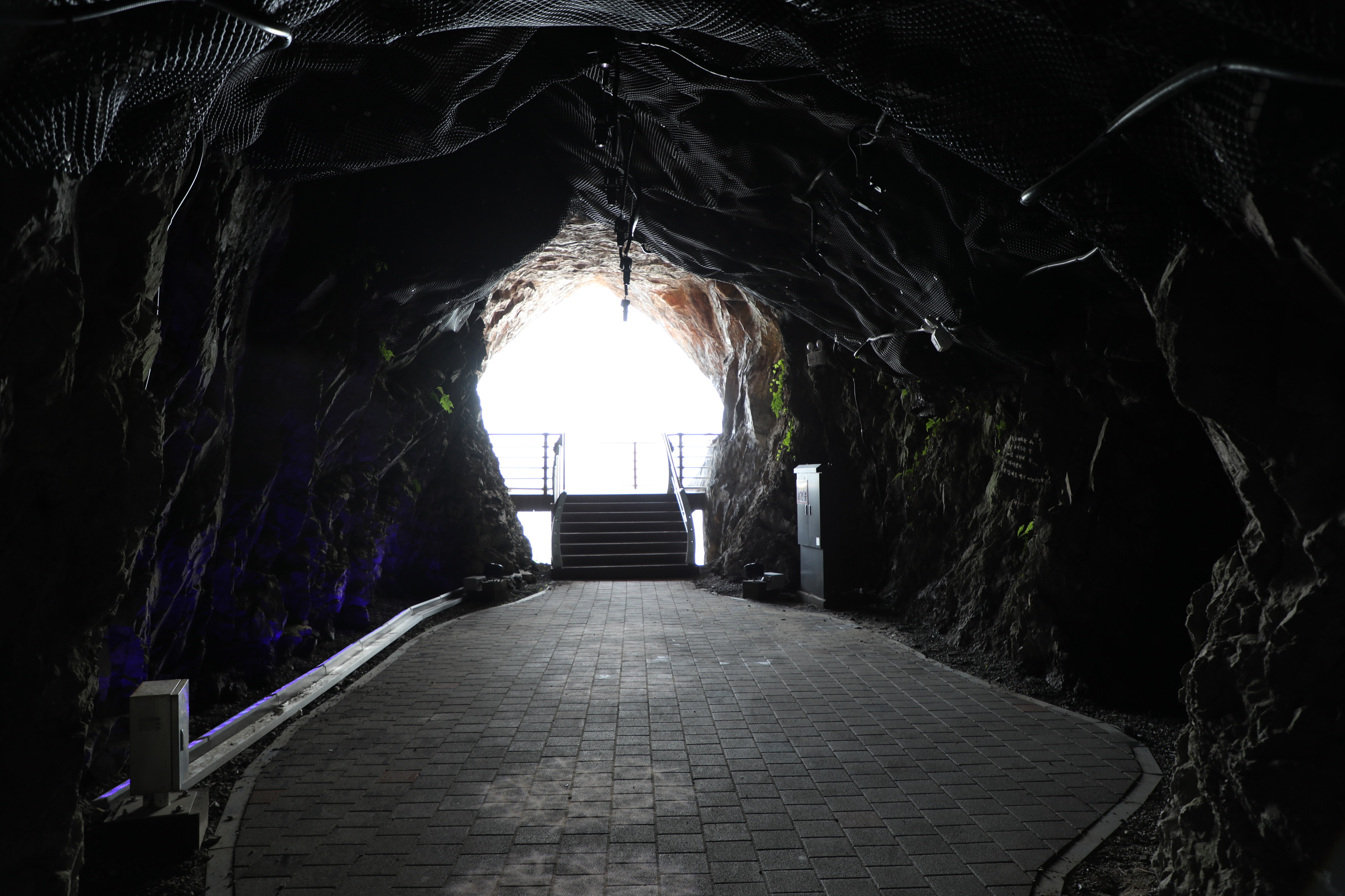 대항 새바지 자갈해변 산비탈에는 일본군이 광산 기술자와 조선인들을 강제 징용하여 만든 인공동굴이 있다.