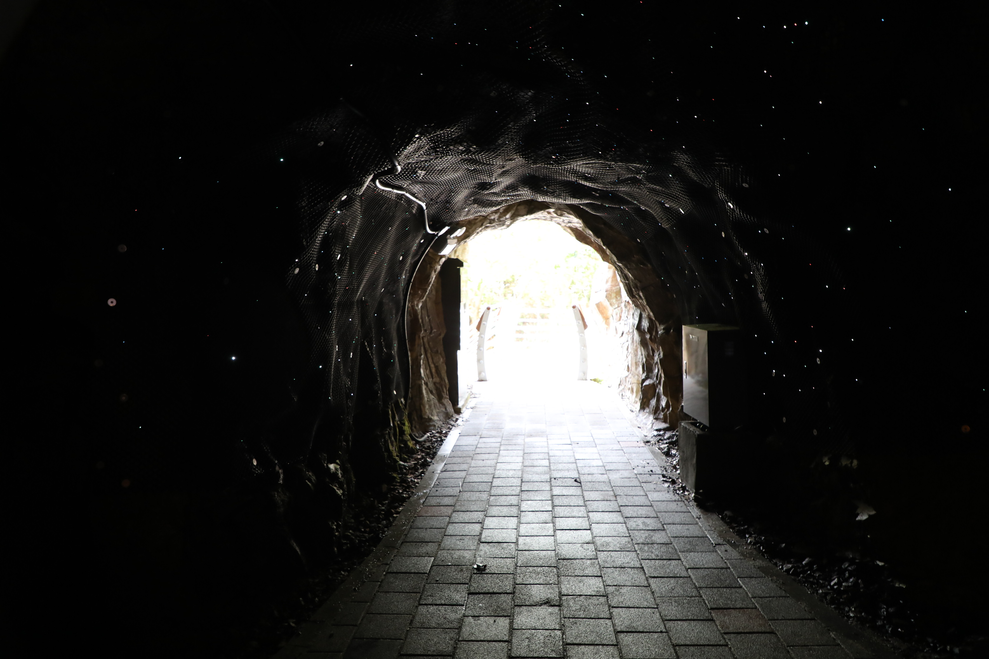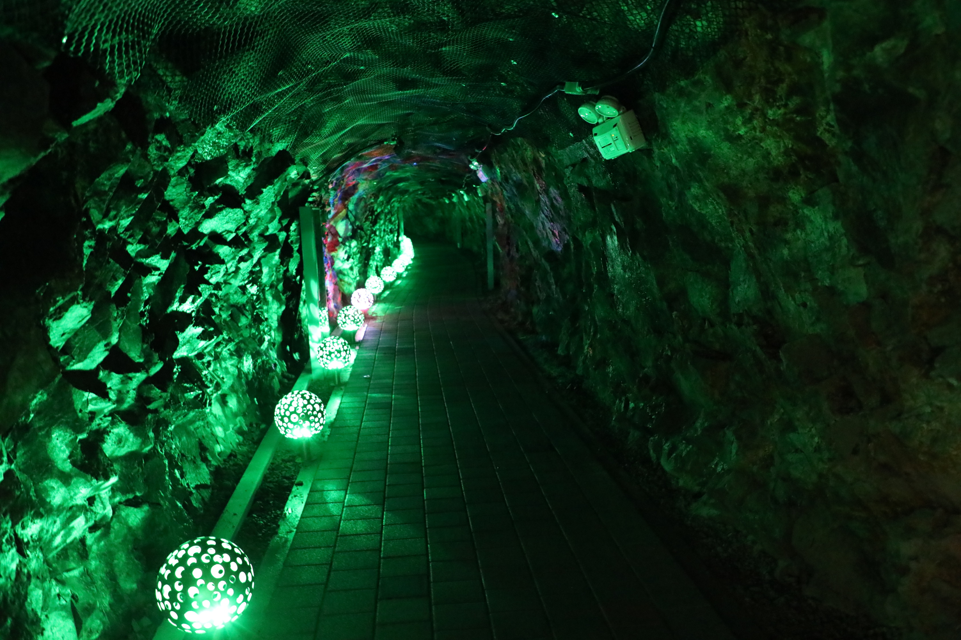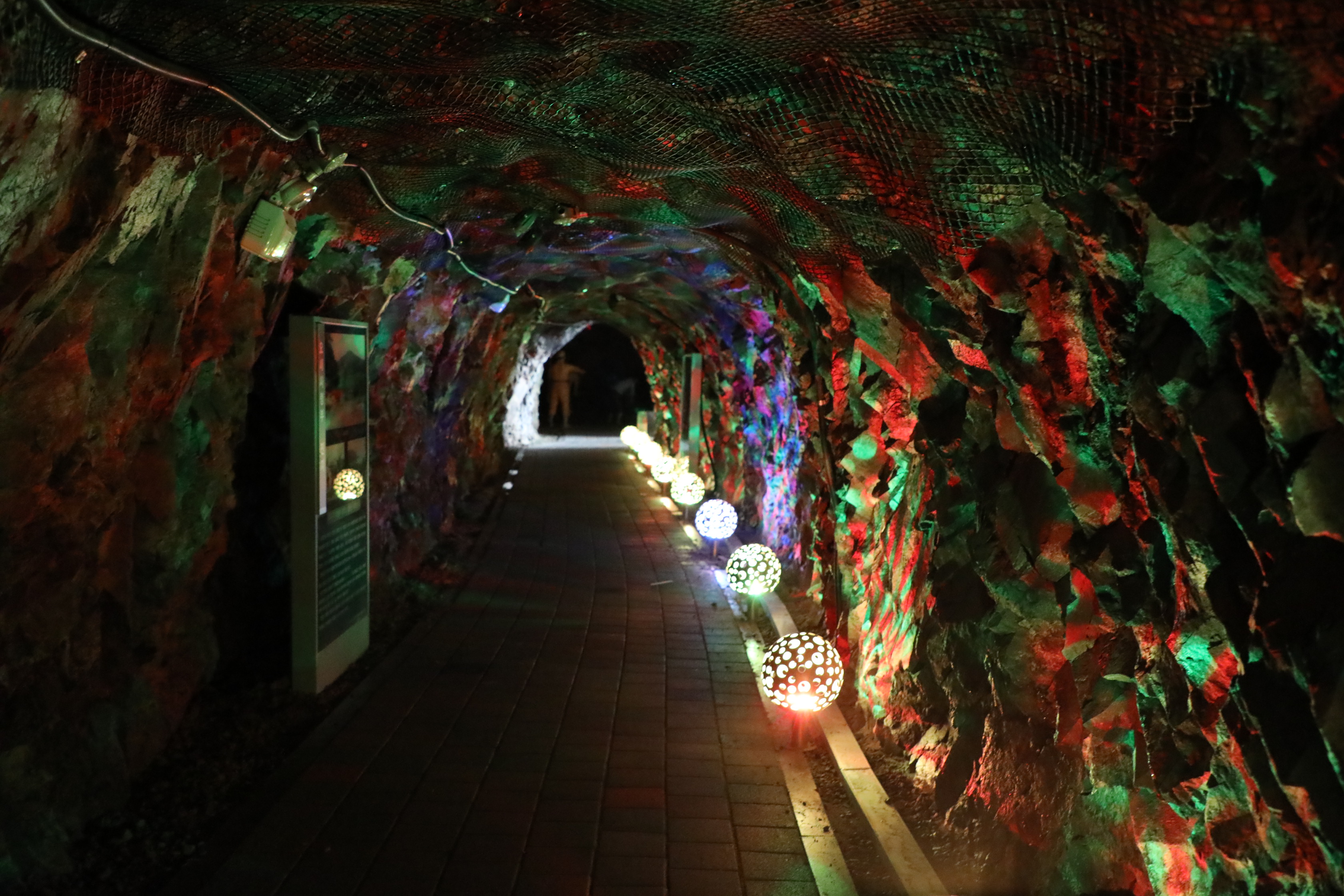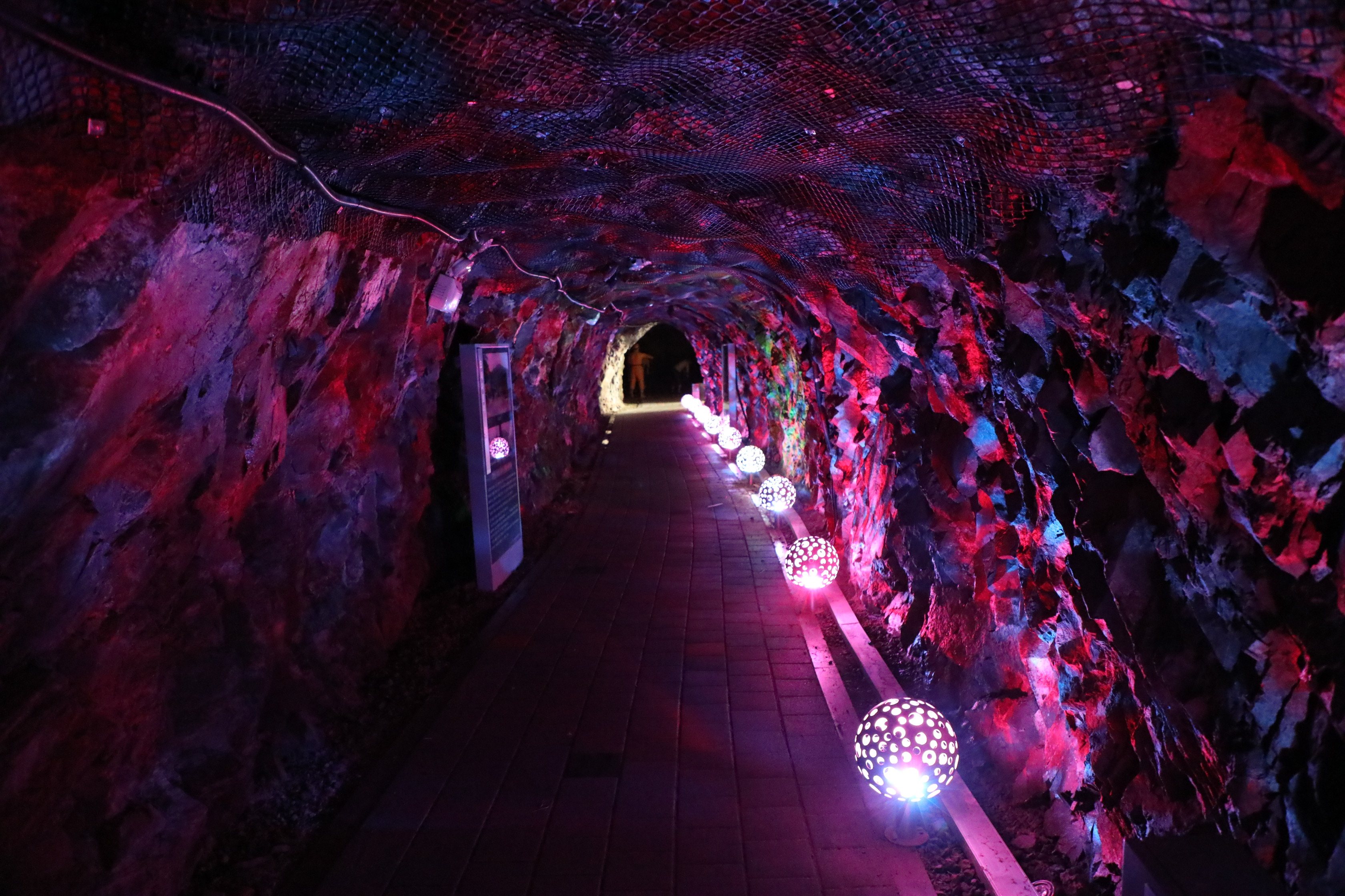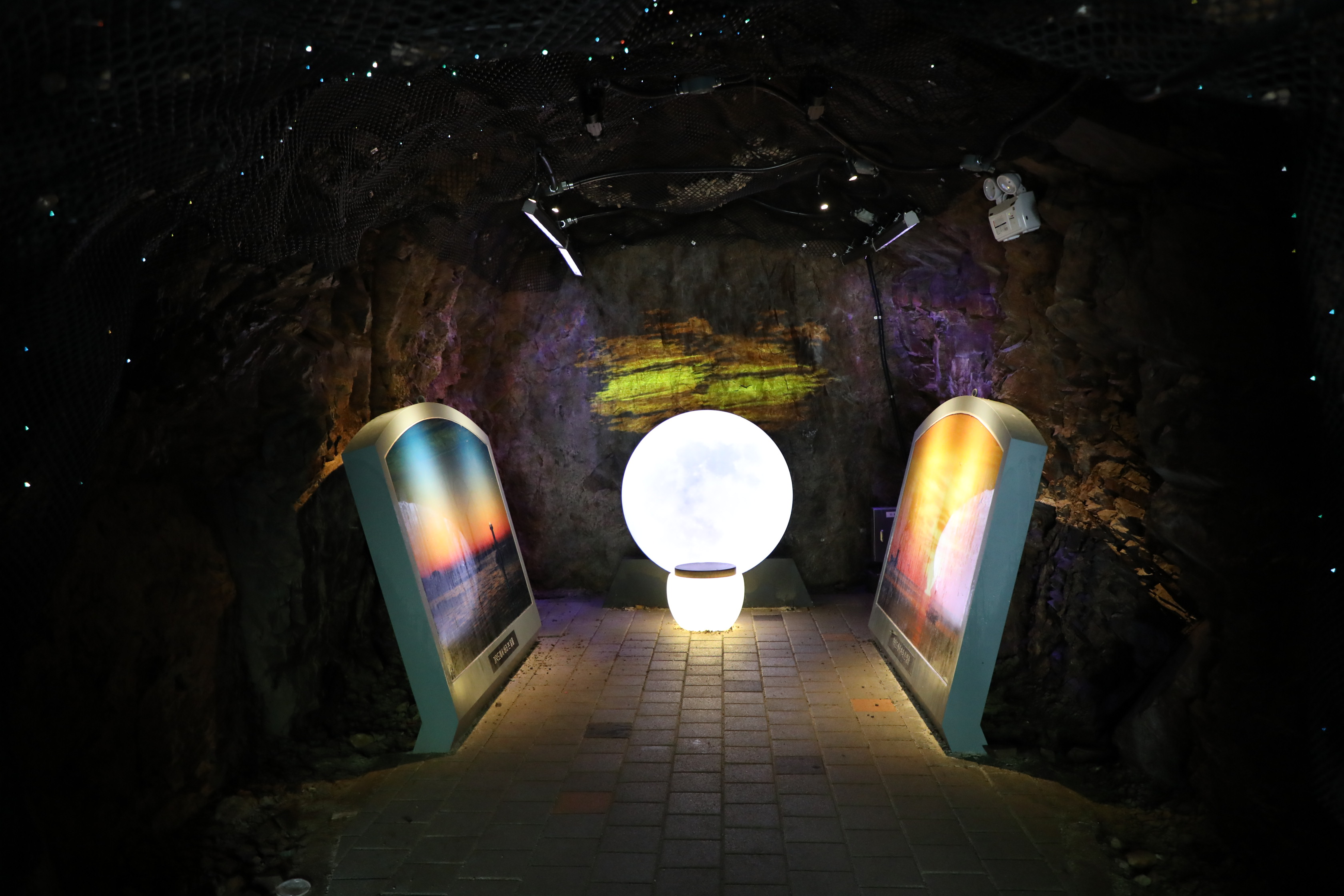 자연동굴은 센서가 있어 사람이 들어오면 자동으로 불이 들어온다.