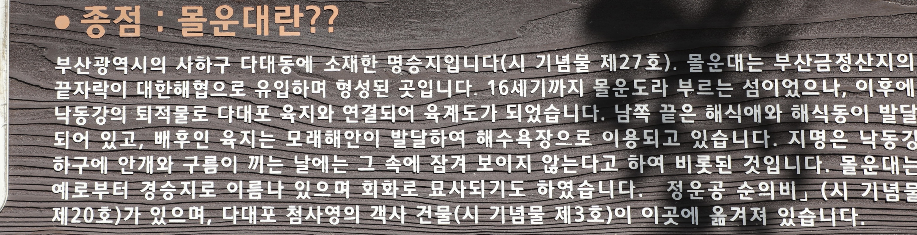 이곳에서 더 가면 바닷가 끝에 몰운대가 있으나 군사시설이 있어 갈 수 없는 땅이다.