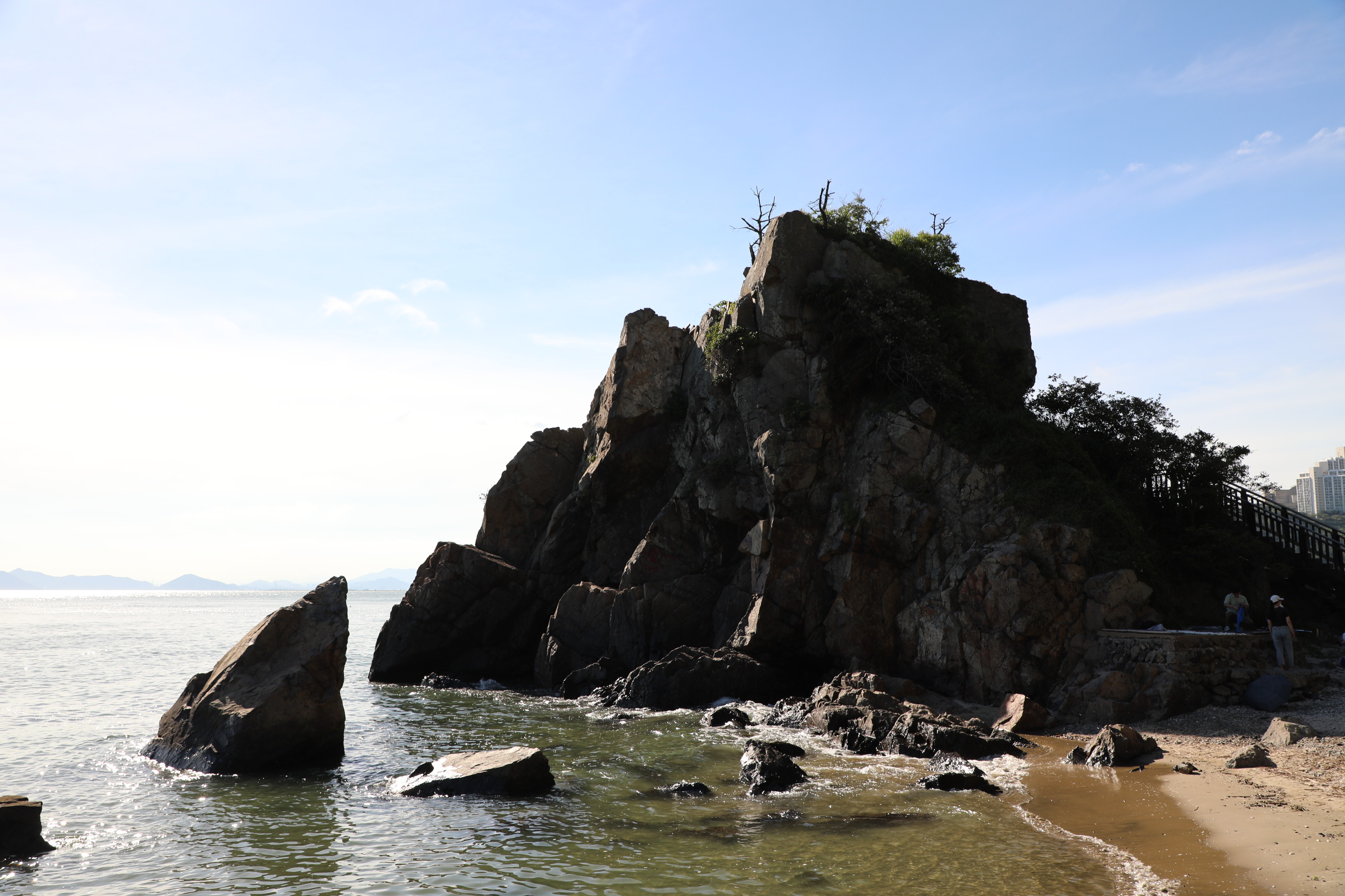 보려던 몰운대를 길이 막혀 볼 수 없고, 꿩 대신 알이라고 해안가 갯바위로 대신한다.