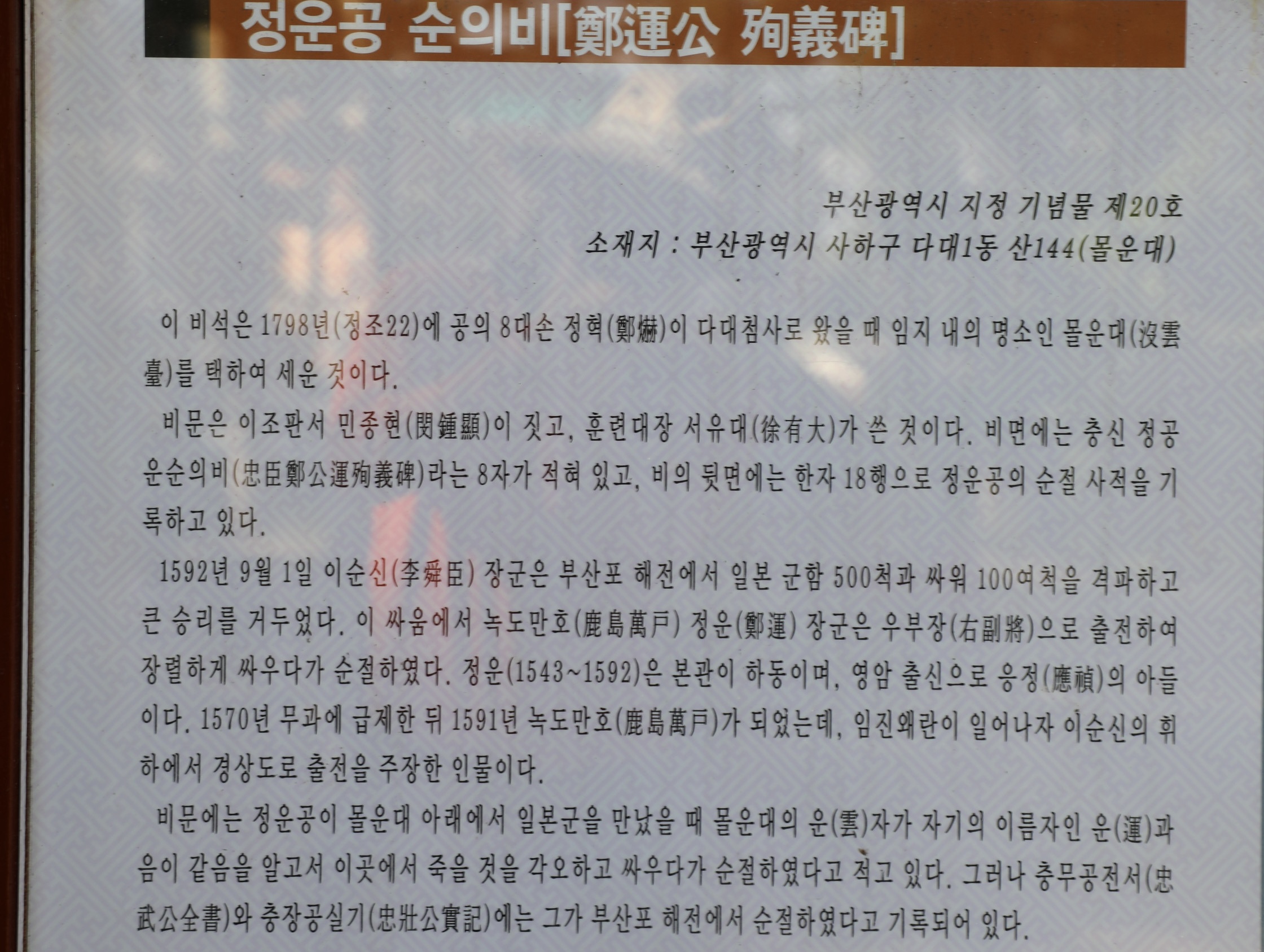 1740년(영조 16) 편찬된 동래부지 고적조에 “몰운대는 다대포 남쪽 1리에 있다”라고 하였다.