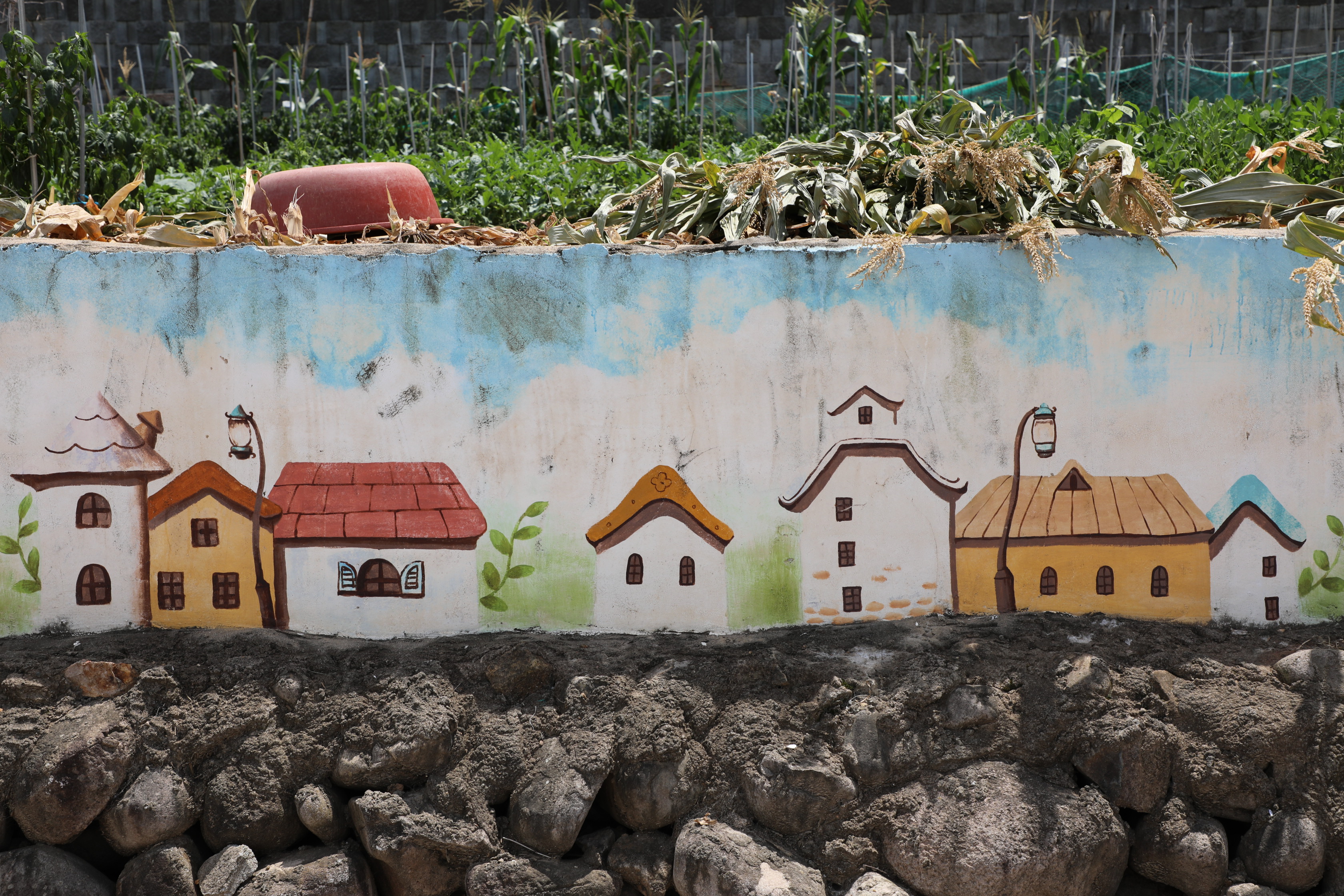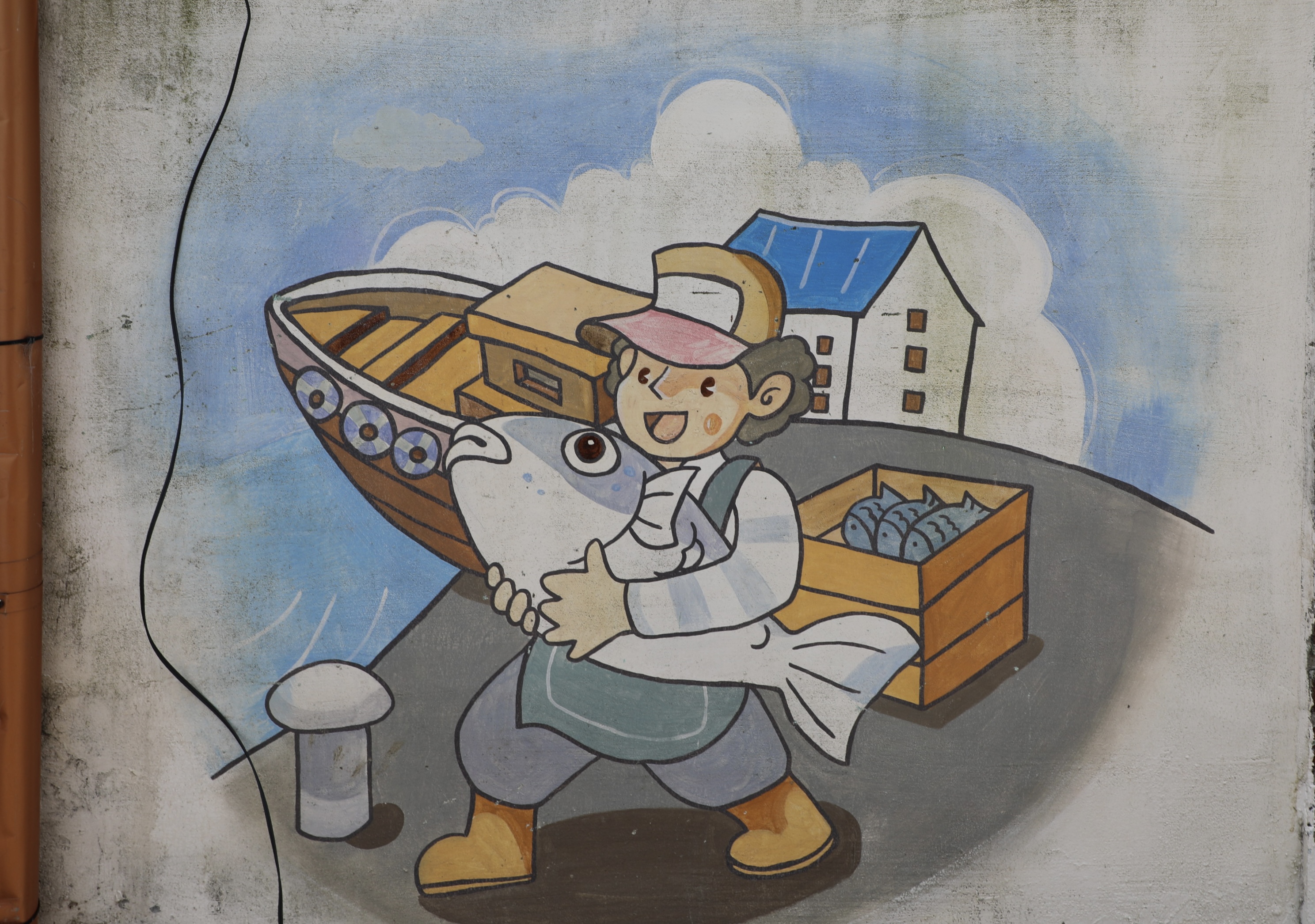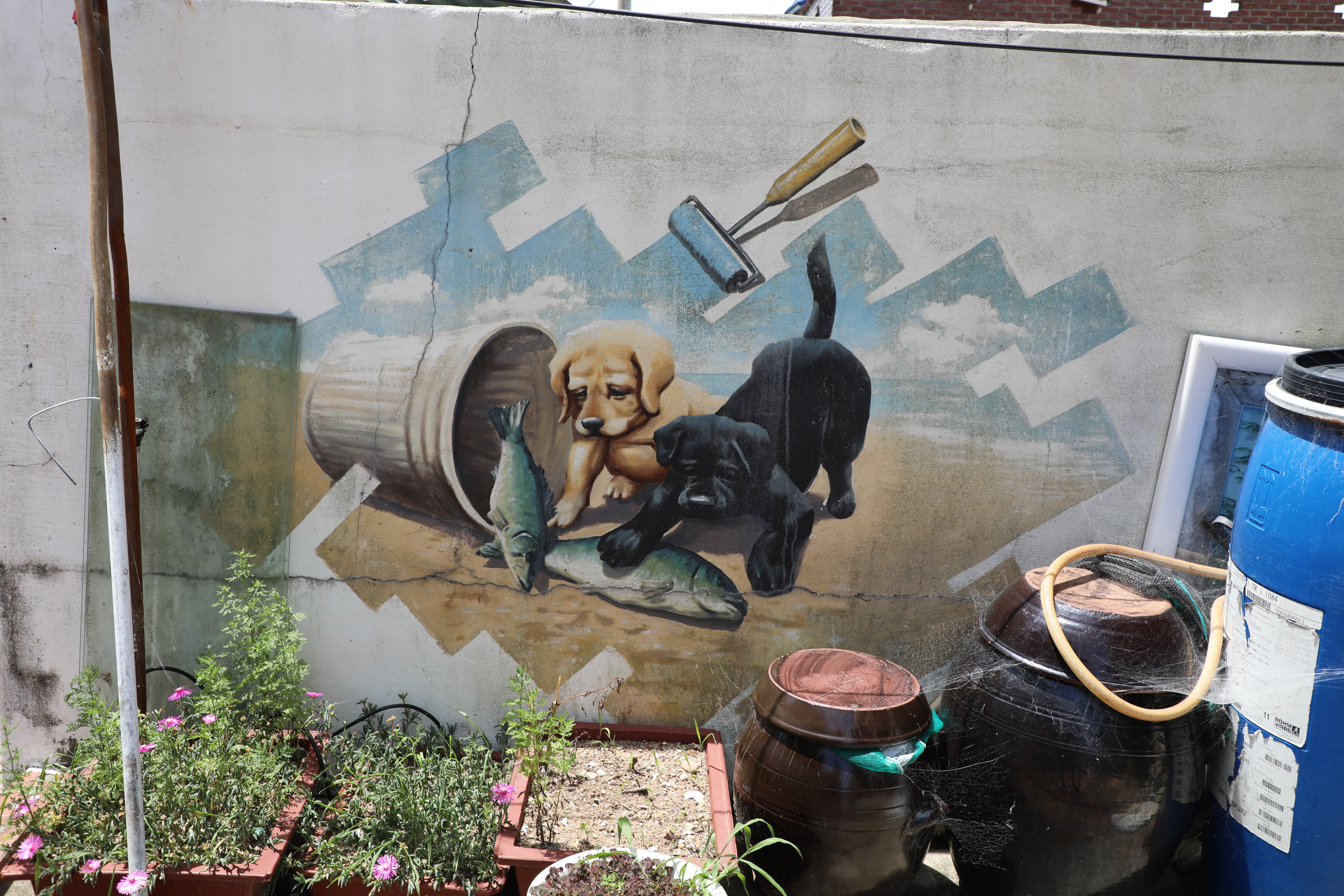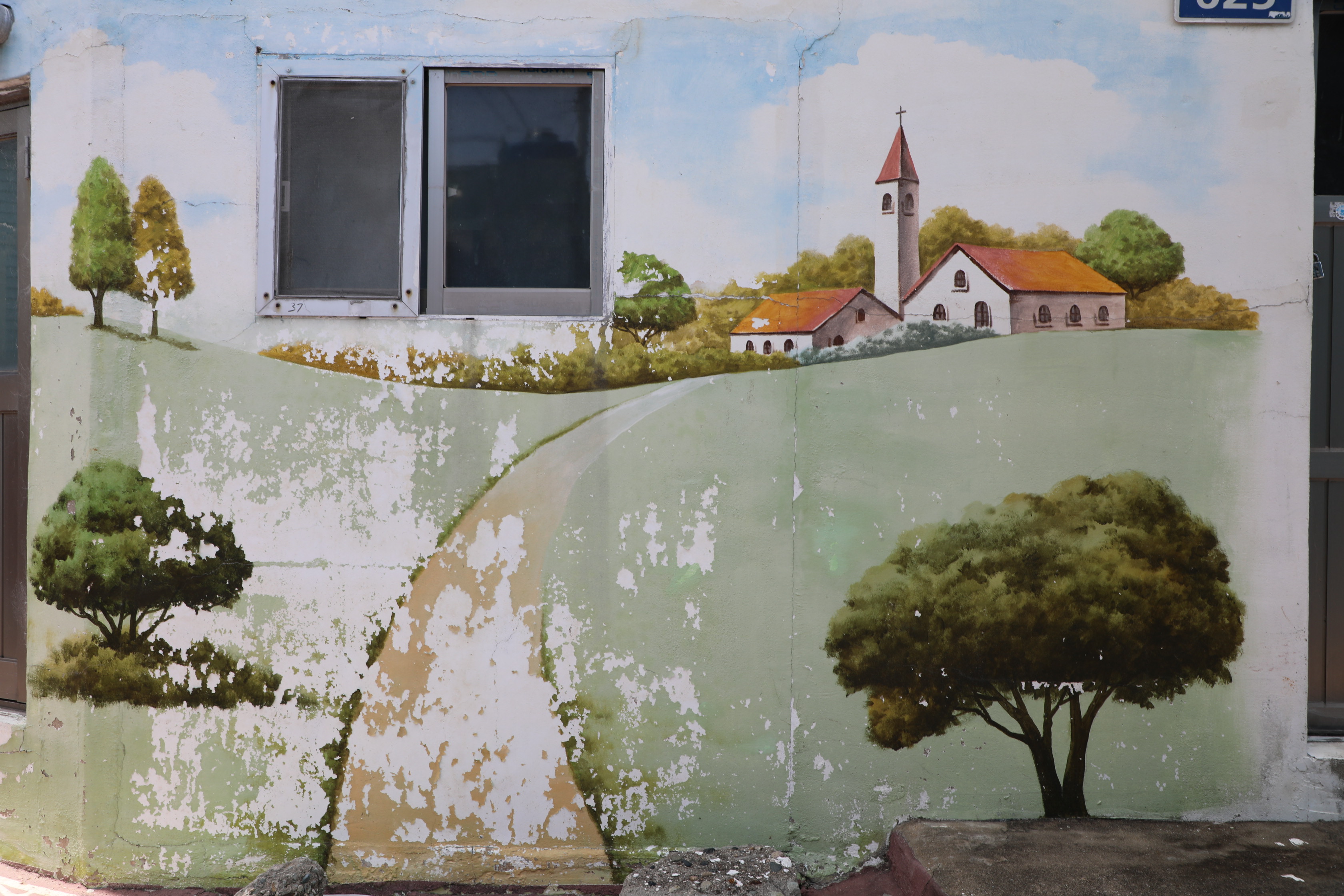 정체된 이곳을 살리기 위해 길목의 담벼락엔 벽화를 그려놓았다.