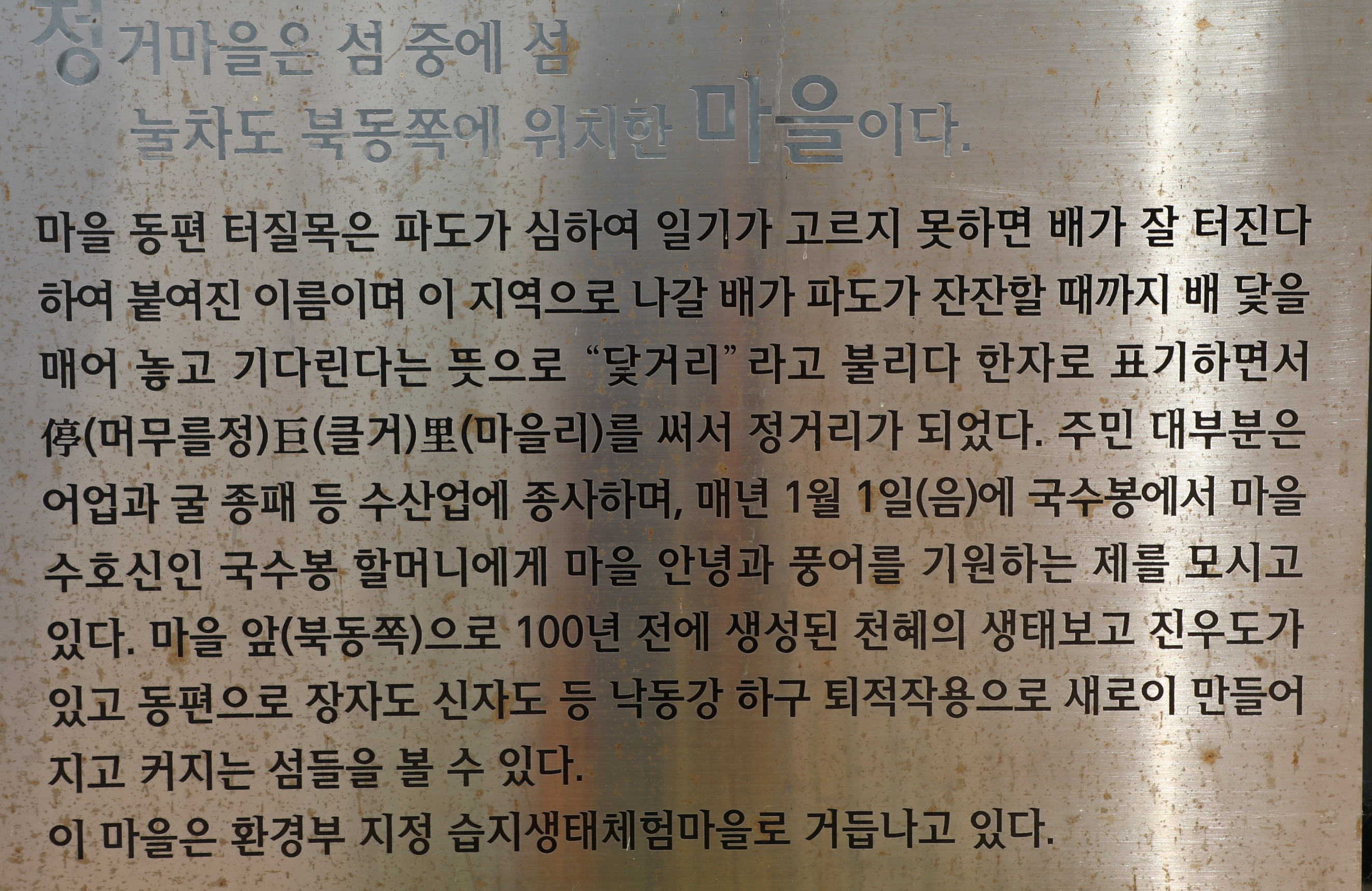 정거마을은 연륙교가 생기기 전까지 작은 섬에 지나지 않았다.
