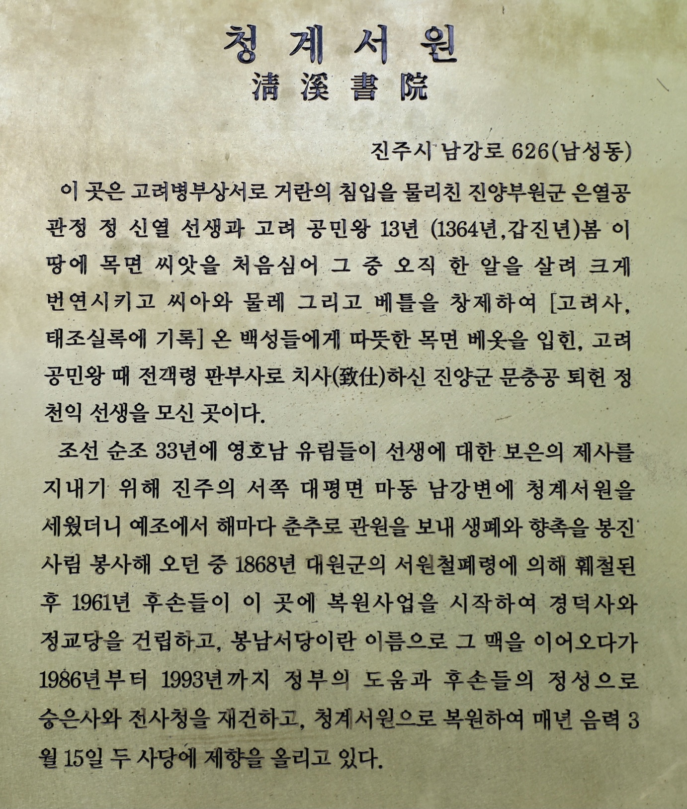 경덕사(고려 금자광록대부 병부상서 진양부원군 관정 정신열 선생 위패를 봉안)