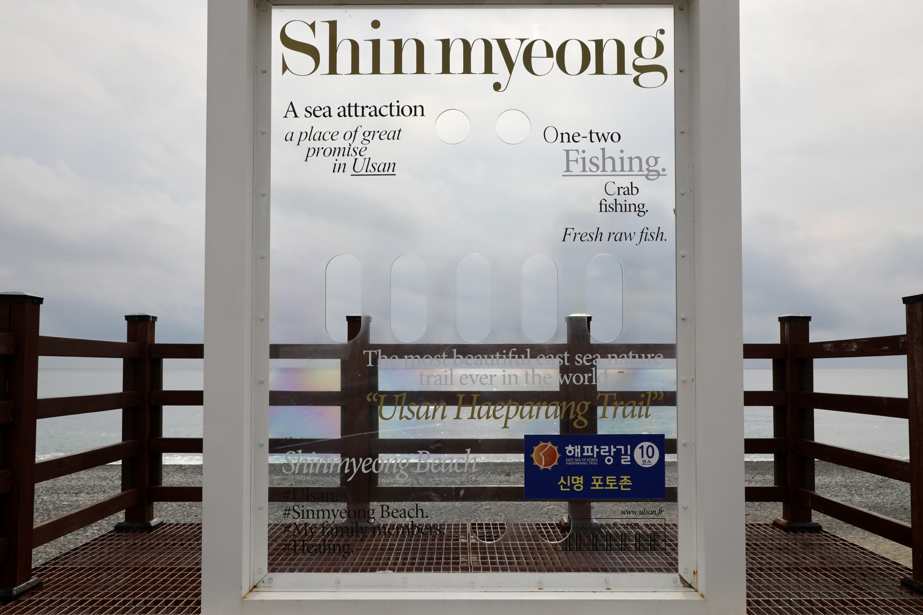 이 전망대가 신명 해수욕장이란 걸 알려준다.