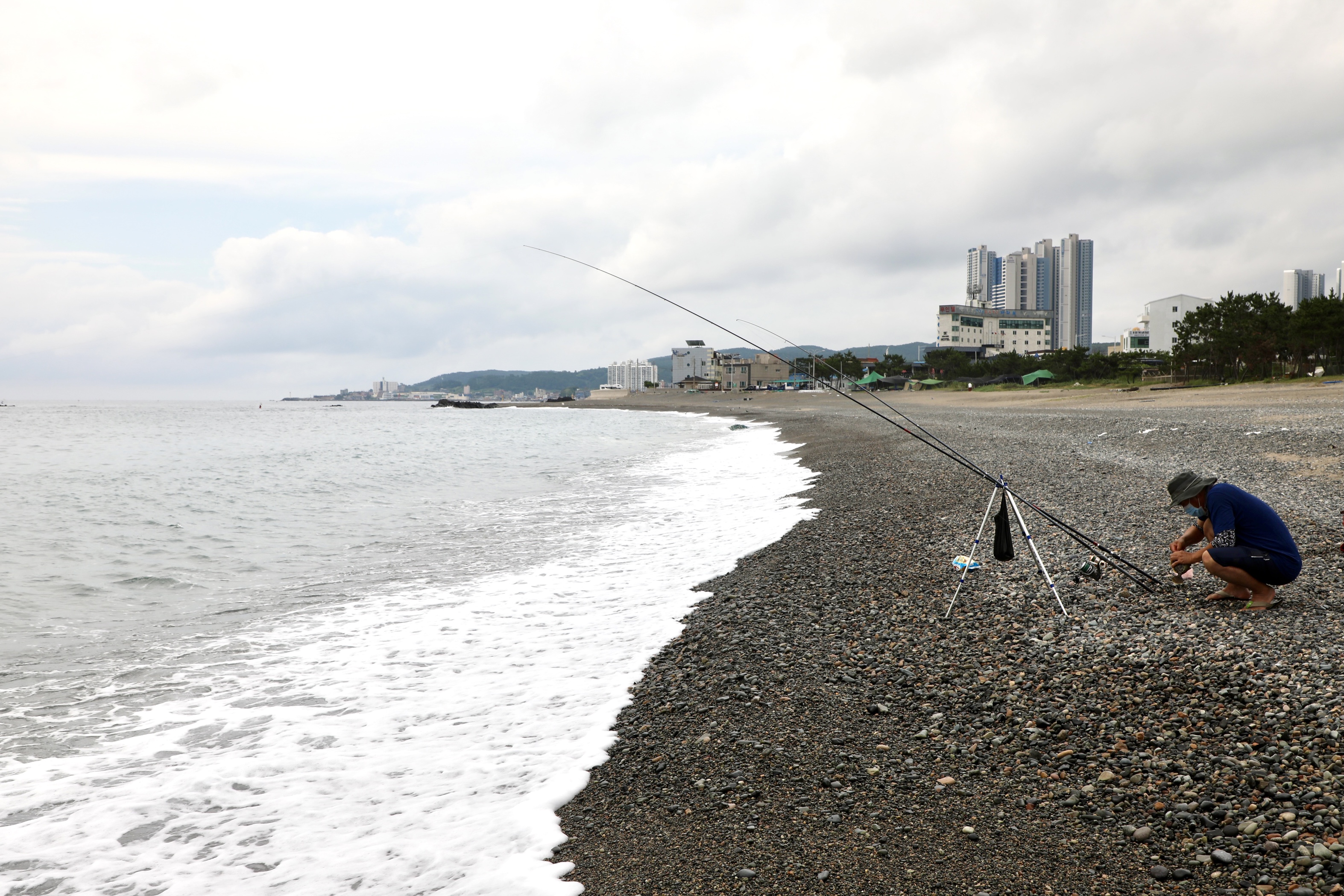이른 시간이라 신명 해수욕장엔 해수욕을 하는 사람은 안 보이고 낚시꾼이 먼저 해변을 선점했다.