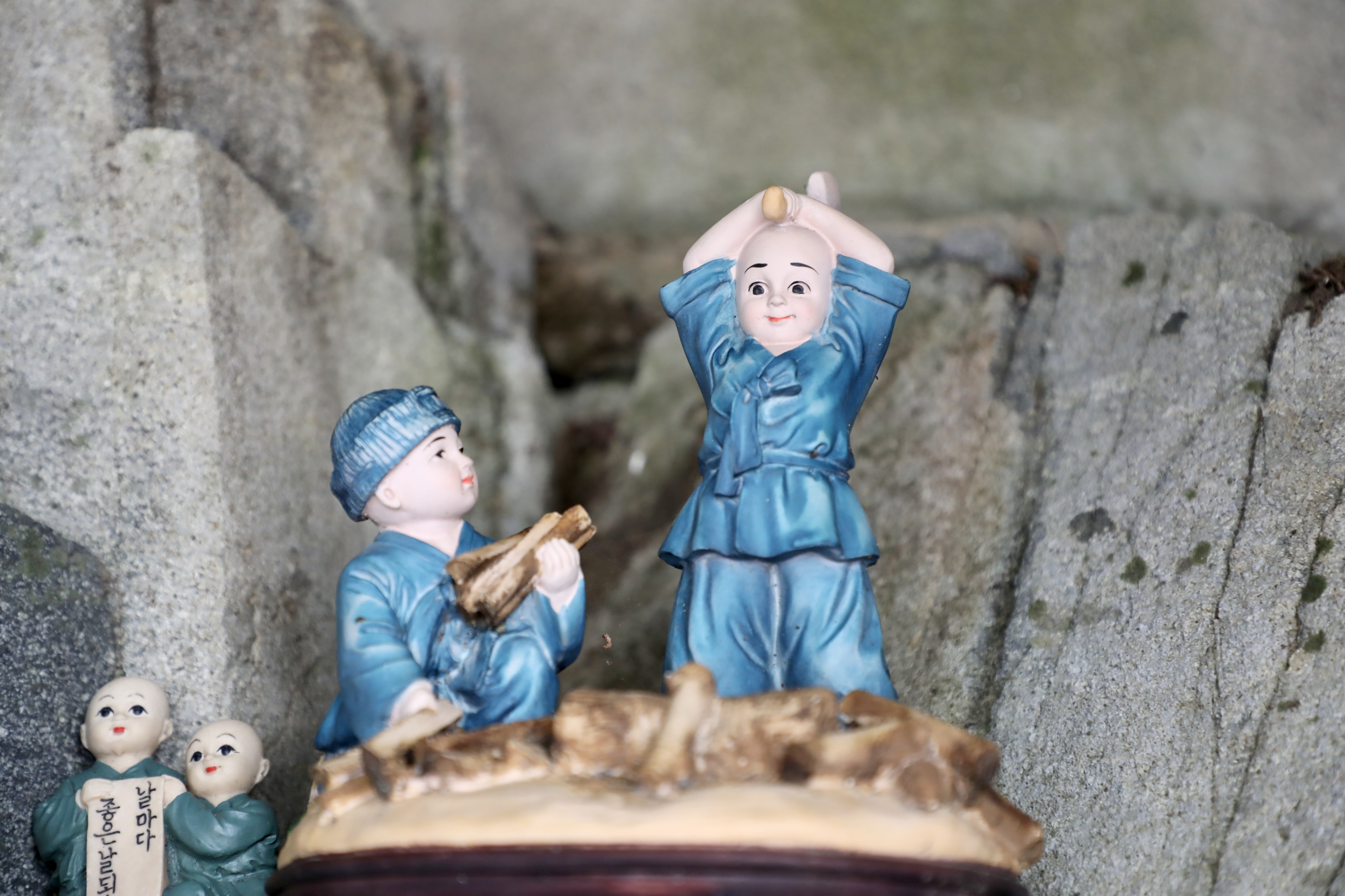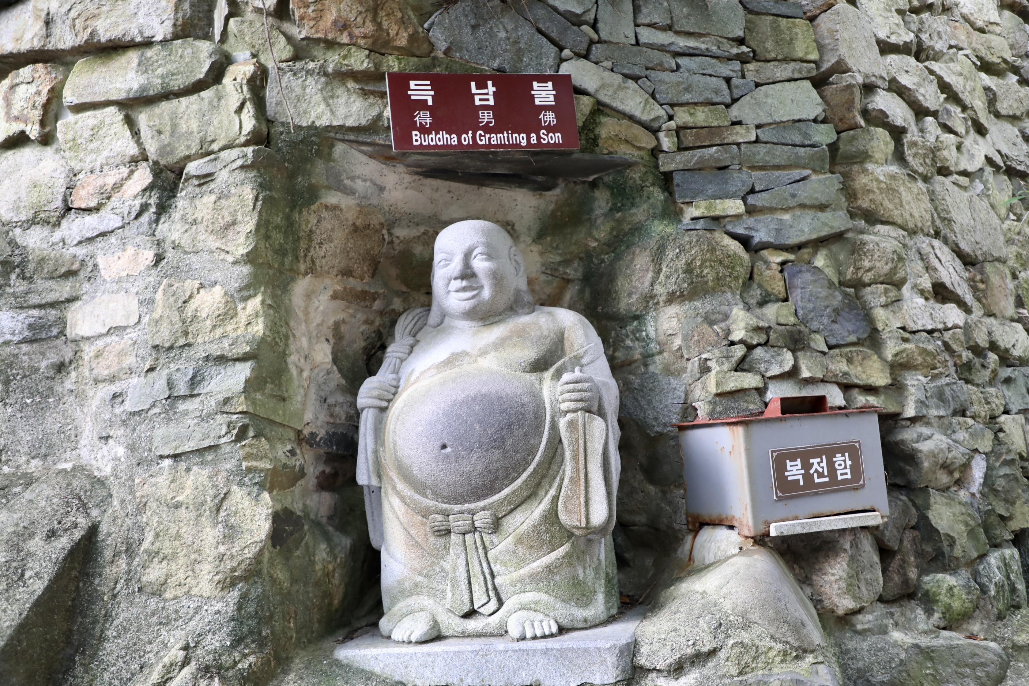 아니면 배불뚝이 포대화상의 배가 복스럽게 생겨 만져본 걸까?